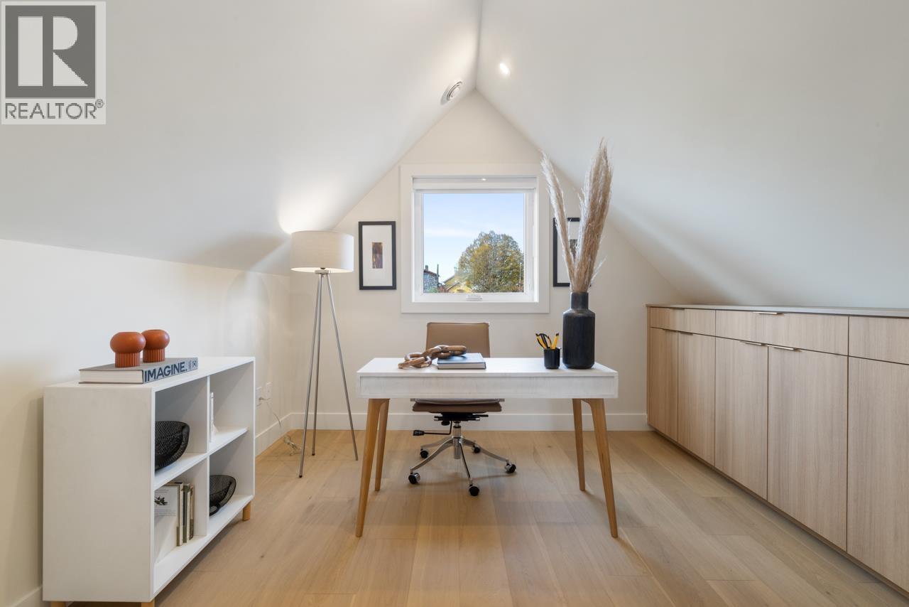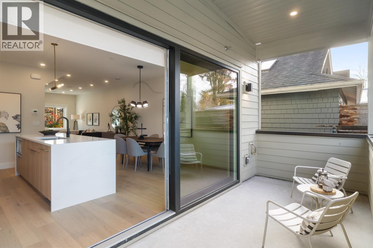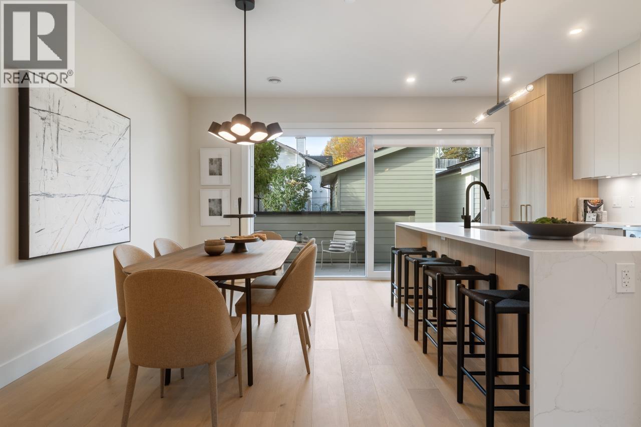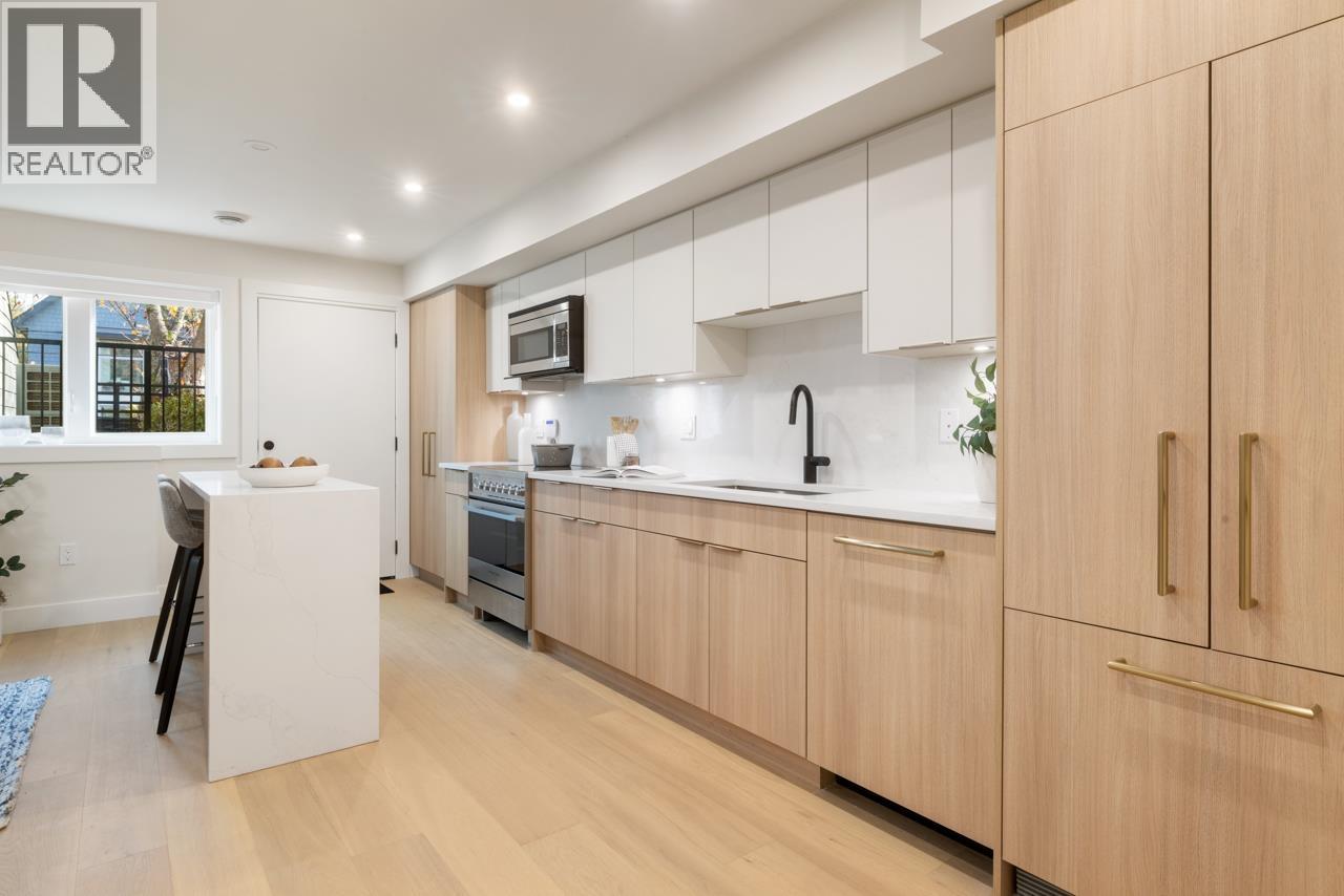 Welcome to Templeton Green! This modern home was designed by Architrix, built by renowned Fina Homes with curated interiors by Maria De Cotiis. The bright & spacious main floor has generous living & dining spaces, powder rm + a gourmet kitchen with integrated appliances, induction range, large island & massive sliders to the covered deck. Up has 2 bedrooms, 2 baths incl the primary suite with WIC & stylish ensuite. Up top has 2 more bedrooms + flex. The 2 bed, 1 bath garden unit is perfect for extended family or rental income & the separate title gives future resale flexibility. Net Zero means enhanced insulation, high performance windows, solar panels, zero-emission heating, HRV & more. Thoughtful living in The Drive, one of East Van's most community rich neighborhoods. A truly rare offering! (id:44393)