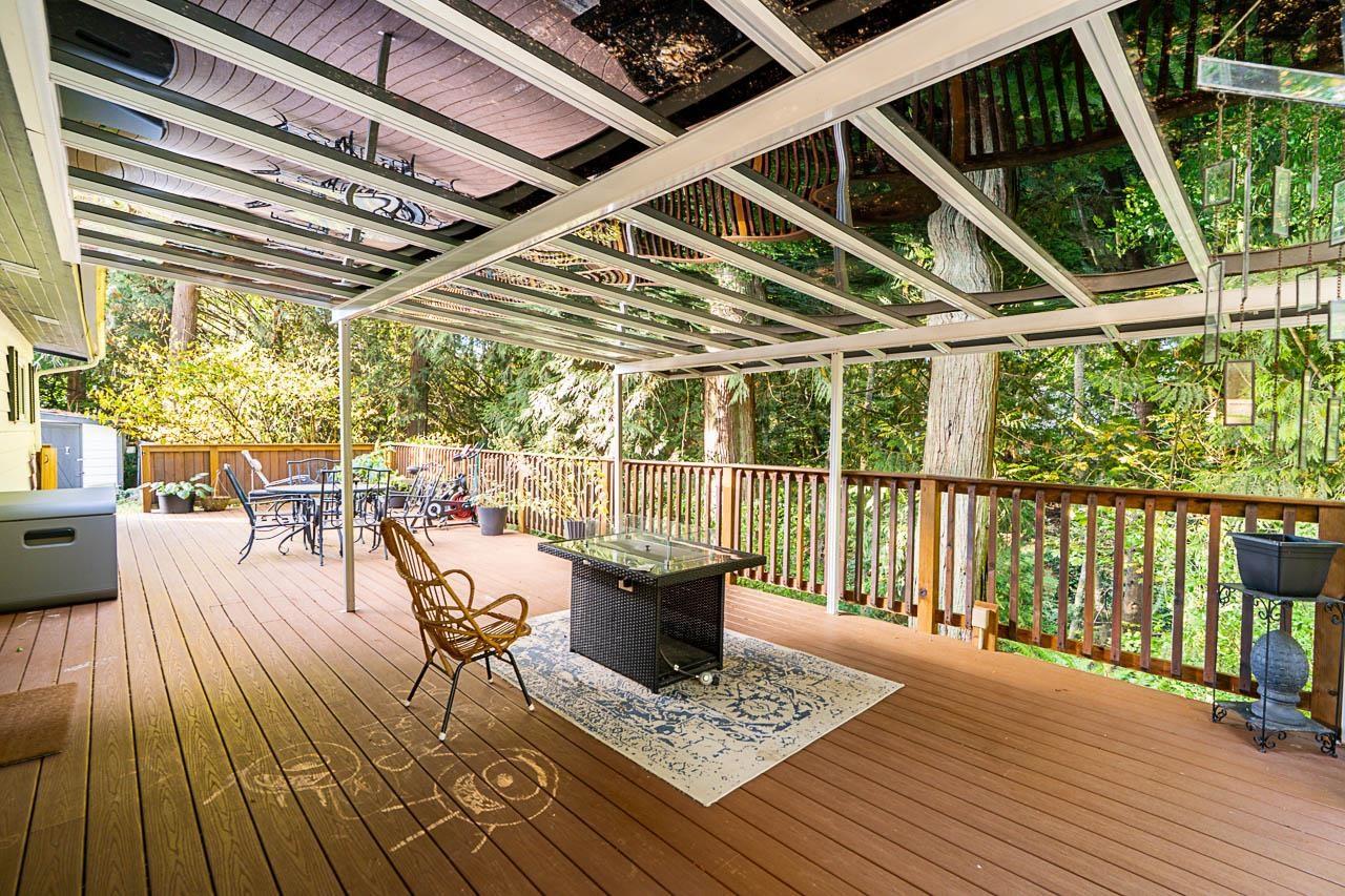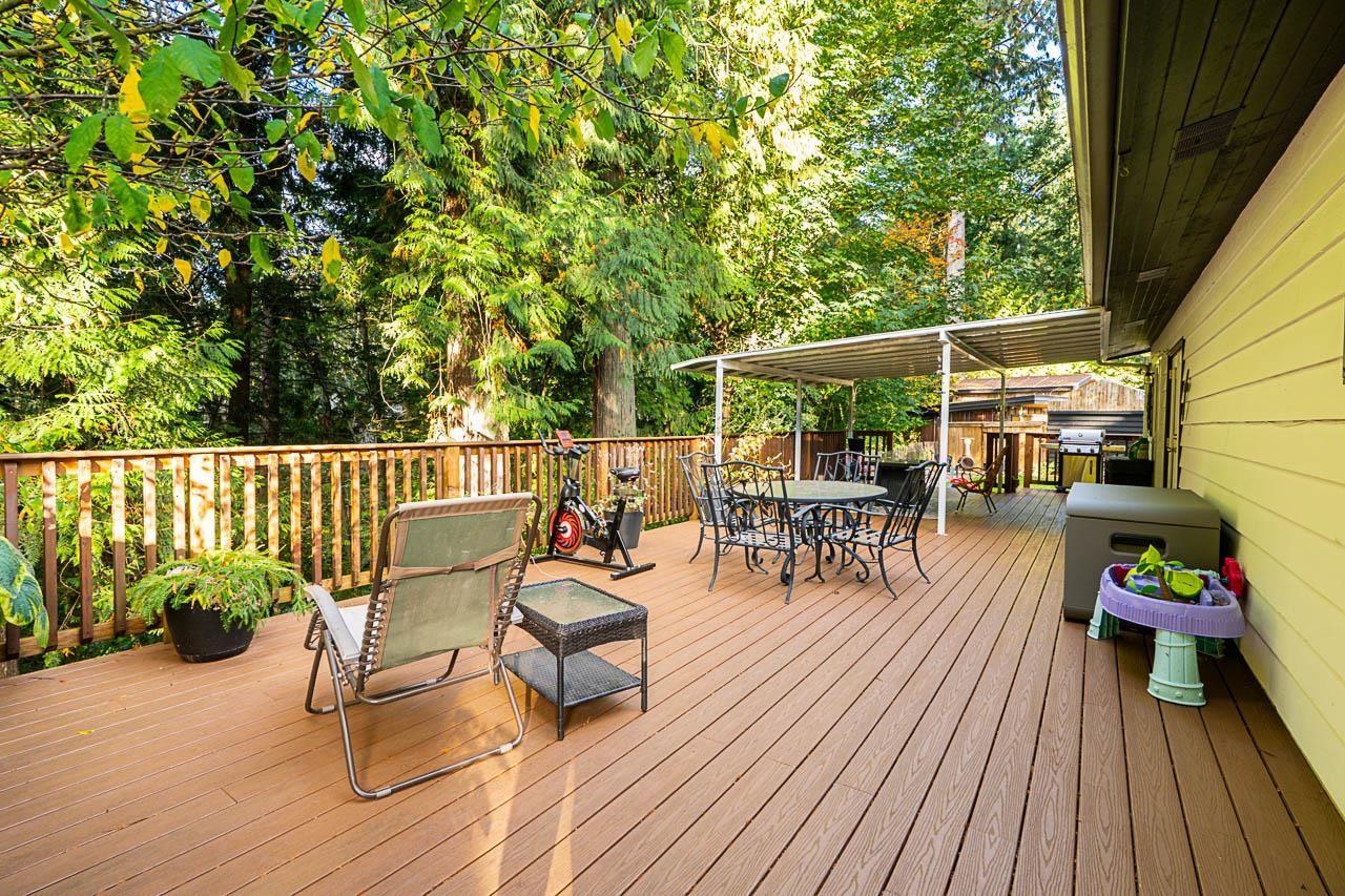 Looking for ultimate privacy in Brookswood for under a million? This charming 2-bed, 2-bath home is nestled among mature evergreens and backs onto a greenbelt with a peaceful creek. Features include hardwood floors, an updated kitchen, skylights, new hot water tank, new furnace, metal roof, fresh exterior paint, a redone crawl space, detached carport, and lots of parking. Enjoy a large west-facing deck-newly rebuilt along with the retaining wall-perfect for relaxing with full afternoon sun. A rare, private retreat close to all amenities. (id:44393)