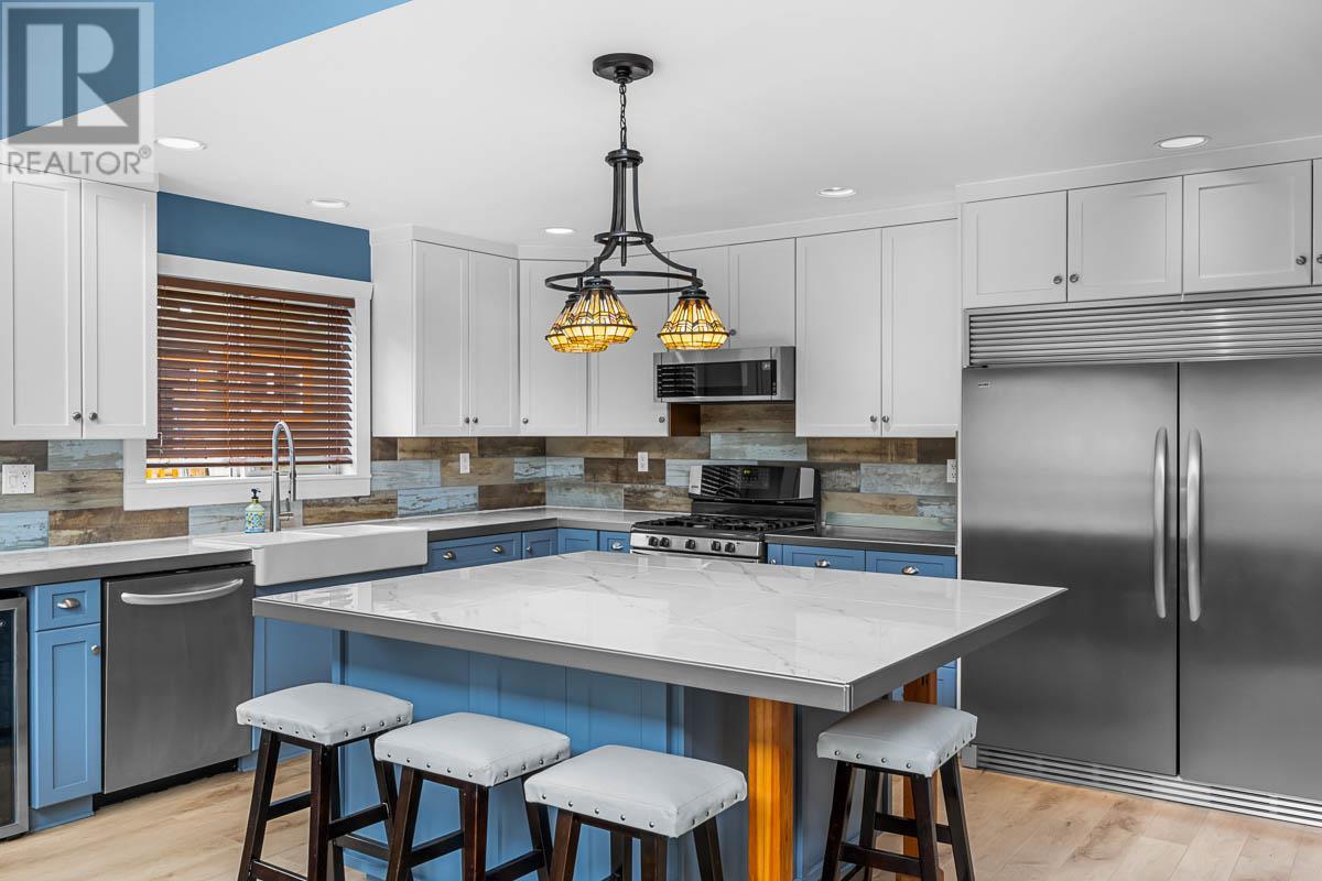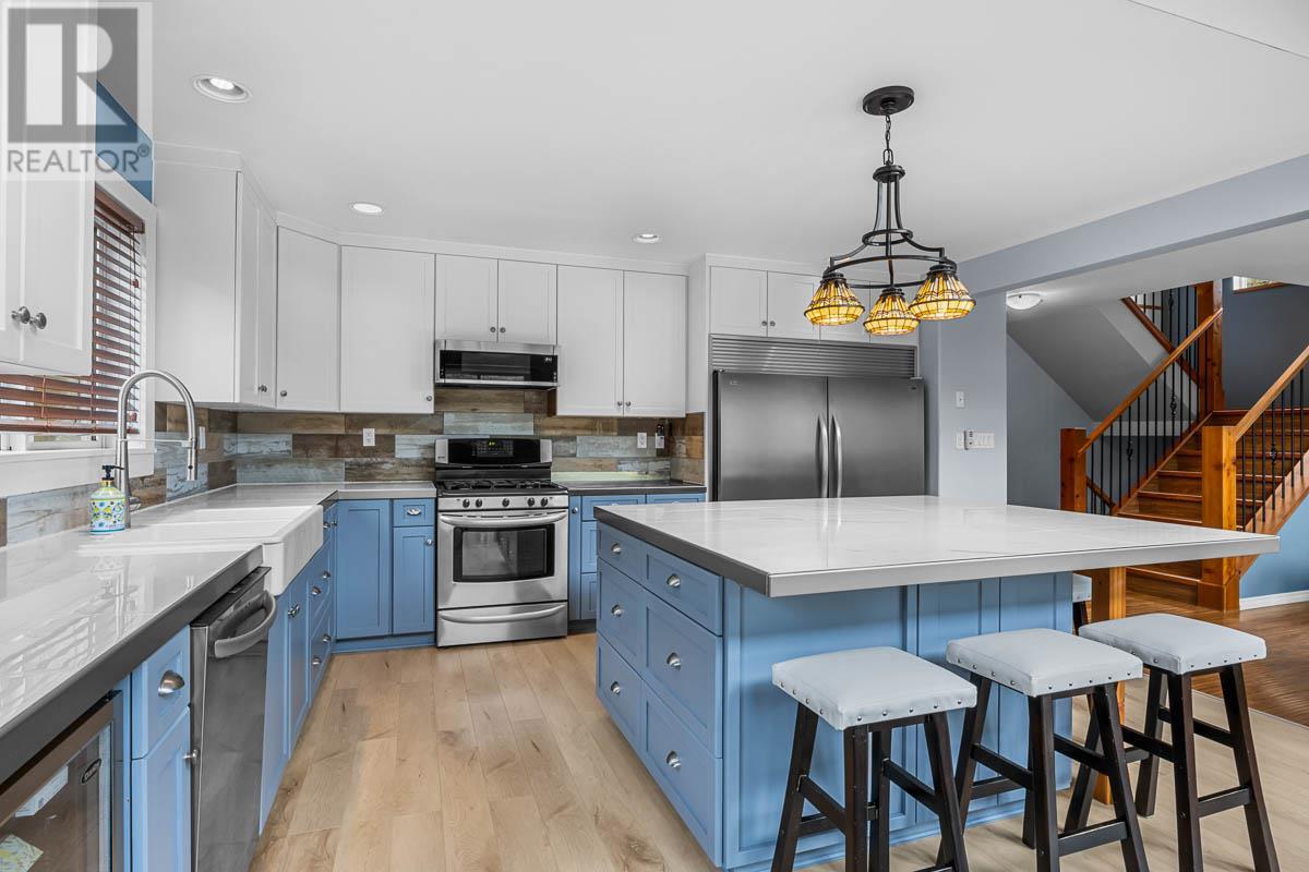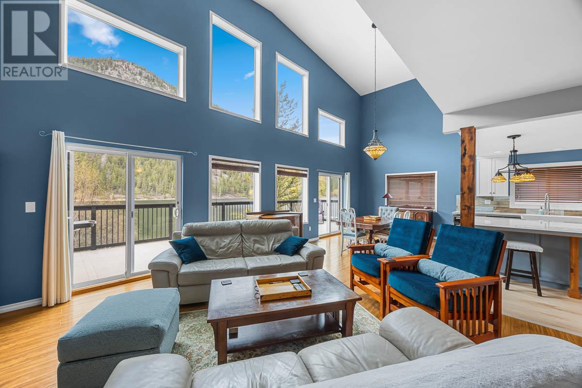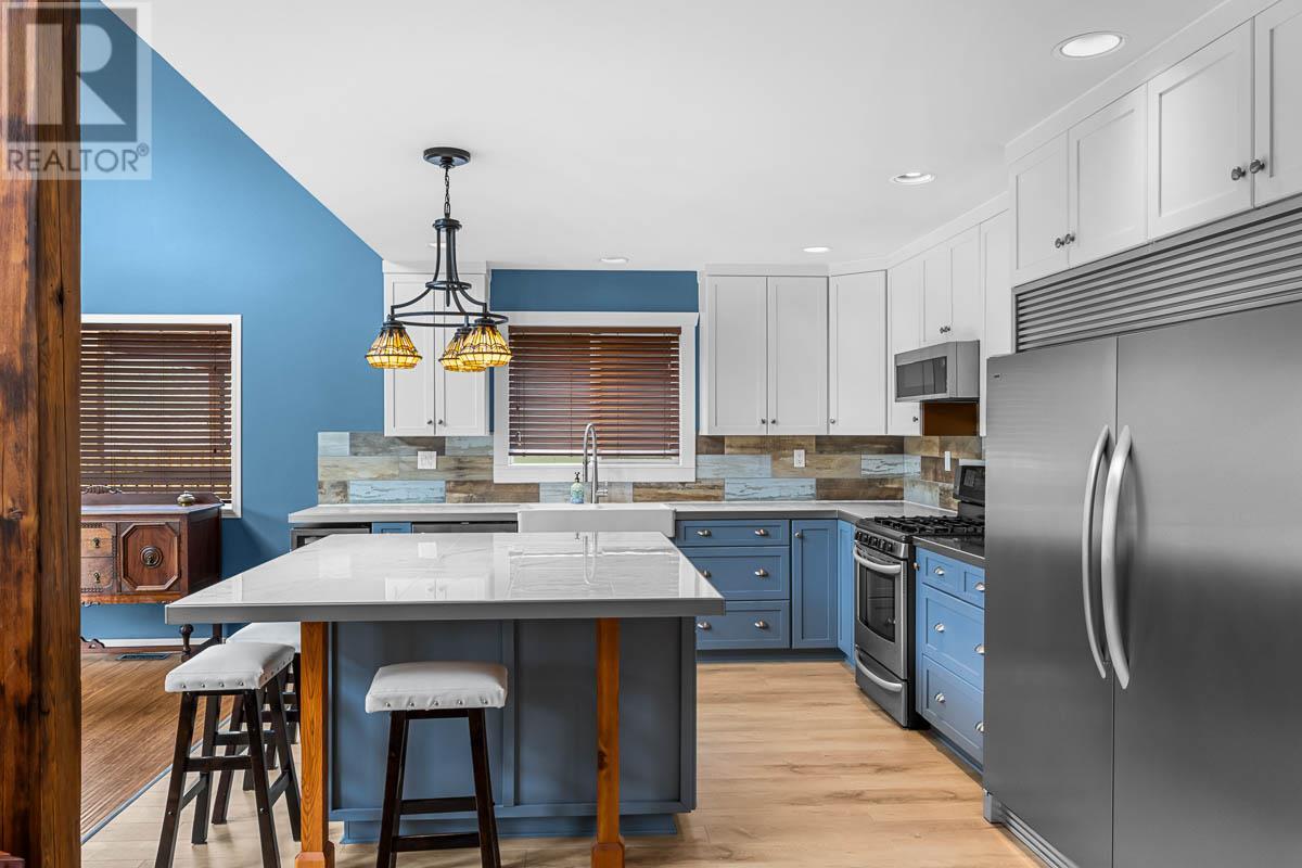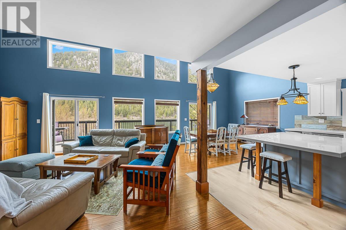 Experience the allure of waterfront living at this charming Paul Lake home 15 minutes from Kamloops. On the main floor you are greeted by the commanding lake & majestic mountain views with spacious living room with cozy gas fireplace, vaulted ceiling, open concept living to the dining area and updated kitchen with double farmhouse sink and large island for gatherings. The sundeck access off the dining room is the perfect place for outdoor gatherings, and endless summer days soaking in the breathtaking lake living. There is a flex space that could be used as a den or guest room, plus large laundry area. The upper level features the primary bedroom with ensuite and 2nd bedroom, with open sitting area or workout space in the loft. The lower level reveals a fully finished recreation room, large entry area with extra storage and a tandem garage and workspace with 12’ ceilings. This 3-bedroom home is equipped with heat pump, central AC and a 200-amp electrical service. A serene year-round lakeside community that offers 4 season recreation at your doorstep. Harper Mountain offers great skiing and mountain biking for year-round recreation fun. There is also a wonderful community park just down the street. This lake home is a great place to create lasting memories for your family & friends for years to come. Please provide 24+ hours' notice for showings. (id:44393)