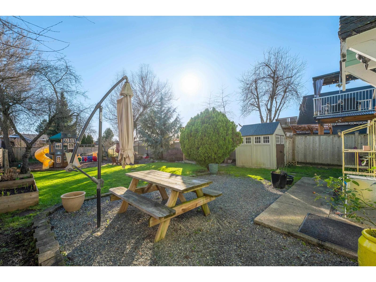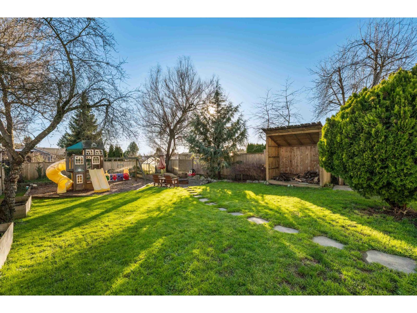 Do not miss this super cute home in popular Langley Meadows! Excellent for first time buyer, no strata fees or rules! Extensive updating to exterior incl. paint and new windows 2022. Kitchen updates(2017)w/ S/S appliances, tile backsplash. Enjoy hi-efficiency wood fireplace w/fan, fresh paint & vinyl plank flooring throughout. 3 Bdrms up & 2 updated baths. Large attic for storage w/ Jacobs ladder. Washer/dryer 2022. Fenced, private large backyard w/ south exp, playground, garden beds & patio area -plenty of room for kids & dogs to run. 2008 Roof (30 yr roof) w/ leafguard gutters. Drive-through single garage. Short walk to Langley Meadows Elem & parks, transit, Willowbrook Mall, Walmart, Superstore, Home Depot.Public Open Sat Feb 14 10AM -12PM and Sunday Feb 15 2-4PM (id:44393)