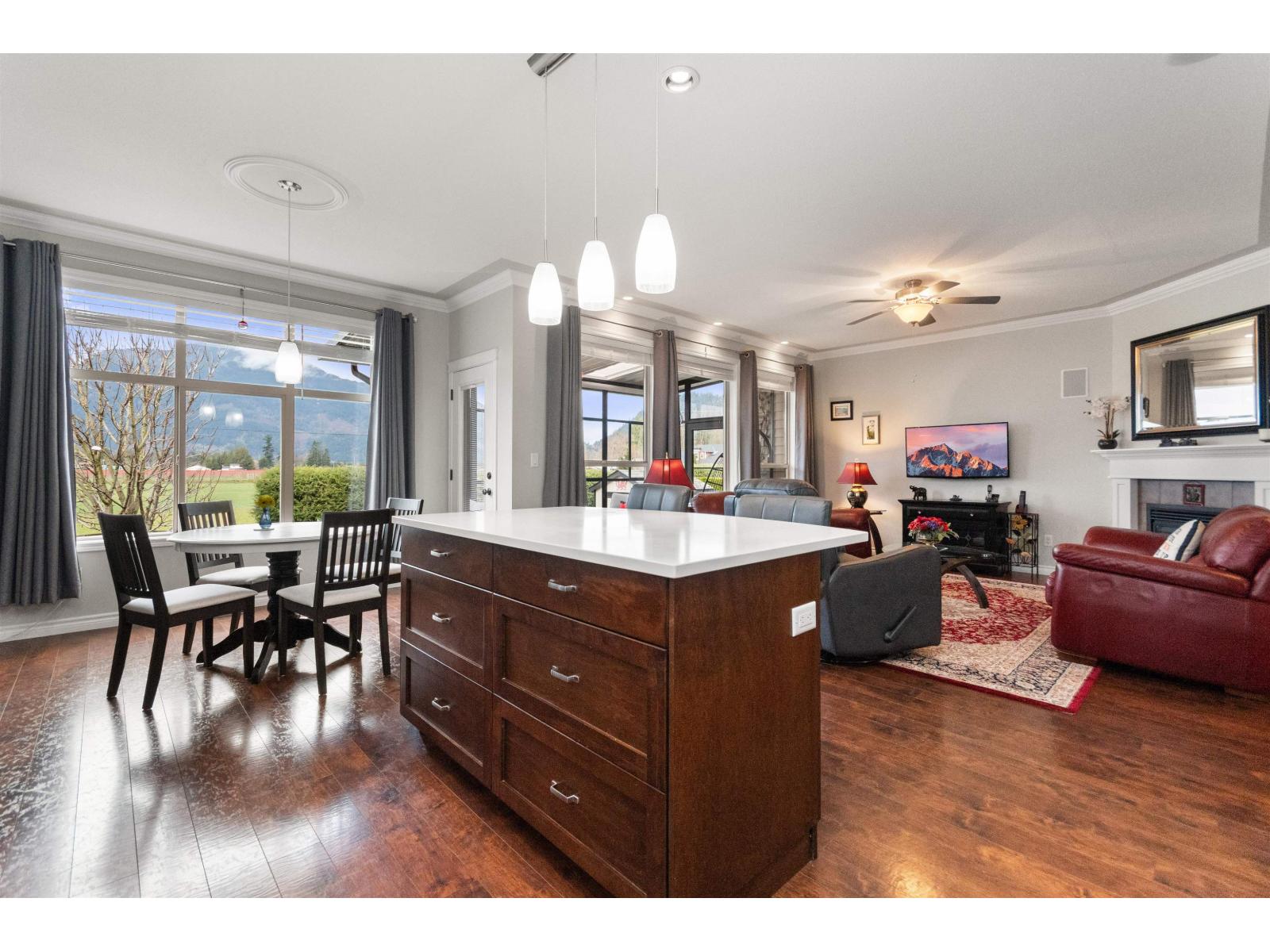 Welcome to Aberdeen Village, one of Agassiz's best neighbourhoods! This impressive home offers a primary bedroom on the main floor, a bright open concept floorplan, tall ceilings, bright windows featuring a beautiful view with mountains and green fields. The kitchen features quartz counter-tops, Bosch dual-fuel range, and a brand new dishwasher. Upstairs is a spacious loft space that could easily be a third bedroom, as well as huge bedroom and bathroom, perfect for guests to enjoy. Easy stair access to the huge 5' crawlspace. Outside find a double garage, on-site RV parking, storage shed, and a private fenced yard with a fully enclosed deck to enjoy year round. Located on a quiet street with easy highway access, Agassiz is the perfect place to call home! OPEN HOUSE FEB 14 & 15 FROM 2-4PM * PREC - Personal Real Estate Corporation (id:44393)