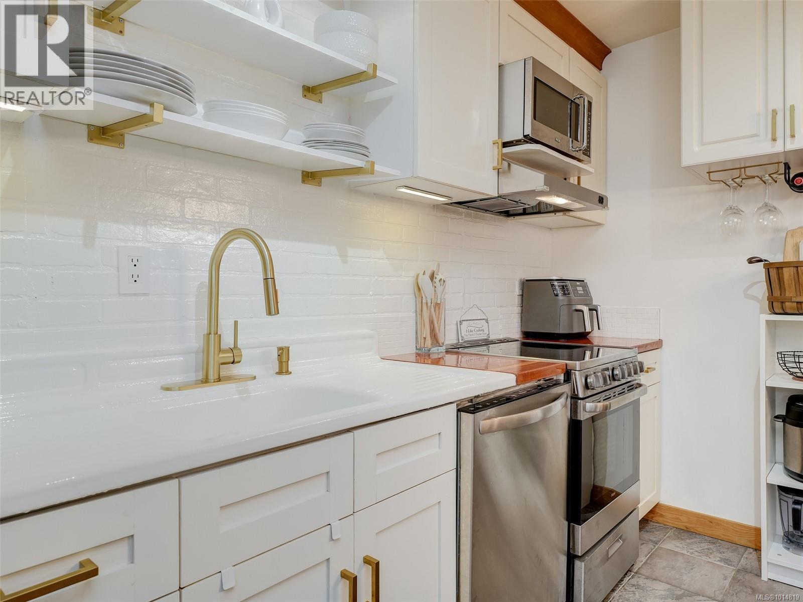 $400.41 MonthlyOcean Edge Opportunity! Affordable, stylish, & just steps to the beach - this 1 bed, 1 bath ground-floor condo is the perfect starter, downsize, or investment property! Located on the Victoria side of Sooke in a quaint 12-unit strata complex, this updated unit offers a comfortable & functional layout with thoughtful designer touches throughout. The chic kitchen features clean white cabinetry with gold & timber accents creating a warm, coastal vibe. The open-concept living/dining space flows nicely & offers easy access to your own private, walk-out patio opening onto peaceful green space, ideal for morning coffee or evening relaxation. Enjoy in-suite laundry, a spacious bedroom with dual-closets, updated 4-piece bathroom, seperate storage closet & 1 parking stall. Pet + family friendly & rentable with direct access to oceanfront just down the street. Close to Sooke core, on bus route, & only 20 minutes to Westshore. Don’t miss this turn-key opportunity to live the West Coast lifestyle! (id:44393)