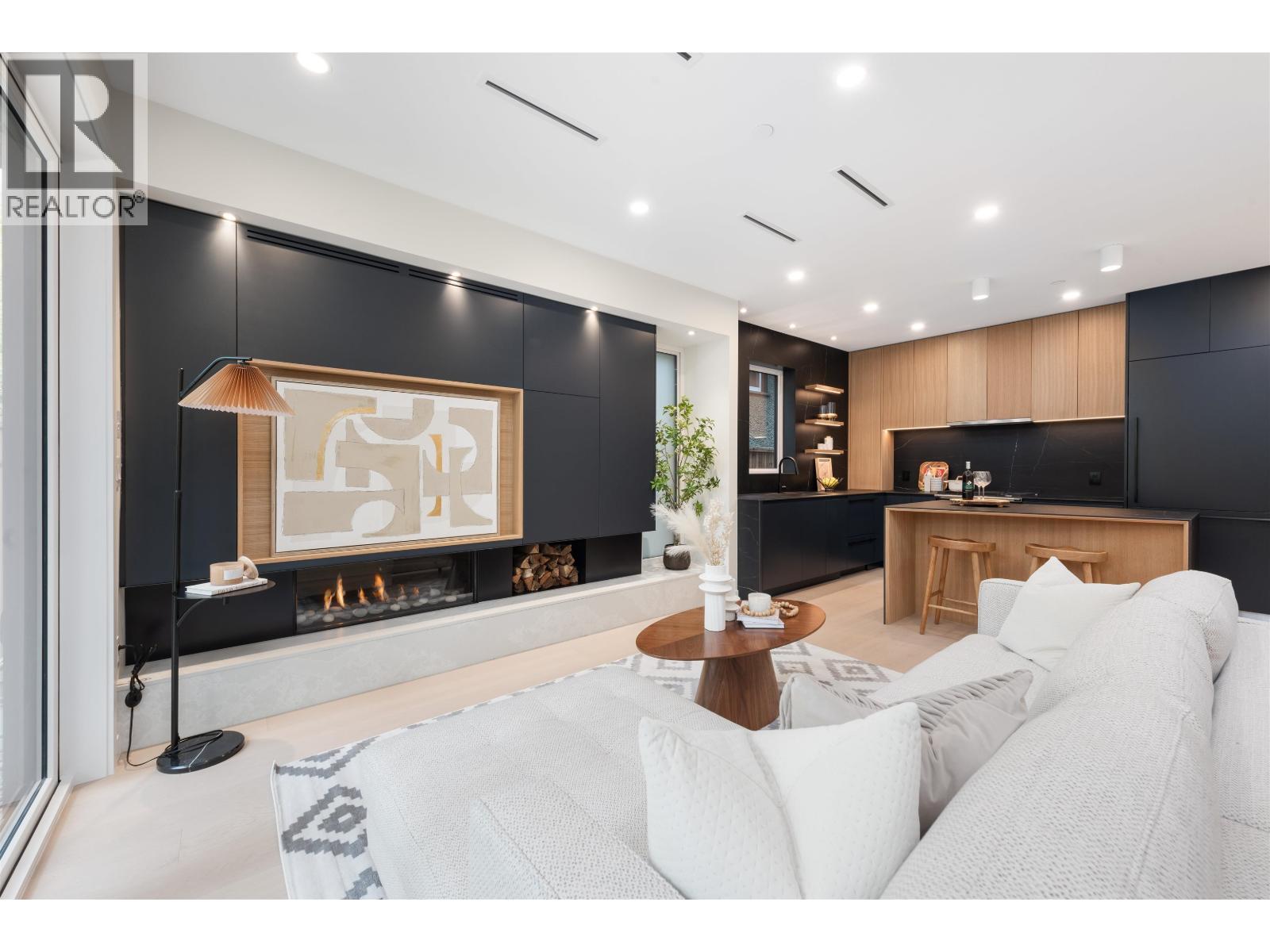 Welcome to this stunning 3 bed, 2.5 bath designer duplex in the heart of Kitsilano. Thoughtfully crafted by Architrix with interiors by PTL Design, this home features premium integrated appliances, radiant in-floor heating (4 zones), A/C with Nest, and Caesarstone & Vicostone surfaces. The sleek kitchen showcases custom millwork and a luxurious black porcelain island. Enjoy elegant lighting by Bocci, and relax by the natural gas fireplace. Custom millwork throughout, including a built-in office space by Farrell Custom Woodwork. Includes a detached garage, private outdoor space, and easily accessible crawl space for extra storage. Located on a quiet tree-lined street, steps to parks, shops, and transit. In General Gordon Elementary & Kitsilano Secondary catchments. Don't miss it! (id:44393)