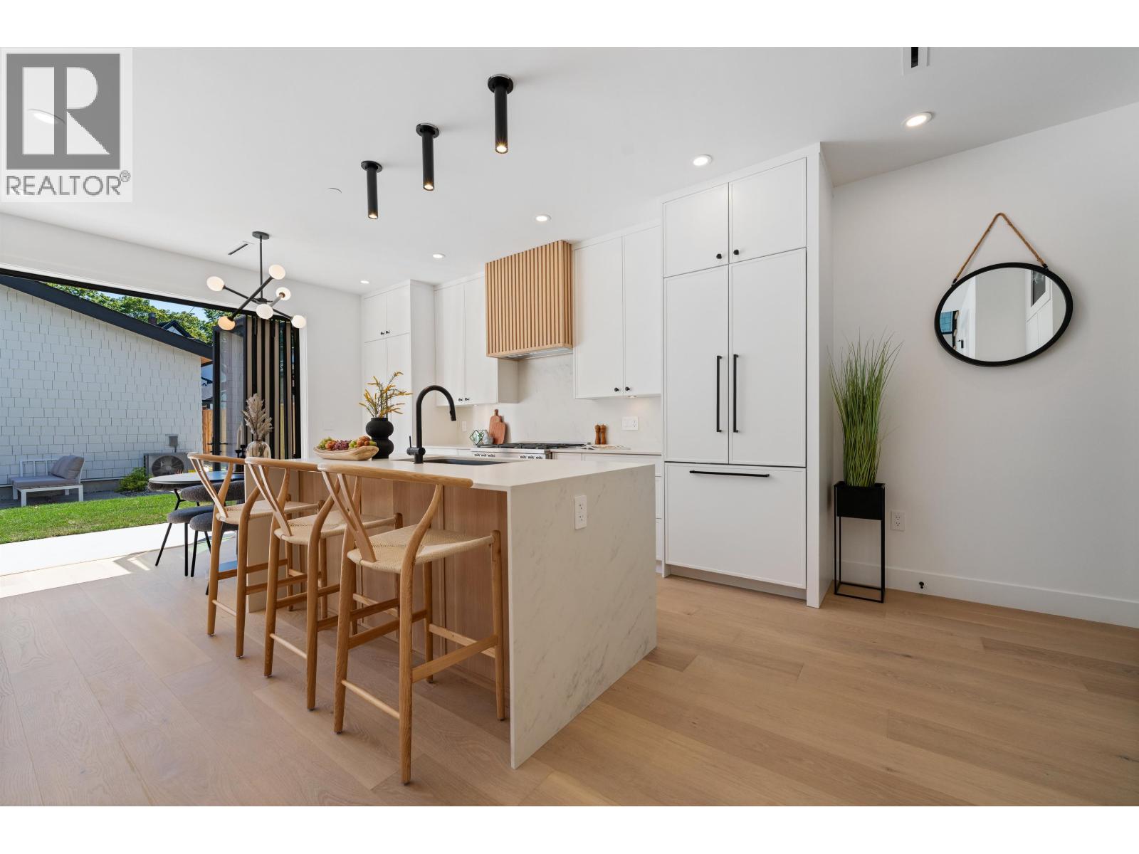 Built by renowned Westside builder Mann Bros Construction, this brand-new back 1/2 duplex in the heart of Kitsilano is a true masterpiece of design and craftsmanship, with no detail spared and only the finest materials used. This 3 bed, 4 bath home blends timeless style with modern functionality across three well-appointed levels. The main floor features an expansive open-concept layout with a state-of-the-art Miele kitchen, Dekton countertops, custom cabinetry, and a 7-ft island perfect for entertaining. High ceilings, triple-glazed windows, radiant in-floor heating, and 15' eclipse doorscreate seamless indoor-outdoor living. Additional highlights include A/C, built-in speakers, smart thermostat, EV-ready garage, and a private built-in BBQ. Spa-inspired bathrooms feature Riobel and Kohler fixtures, frameless glass showers, and smart toilets. Enjoy a sunny south-facing backyard in one of Vancouver´s most walkable, vibrant, and family-friendly neighbourhoods. OPEN HOUSE SAT OCT 4th 2-4pm (id:44393)