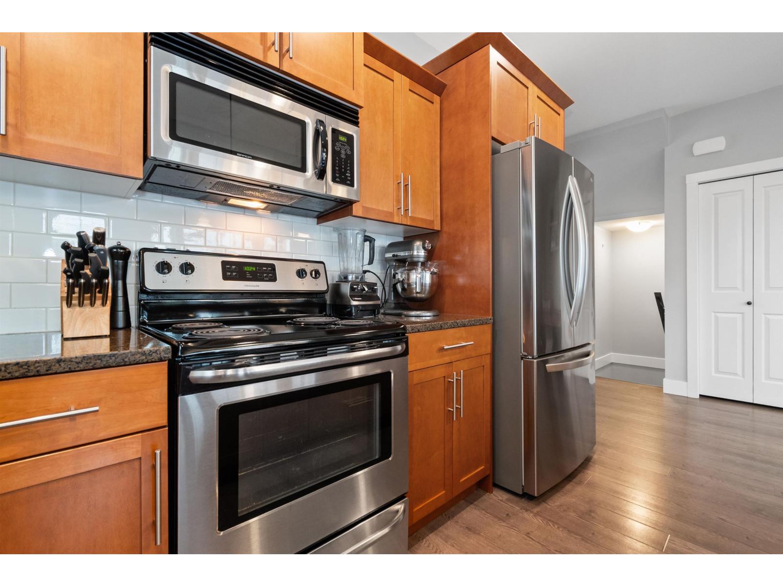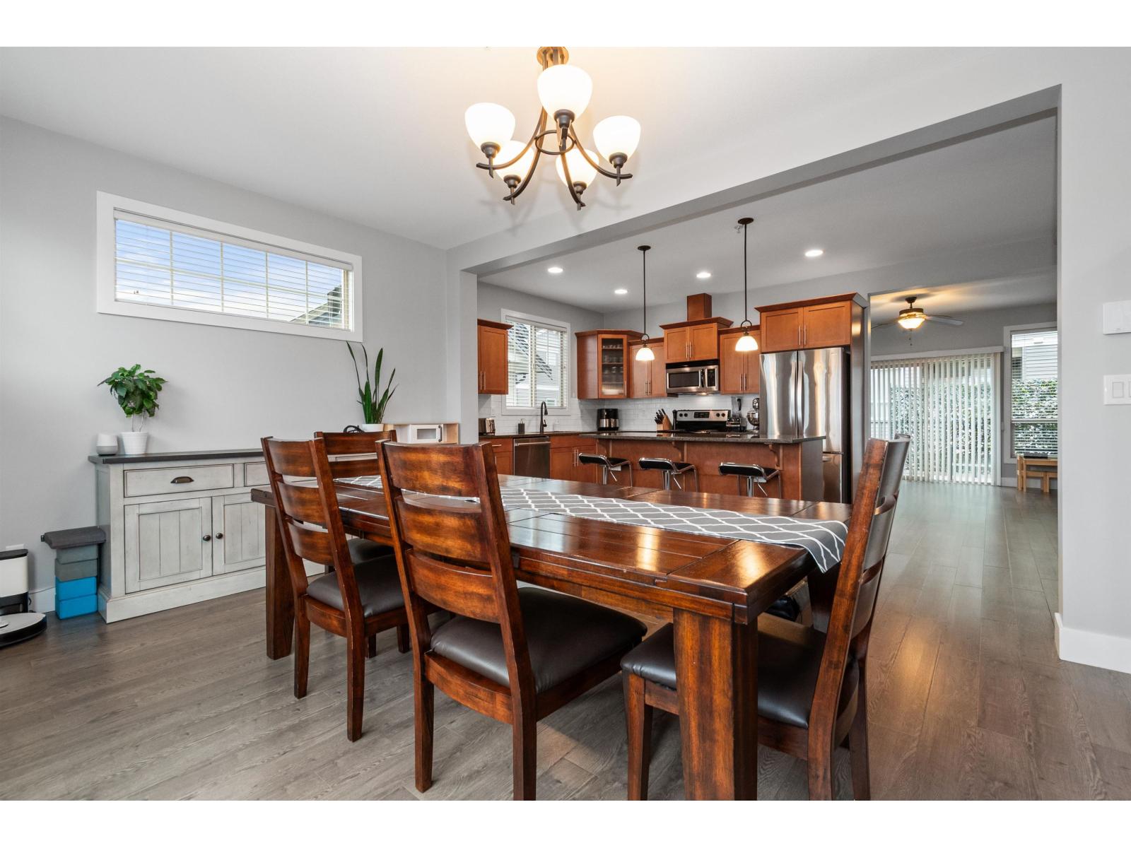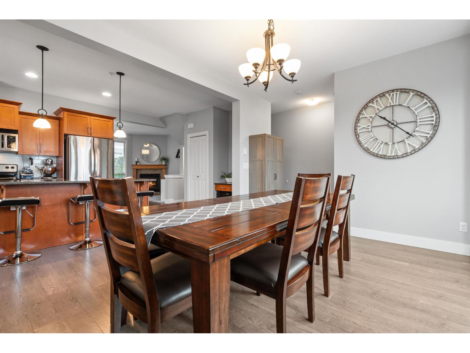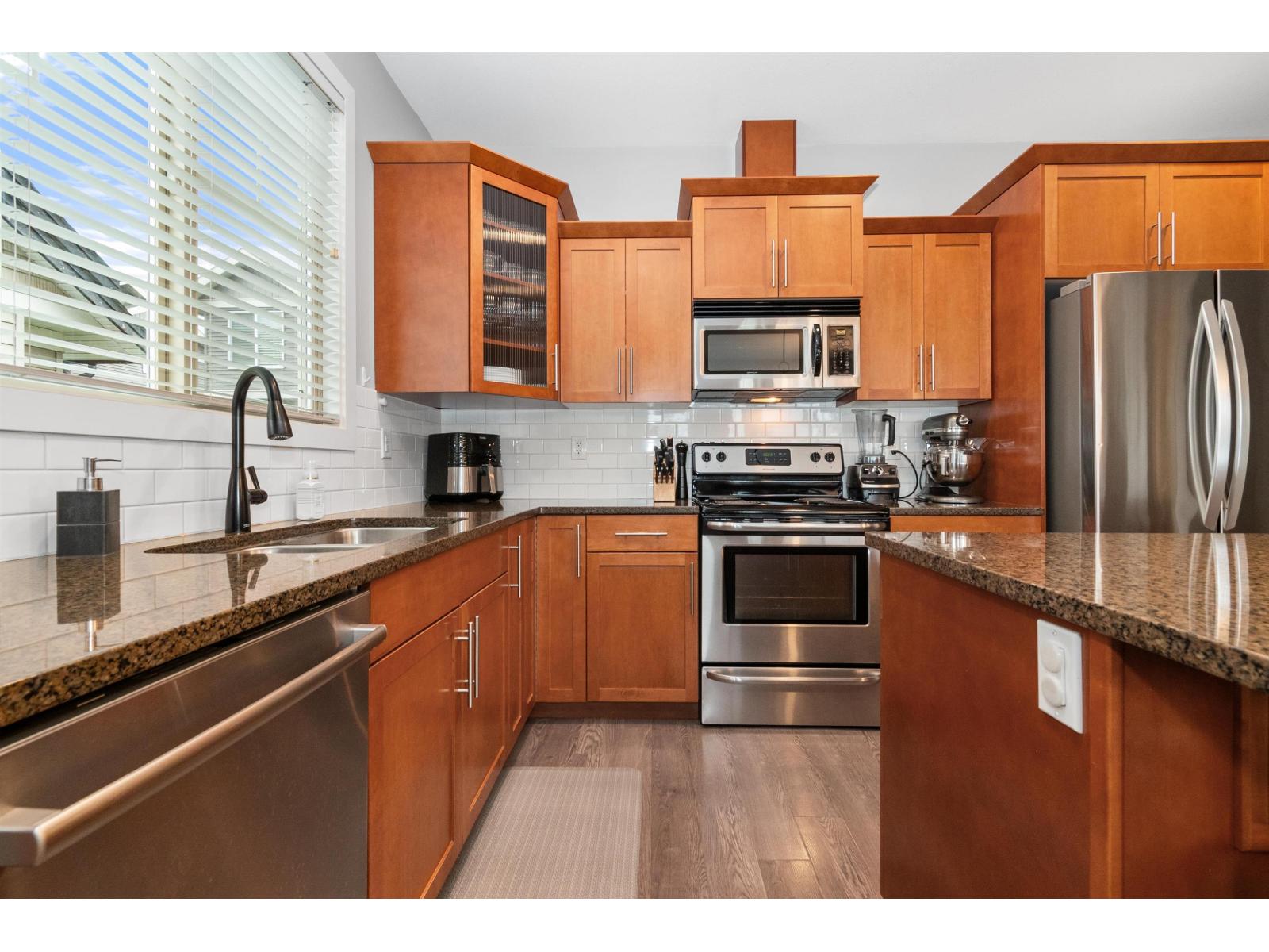 Pristine, bright END-unit townhome offering over 2,027sqft in convenient central location. Main floor features 9' ceilings, wide plank laminate flooring, a spacious kitchen w/ample cabinetry, large island, stainless steel appliances & expansive dining area + powder room. Plus a huge lvgrm w/elec fireplace, + access to balcony! Upstairs, enjoy an oversized primary bdrm w/ensuite & walk-in closet, laundry(new W/D) & 2 big bdrms w/full bath. The lower level incl lrg recrm (4th bdrm?) w/4-piece bath & sliders to patio & south facing fully-fenced yard. Single garage + lrg pkg pad & handy visitor pkg beside. Small, family-friendly 8-unit complex, mins to shopping, restaurants, schools & all amenities. Shows beautifully! Heat pump (3yo), HWT(2021), strata $479.54/mo & 2 small pets ok (max 14"). * PREC - Personal Real Estate Corporation (id:44393)