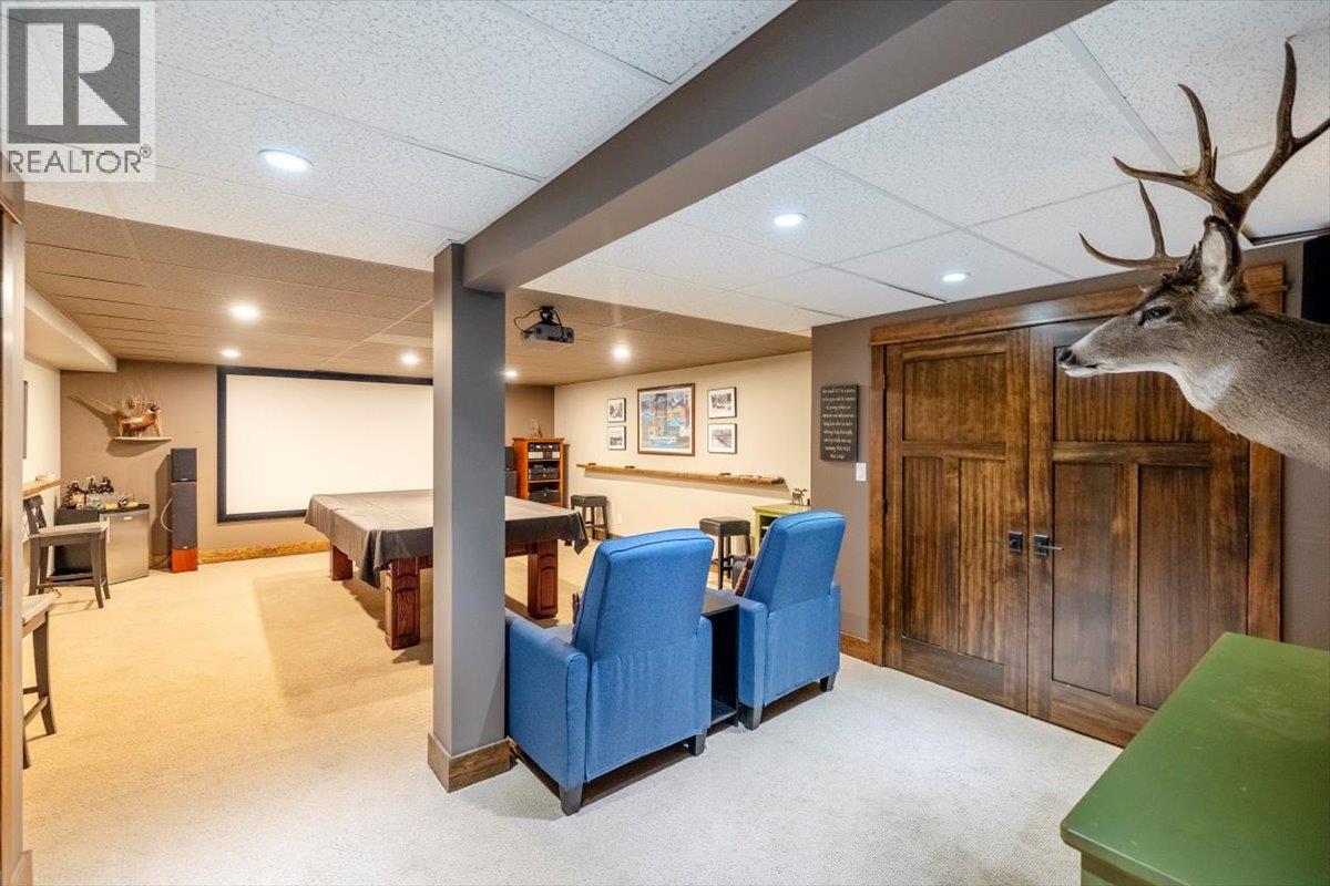 4-Bedroom, 4-Bathroom Home in Fernie This custom home is located on a premium lot that backs directly onto the park and the Elk River. The property has been extensively renovated and upgraded, with attention to detail throughout. The main level features a large open-concept kitchen with professional-grade appliances, quartz countertops, custom cabinetry, and hardwood and tile flooring. A grand stone fireplace is the centerpiece of the main living area. Upstairs you will find 3 guest bedrooms, the laundry room, 4 piece guest bathroom, and the primary suite with attached en-suite bathroom and oversized walk in closet. Additional interior features include a custom-built theatre room, an elevator for accessibility and convenience for all three floors, and large windows that provide natural light and views of the surrounding landscape. At the rear of the home, there is a covered deck with an outdoor fireplace and access to a hot tub. The property includes a heated and insulated three-bay garage with a car lift and plenty of storage space for vehicles and equipment. Outdoor amenities include direct access to walking and biking trails, James White Park, and the Elk River. Fernie’s shops, restaurants, and community services are only a short distance away. (id:44393)
