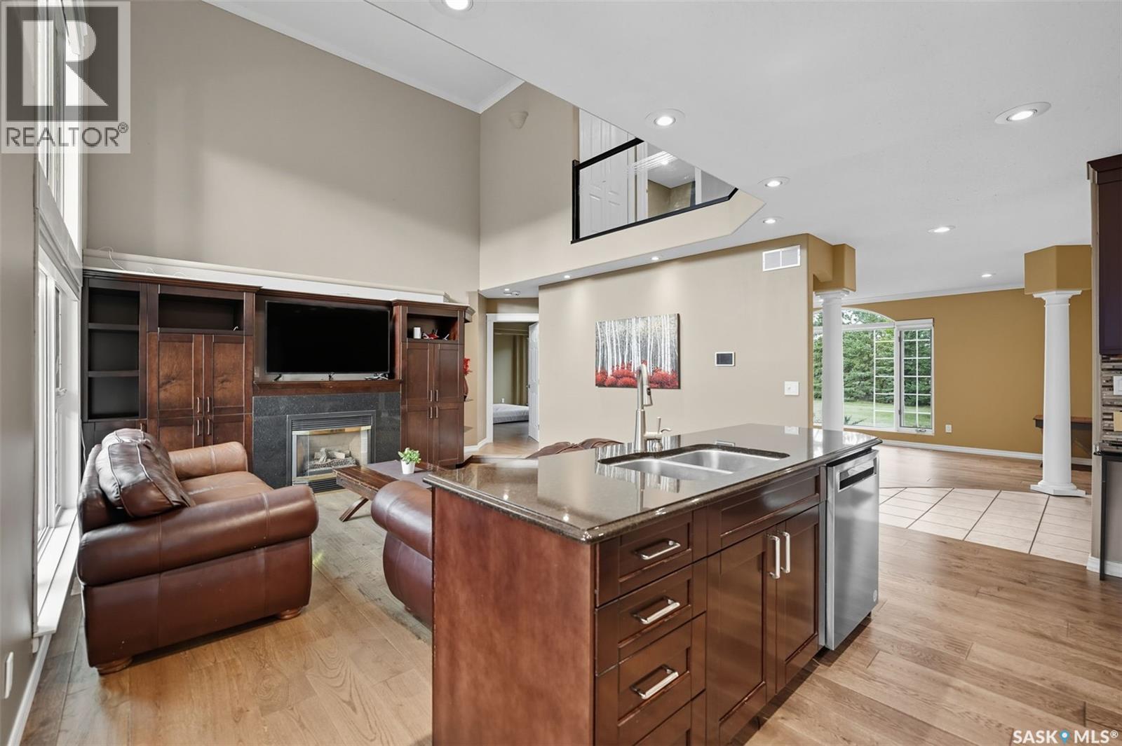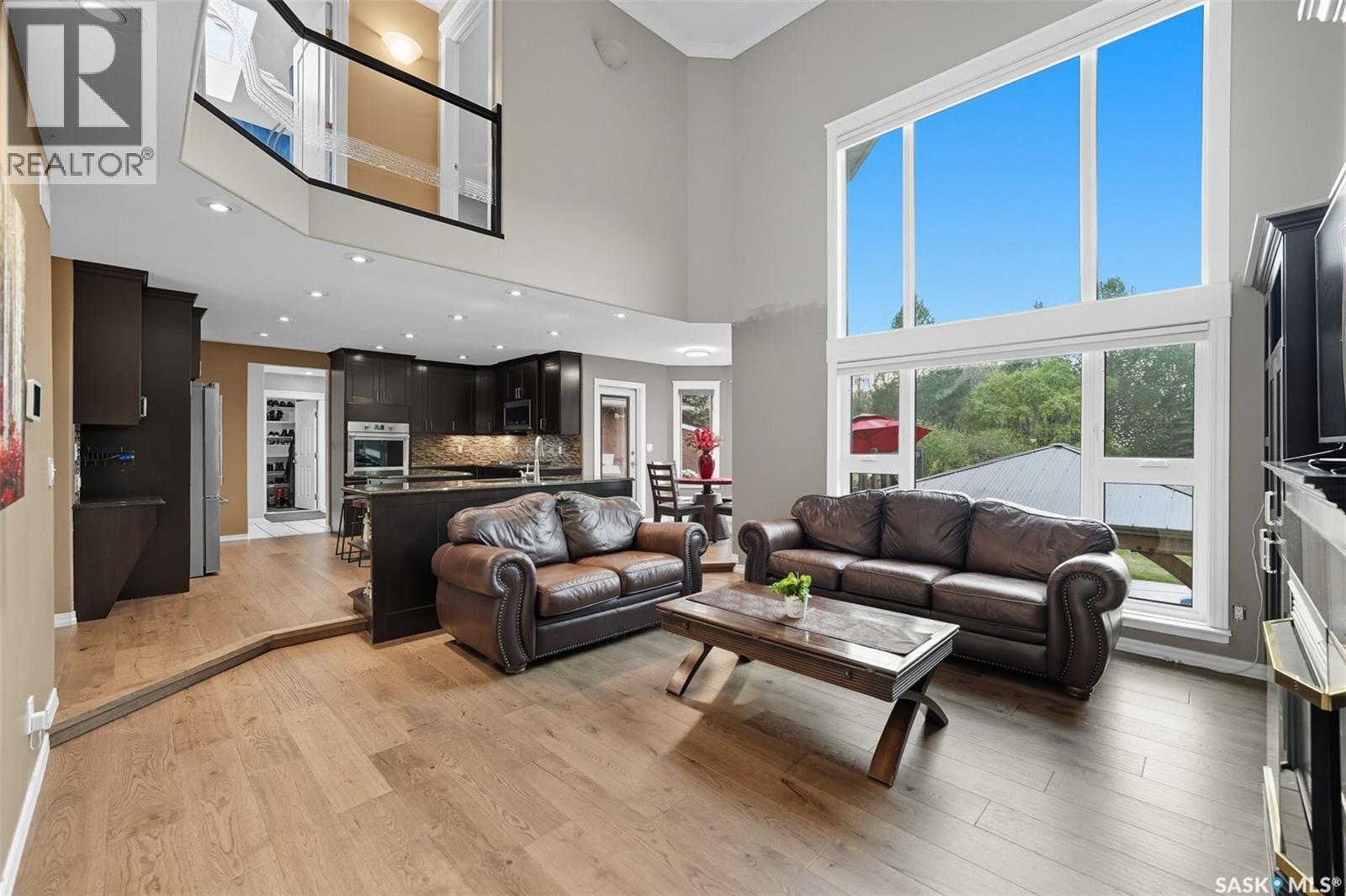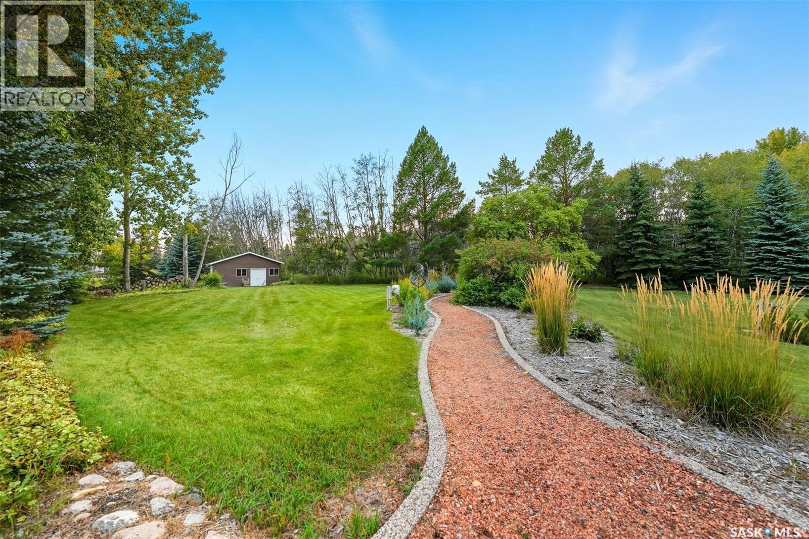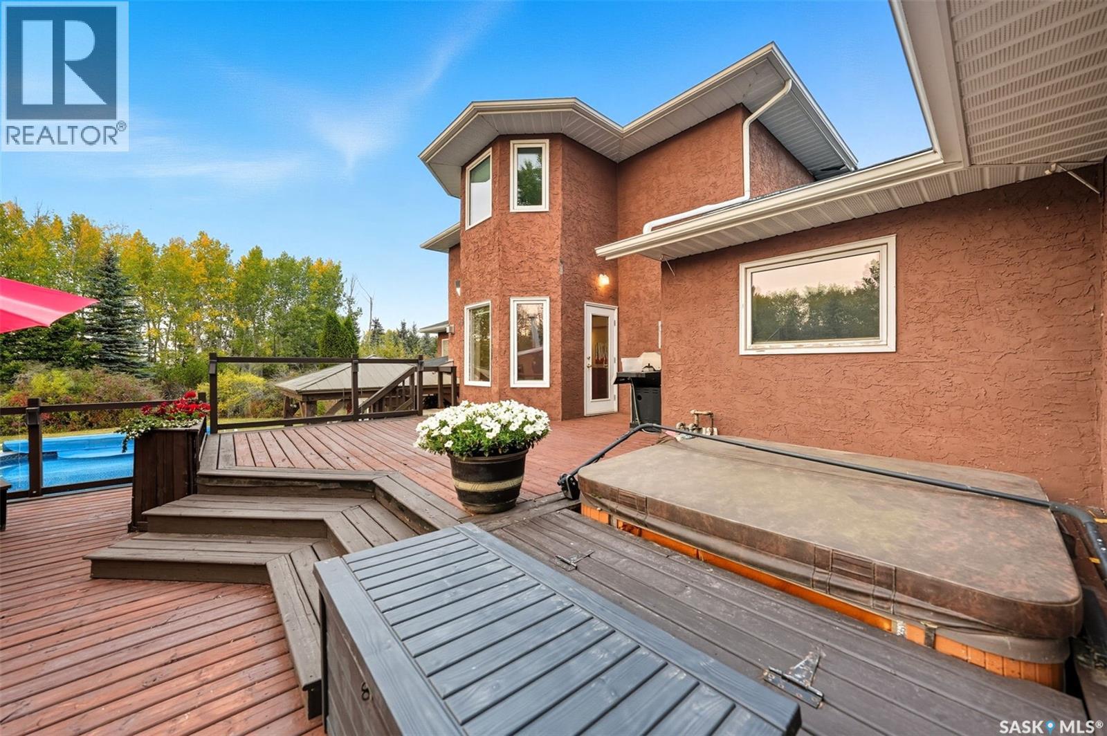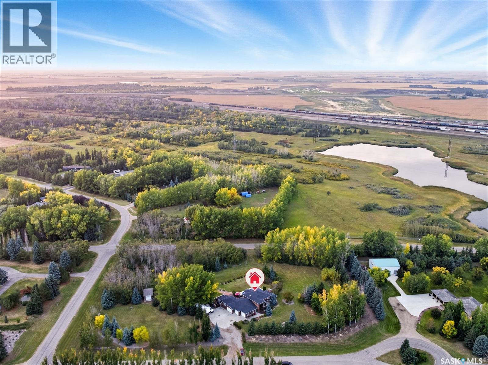 Highly desirable CEDAR VILLA ESTATES!!! Only ONE km from city limits! Enjoy the serenity of country living with city convenience such as treated SK water and high speed fiber internet!! Well maintained 2 story split offers the perfect blend of luxury and tranquility situated on well treed 2.81 acres. This home is designed for function, style and entertaining. Gourmet kitchen with maple cabinets, granite counter tops including the island, tiled back splash + a pantry. Open into the Livingroom which offers cathedral ceilings and gas fireplace. Garden doors to multi-level deck. Separate formal dining room is great for hosting functions. Main floor laundry. Primary bedroom is on the main floor as well with 4 pc ensuite and walk-in closet. 2nd floor has 3 more spacious bedrooms and another 4pc bathroom. Plenty more space in the WALKOUT basement! Complete with a family room with built-in feature wall including a gas fireplace. Garden doors from the sunroom to the amazing yard. There is also a games area and 2 more "flex" rooms for a gym or your favorite hobby with it's own 3pc bath. Upgrades included newer engineered hardwood flooring, furnace, water heater and A/C 4 years old. Attached oversized 3 car garage with attached heated work shop. PLUS a detached 23'x13'7" garage. Plenty of room for the acreage toys! Perfect entertaining yard set up with in ground POOL and wrap around multi level deck complete with gazebo. The inviting pond adds to the aesthetic features and serenity of surrounding nature. Glorious heavily treed lot has plenty of space for out door activities. Inviting stone pathway leads to a private firepit area. There is a deep well for the yard watering along with underground sprinklers. Experience the perfect balance of luxury living and country charm in this Cedar Villa acreage!! (id:44393)