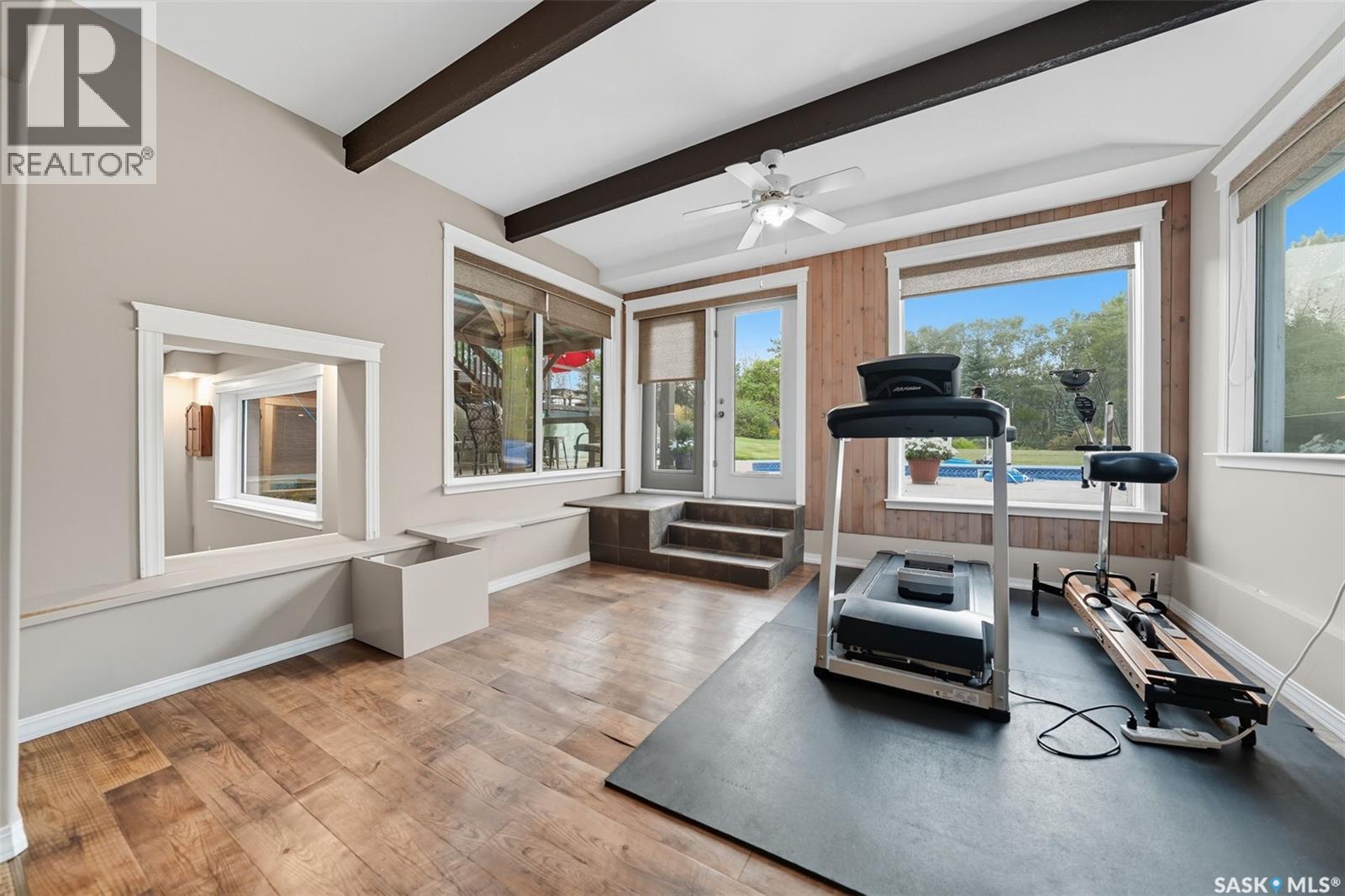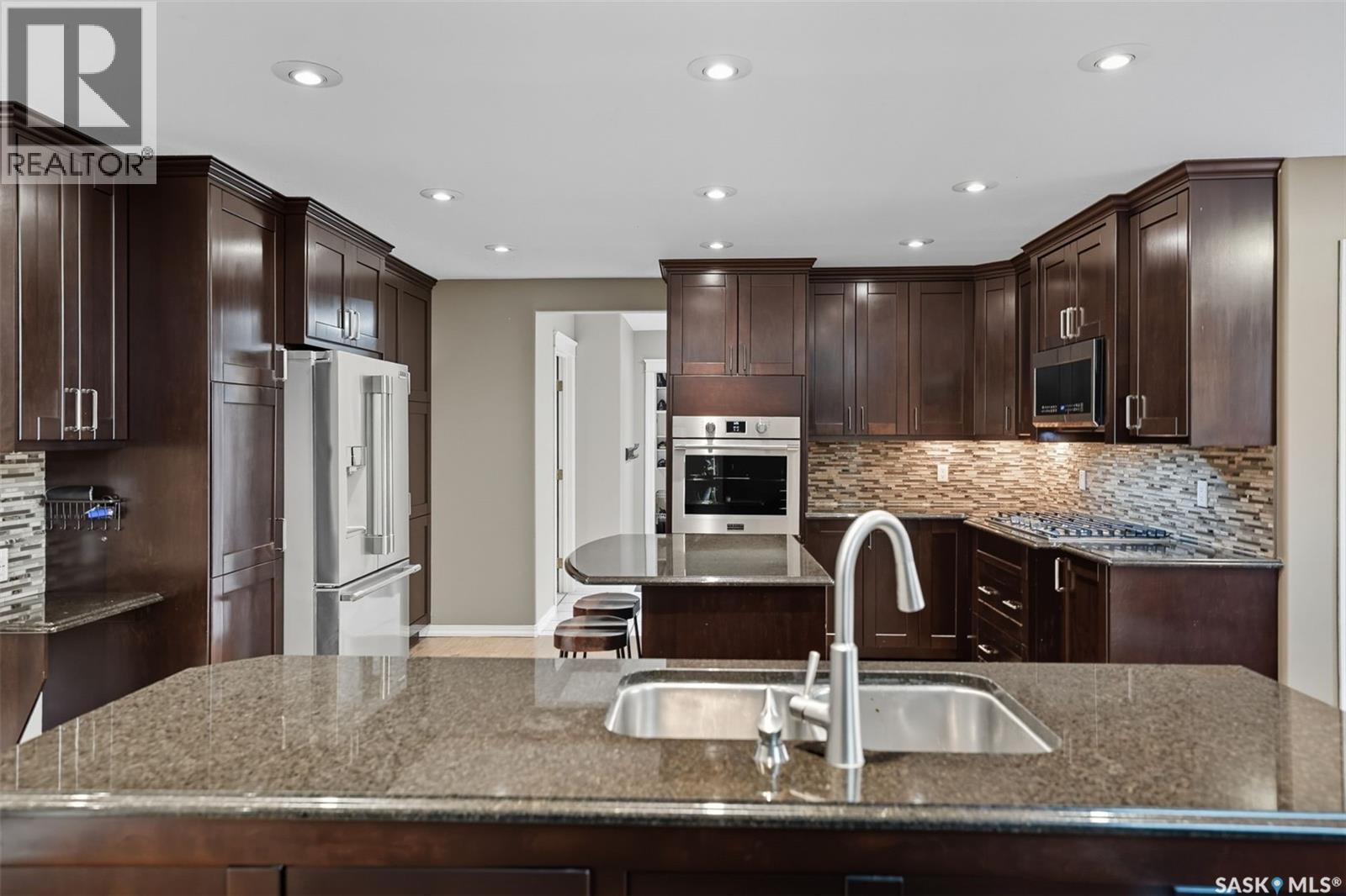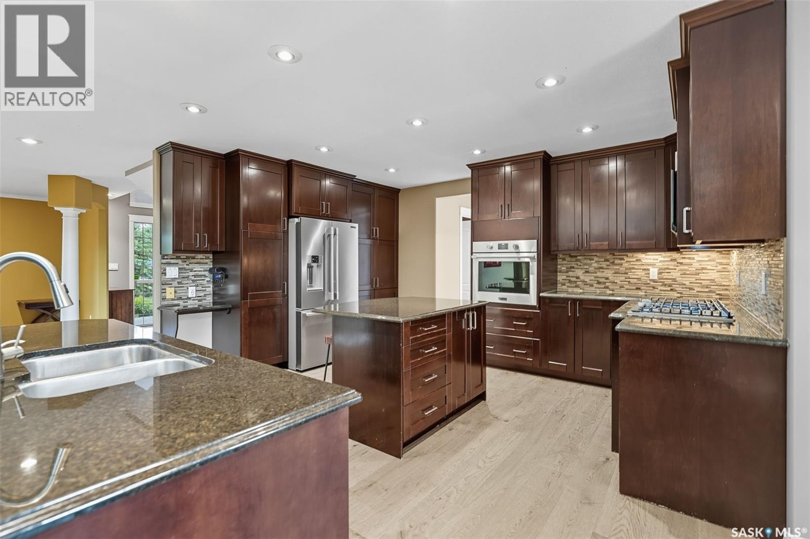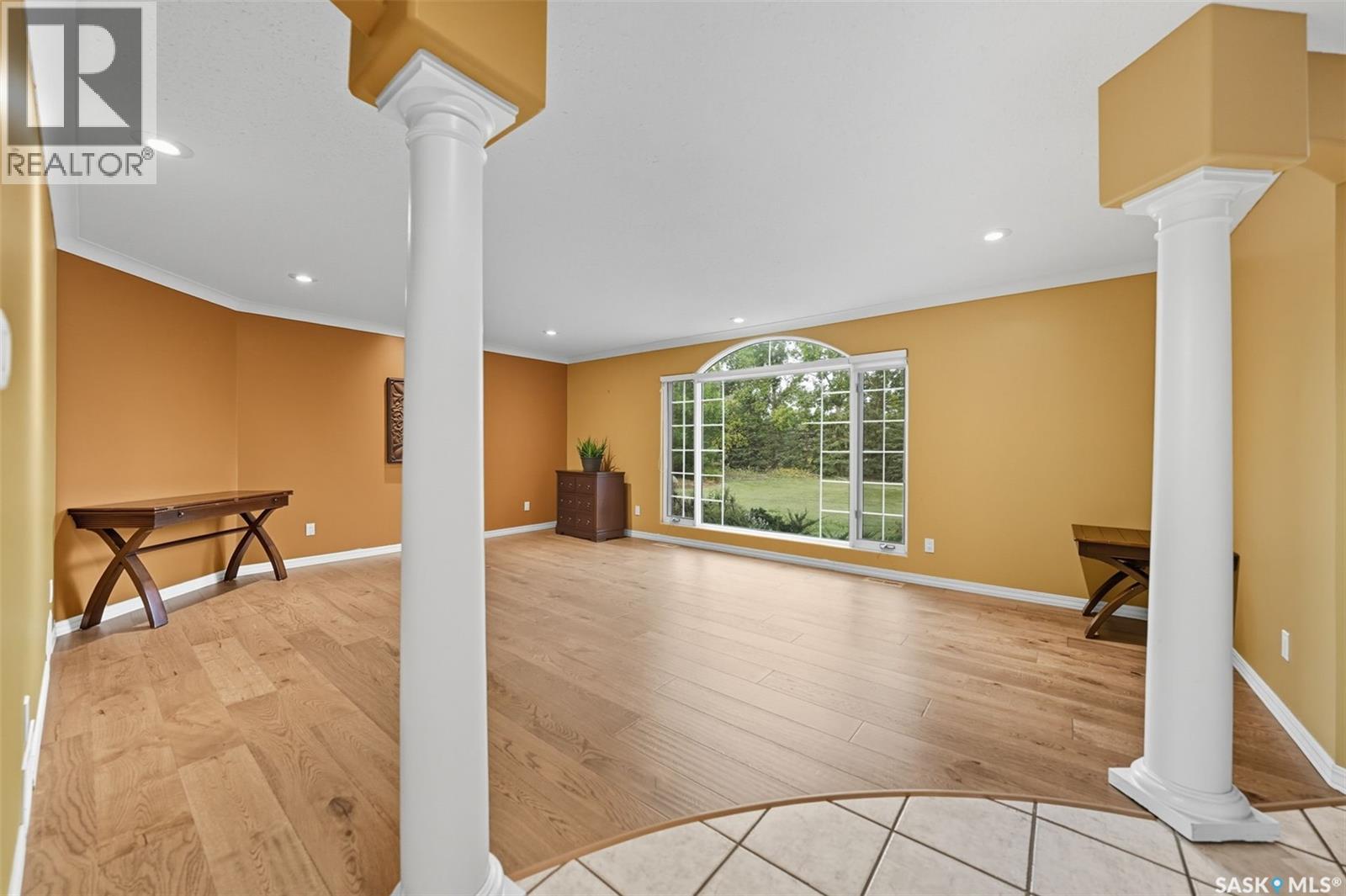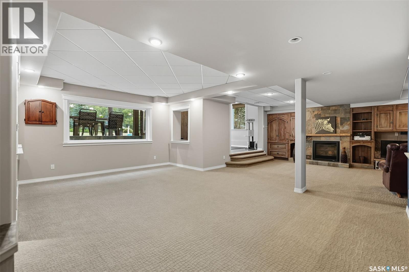 Highly desirable CEDAR VILLA ESTATES!!! Only ONE km from city limits! Enjoy the serenity of country living with city convenience such as treated SK water and high speed fiber internet!! Well maintained 2 story split offers the perfect blend of luxury and tranquility situated on well treed 2.81 acres. This home is designed for function, style and entertaining. Gourmet kitchen with maple cabinets, granite counter tops including the island, tiled back splash + a pantry. Open into the Livingroom which offers cathedral ceilings and gas fireplace. Garden doors to multi-level deck. Separate formal dining room is great for hosting functions. Main floor laundry. Primary bedroom is on the main floor as well with 4 pc ensuite and walk-in closet. 2nd floor has 3 more spacious bedrooms and another 4pc bathroom. Plenty more space in the WALKOUT basement! Complete with a family room with built-in feature wall including a gas fireplace. Garden doors from the sunroom to the amazing yard. There is also a games area and 2 more "flex" rooms for a gym or your favorite hobby with it's own 3pc bath. Upgrades included newer engineered hardwood flooring, furnace, water heater and A/C 4 years old. Attached oversized 3 car garage with attached heated work shop. PLUS a detached 23'x13'7" garage. Plenty of room for the acreage toys! Perfect entertaining yard set up with in ground POOL and wrap around multi level deck complete with gazebo. The inviting pond adds to the aesthetic features and serenity of surrounding nature. Glorious heavily treed lot has plenty of space for out door activities. Inviting stone pathway leads to a private firepit area. There is a deep well for the yard watering along with underground sprinklers. Experience the perfect balance of luxury living and country charm in this Cedar Villa acreage!! (id:44393)