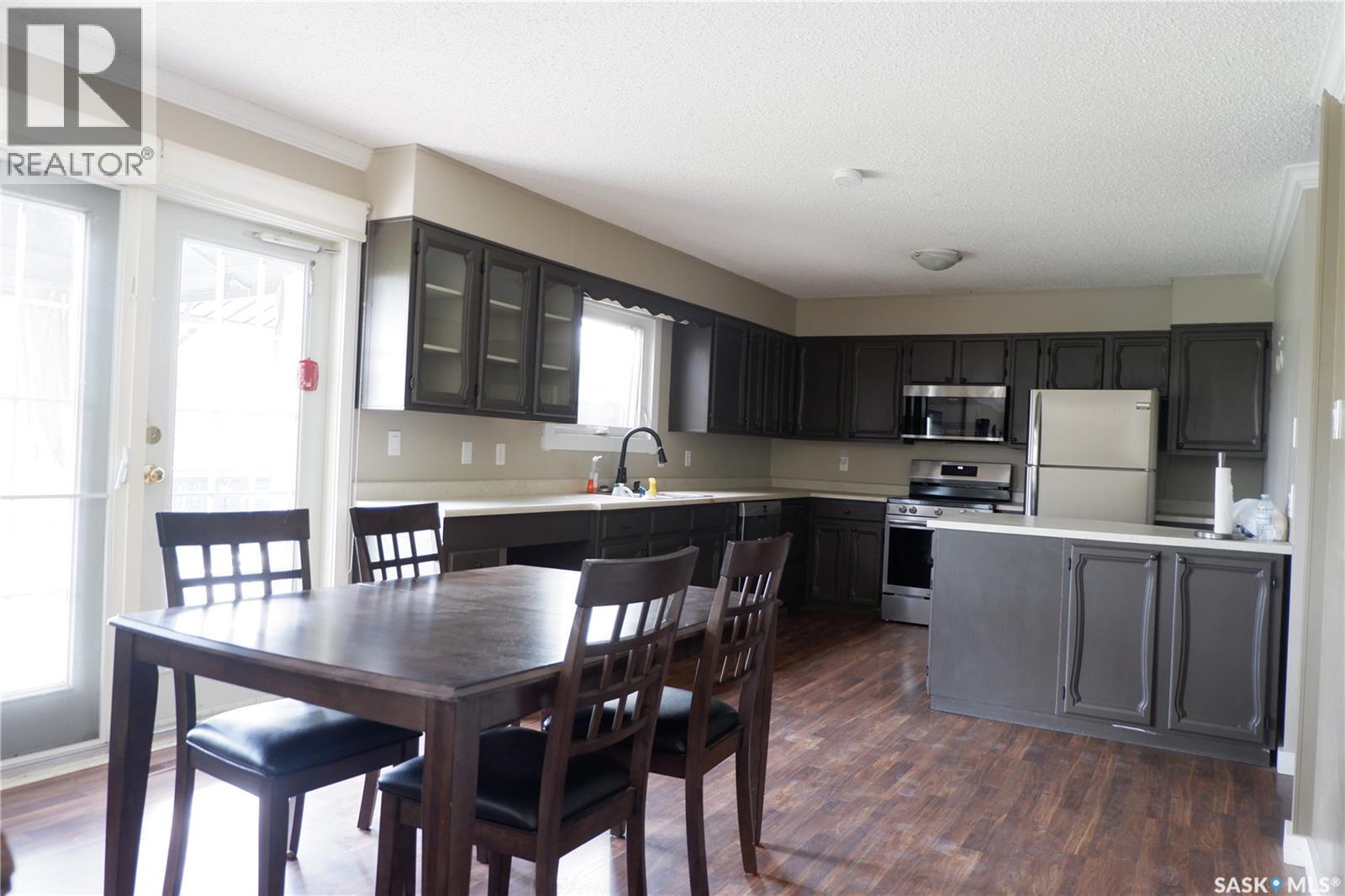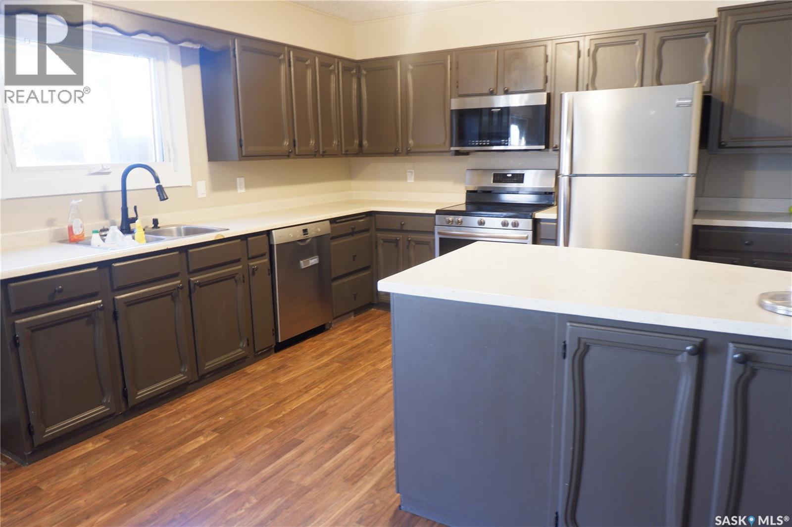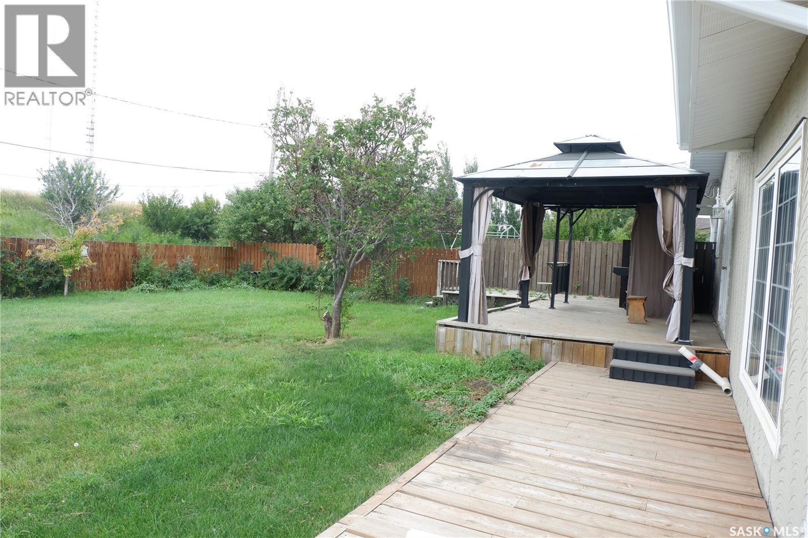 Located in the Town of Mossbank in a great location at the edge of town on a quiet crescent. Enter through the front doors and notice the large entryway. The double attached garage provides for entry to the house or the fully fenced back yard. The house features open design concept with a large kitchen, complete with extra countertop area, dining room and sunken living room. Three bedrooms provide for a great family arrangement with the Primary bedroom boasting a 2-piece Ensuite. The main bathroom has been upgraded featuring a modern sink. The basement is fully developed with a family area, large bedroom, 3-piece bath with a large shower, extra room and laundry in utility. Most of the windows have been upgraded with vinyl windows. Enjoy the peaceful backyard with easy access patio doors from the dining room. Heated with a high efficient natural gas furnace, complete with central air conditioning. This is a great family home that is move in ready and set up to welcome its next family. Come have a look! Mossbank is a thriving community with a K-12 school, skating and curling rink, outdoor pool, grocery store, accounting office, SGI office, and so much more. (id:44393)