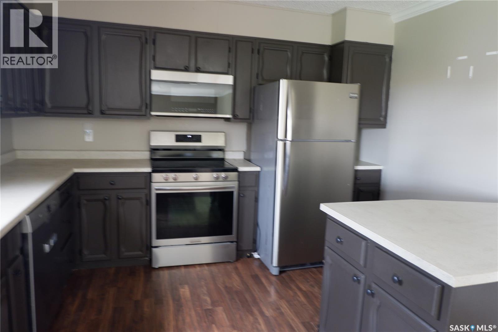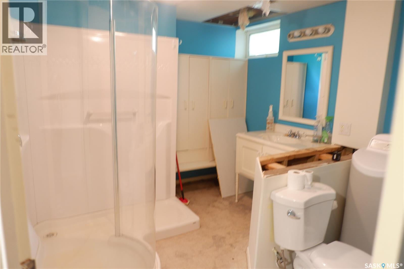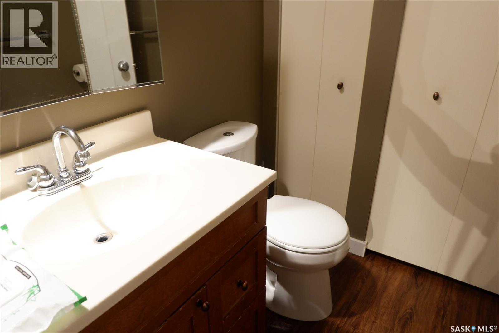 Located in the Town of Mossbank in a great location at the edge of town on a quiet crescent. Enter through the front doors and notice the large entryway. The double attached garage provides for entry to the house or the fully fenced back yard. The house features open design concept with a large kitchen, complete with extra countertop area, dining room and sunken living room. Three bedrooms provide for a great family arrangement with the Primary bedroom boasting a 2-piece Ensuite. The main bathroom has been upgraded featuring a modern sink. The basement is fully developed with a family area, large bedroom, 3-piece bath with a large shower, extra room and laundry in utility. Most of the windows have been upgraded with vinyl windows. Enjoy the peaceful backyard with easy access patio doors from the dining room. Heated with a high efficient natural gas furnace, complete with central air conditioning. This is a great family home that is move in ready and set up to welcome its next family. Come have a look! Mossbank is a thriving community with a K-12 school, skating and curling rink, outdoor pool, grocery store, accounting office, SGI office, and so much more. (id:44393)