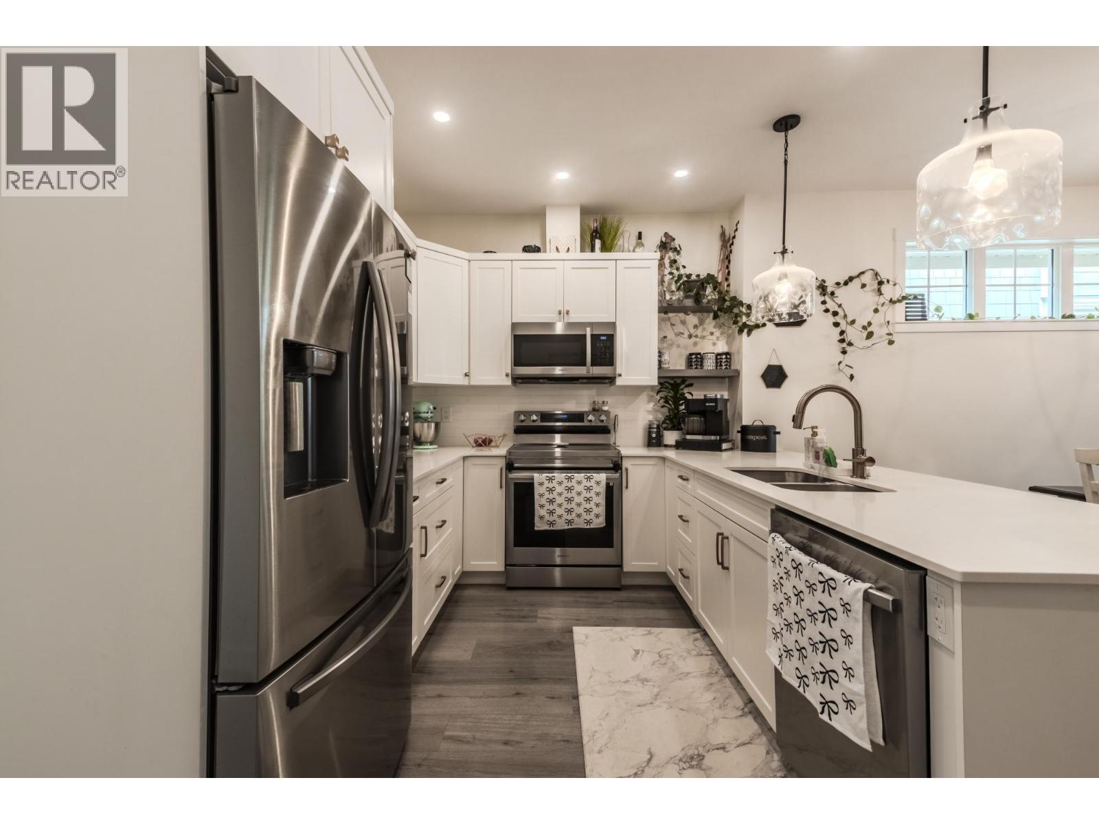 $245 MonthlyLooking for a move-in-ready home that feels brand new, without paying GST? This stunning rancher has it all! Home warranty, yard maintenance included, and access to an incredible amenity building. Nestled in Orchards Walk, a vibrant community, you’ll enjoy a clubhouse with a pool table, gym, miniature putting green, and a planned children’s water park. This energy-efficient home features 4 bedrooms and 3 bathrooms. The main level boasts 9’ ceilings, a custom kitchen with a 9.5-foot island and quartz countertops, and a spacious open-concept living area perfect for entertaining. The recently finished basement adds valuable extra living space, ideal for a family room, home office, or additional bedrooms. Every home is fully landscaped and fenced with irrigation. The low bareland strata cover water, sewer, garbage, and all yard maintenance. Just move in, relax, and enjoy! Contact the listing agent to schedule a viewing today! (id:44393)