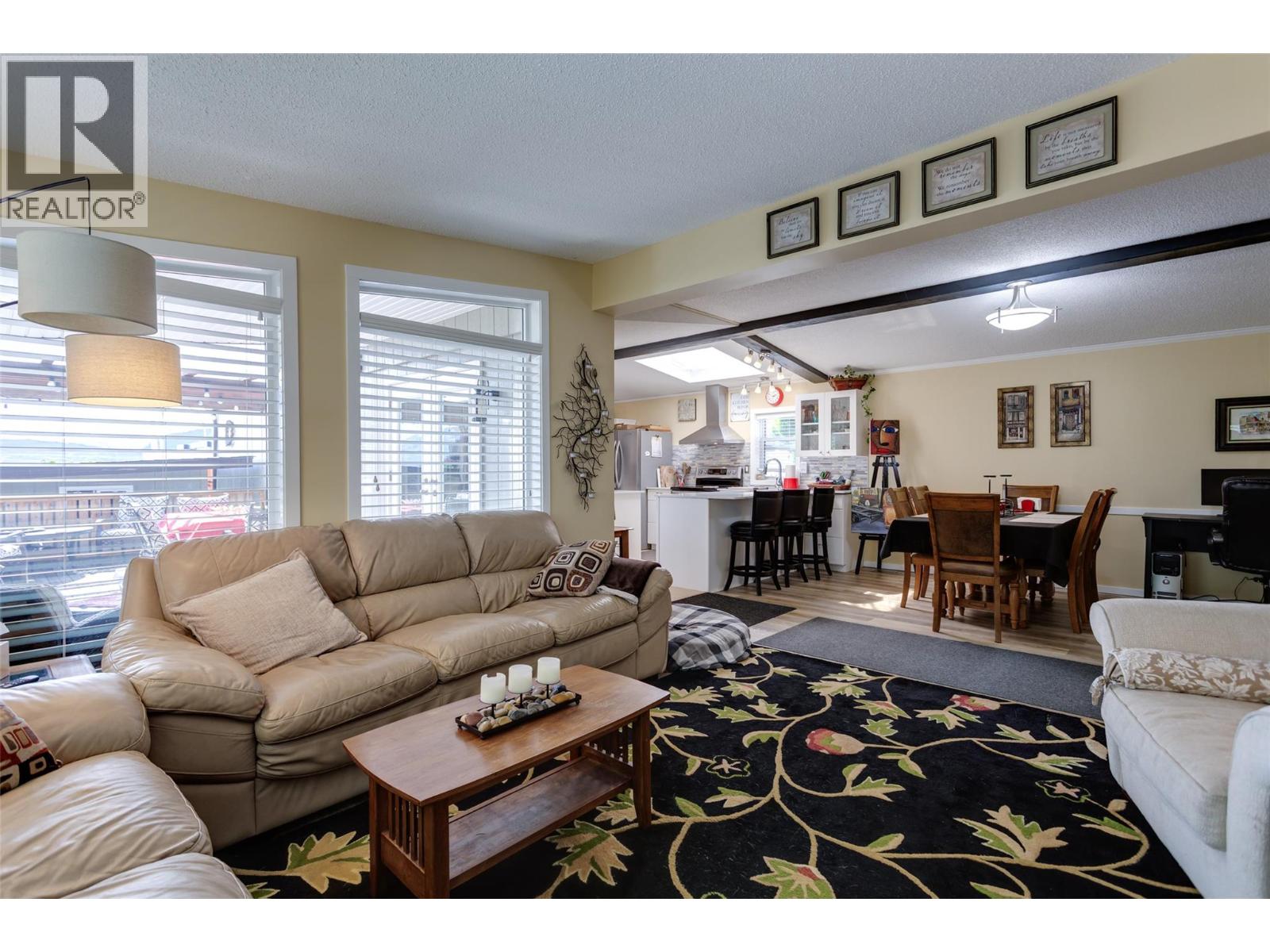 $610 MonthlyWelcome to this pristine and beautifully updated 2-bedroom, 2-bathroom home in Berkley Estates. Families Welcomed. Perfectly situated at the end of a quiet no-thru road, this home offers privacy with only one neighbor and stunning views of the mountains and a peek-a-boo lakeview from your oversized, partially covered south-facing deck—ideal for outdoor dining and relaxing. Inside, you'll find a thoughtful layout with bedrooms at opposite ends for added privacy. The spacious primary suite boasts a full ensuite bathroom with a luxurious jacuzzi tub. Enjoy the modern, fully updated kitchen featuring quartz countertops, a large island, stylish backsplash, newer cabinetry, stainless steel appliances, and ample pantry storage. The generously sized dining and living rooms are flooded with natural light and centered around a cozy gas fireplace—perfect for entertaining or quiet evenings in. Updates included: A/C & Hot Water Tank 2019, Roof & Windows 2015, Vinyl Flooring 2025, S/S Dishwasher & Microwave 2023, Tile & Freshly Painted 2023–2025, Poly-B Plumbing replaced 2025. Parking for 3 vehicles, Workshop: Included out back.Located just minutes from shopping, wineries, golf courses, and local services, Berkley Estates offers a vibrant and convenient lifestyle. 2 pets per household. Pad Rent is $610.00 per month (Includes water) Lease expires 2037. Don't miss this rare opportunity to own a move-in-ready home in a prime location with all the major updates already done! Measurements taken from I-Guide. (id:44393)