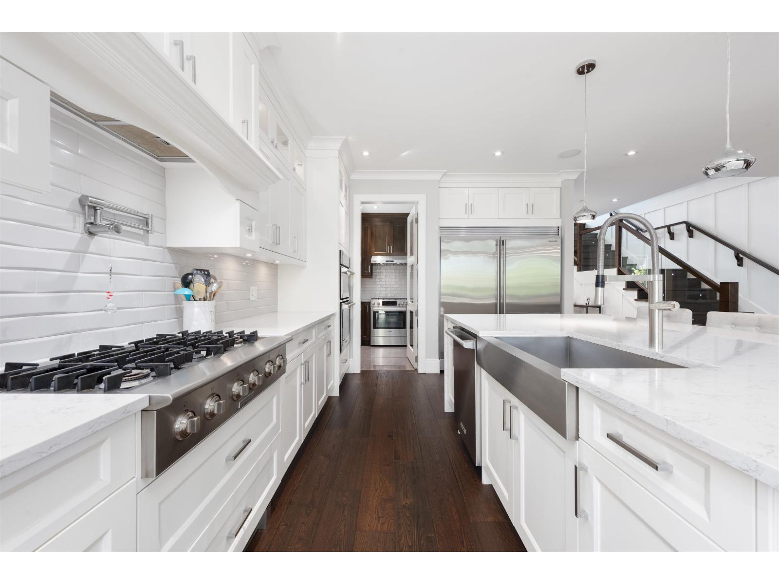 LUXURY LIVING meets MODERN ELEGANCE! This truly UNIQUE home sits on a HUGE & extremely PRIVATE 11,302 SqFt lot, offers nearly 4600 SqFt of living space, & a nearly 700 SqFt 3-CAR GARAGE. The main floor features a GREAT ROOM open concept, soaring 20' HIGH CEILINGS, a GAS FIREPLACE, & a chef's DREAM KITCHEN with a 6 burner GAS RANGE, double FRIDGE/FREEZER, an OVERSIZED ISLAND, a SPICE KITCHEN & a LEGAL 1-bed SUITE. Upstairs you will find 4 large bedrooms, including a HUGE primary with a GAS FIREPLACE, a SPA-LIKE ENSUITE, and MASSIVE WALK-IN CLOSET. The BACKYARD PATIO offers a GAS LINE, 220V wiring for a HOT TUB, 3-zone IRRIGATION system, and exceptional PRIVACY. HWT, furnace, and AC all replaced in 2024. Located a short drive from COSTCO, SUPERSTORE, WILLOWBROOK MALL, RESTAURANTS & more! (id:44393)