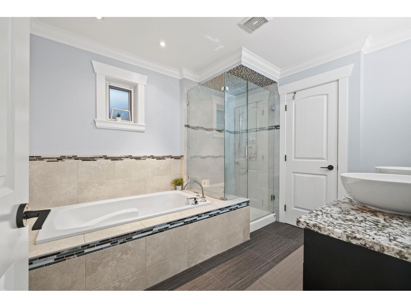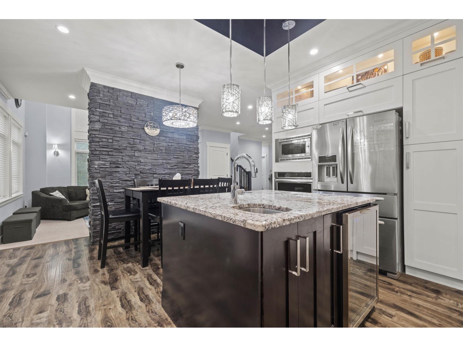 Custom-built 3-storey executive home in a prime central location, designed for comfortable luxury living. Upstairs offers 4 spacious bedrooms and 2 full baths, ideal for growing families. The main level impresses with an open-concept layout featuring a chef-inspired kitchen with granite countertops, two-tone cabinetry, oversized island, premium stainless appliances, gas range, and apron-front sink. A dramatic sunken living room with soaring 18' ceilings and expansive windows creates a bright, elegant space for entertaining. A main-floor bedroom provides flexibility for guests, extended family, or a private office. The fully finished basement includes a large recreation room and a self-contained 1-bedroom suite with separate entry and laundry. Home also includes an EV Charger. (id:44393)