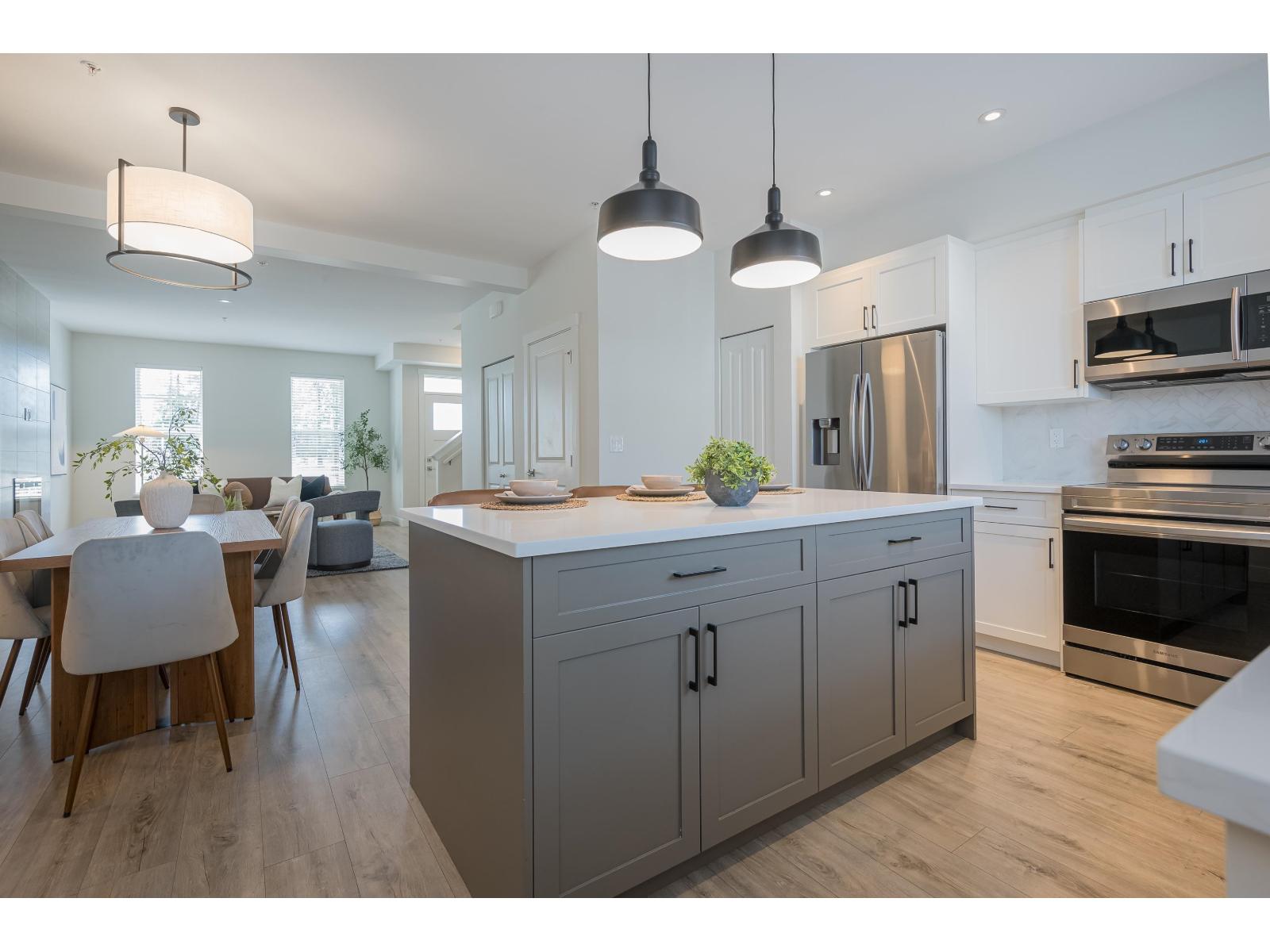 Built by Vesta Properties, this exceptional, south facing, non-strata row home stands out in Latimer Heights. Offering over 2,650 sqft with a rare full 2-level + basement & loft layout, a standout floorplan rarely found in the area. Freshly painted, move-in ready and still under warranty. A/C & basement wet bar roughed-in. The 489 sqft sun-filled loft is a stunning open-concept retreat with park views. Bright, elegant main living, plus a finished basement with rec room, bedroom and full bath. Private fenced yard, garage and extra parking. Steps to Latimer Village, top schools, parks and Hwy 1. Perfect for families or professionals needing flexible space, with a premium park-front setting. Rare combination of size, layout and location in one of Willoughby's most sought-after communities. (id:44393)