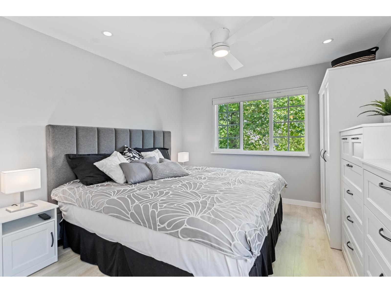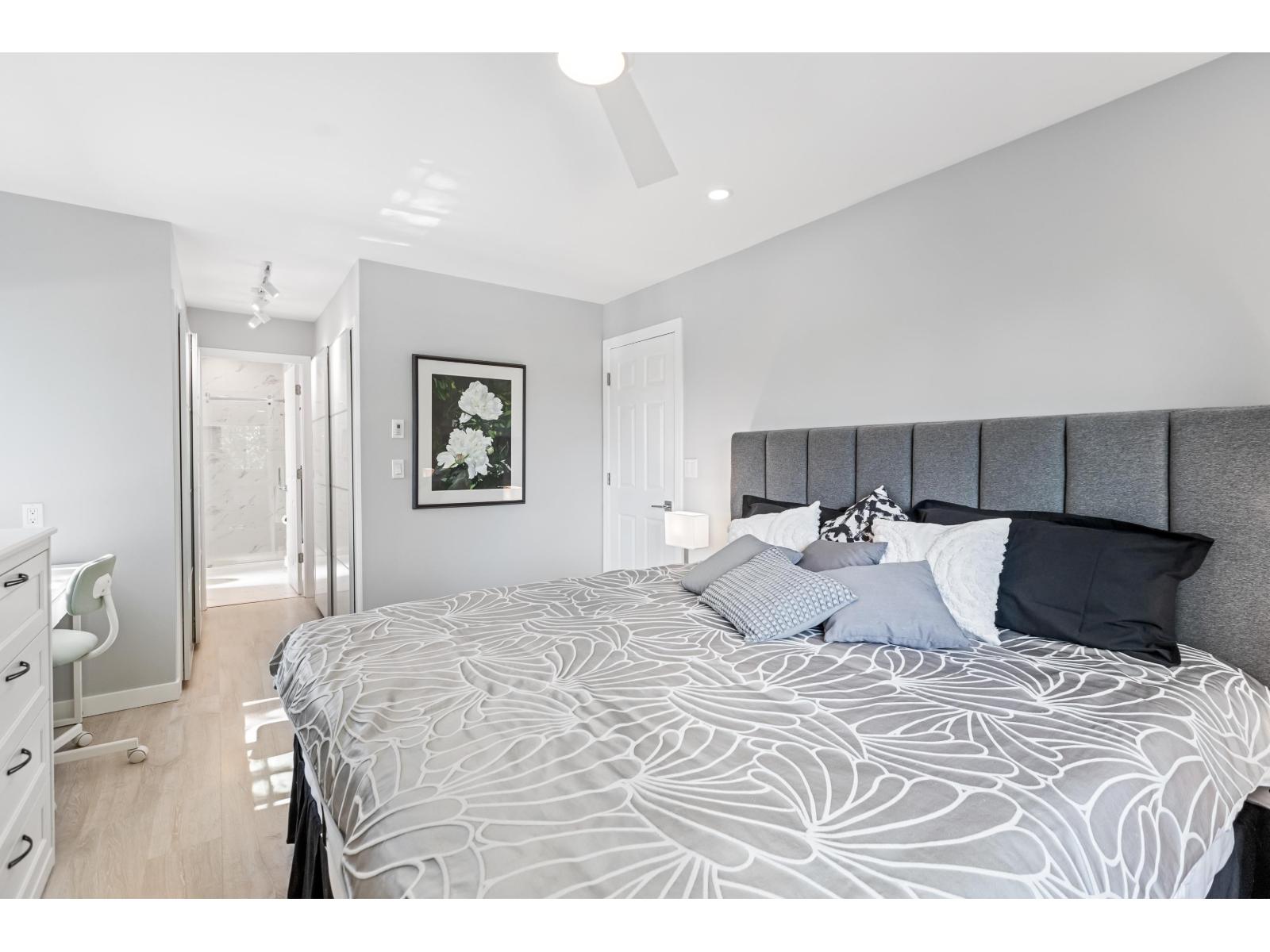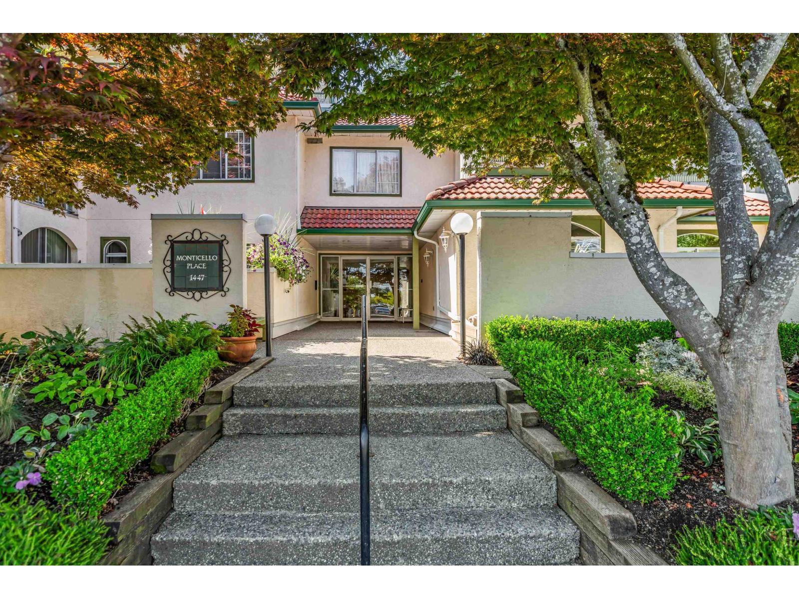 $535.87 MonthlyBRILLIANTLY designed GORGEOUS second level corner unit at Monticello, a highly in-demand Mediterranean-style 55+ community w/ tiled roof, scenic verandah & lush landscaping. This lovely, modern, completely renovated open plan, 2 bed, 2 bath home offers privacy w/ separated bedrooms & beautiful laminate flooring. Enjoy a stunning view of Mt. Baker from the LARGE primary bedroom. Sip coffee on the common area rooftop patio. SS appliances, wall oven, new dishwasher & full sized pantry. Heated bathroom floors. Side-by-side laundry w/ plenty of storage. Immaculately kept! Sparkling BRAND NEW WINDOWS w/ fantastic cross ventilation. Covered balcony w/ new deck cover. New torch on roof (2021). 1 storage, 1 parking. 1 cat. A must see! Ready for the new owners to come home TODAY! (id:44393)