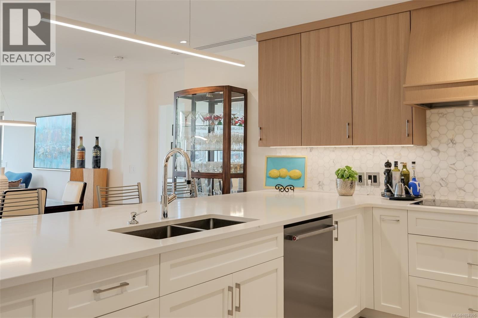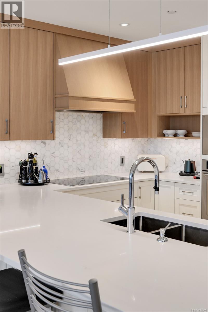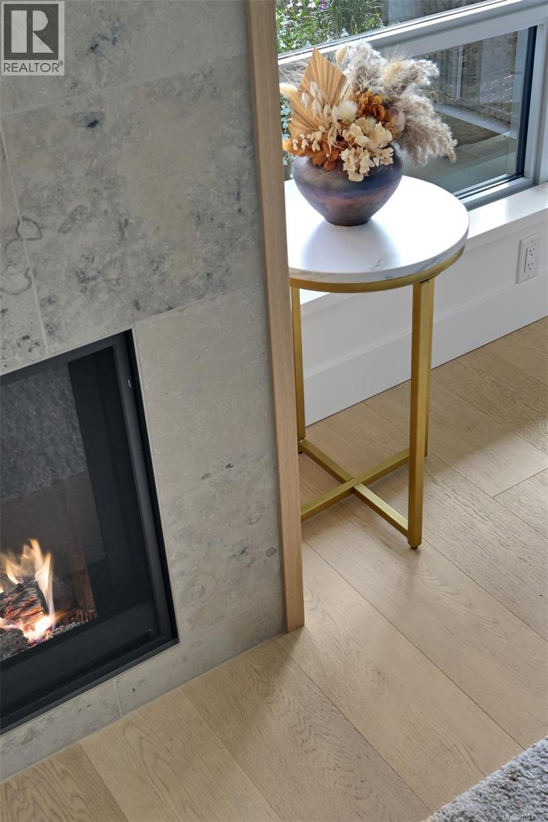 $895.91 MonthlyLuxury living at Sayward Hill in this over 1,800 sq ft 2 bed + den + media room home with beautiful ocean views. Thoughtfully designed with 8'9'' ceilings, engineered hardwood, custom millwork, and large windows with roller shades. The chef’s kitchen features stone counters, premium KitchenAid appliances, and a 36” rangetop. Spa-inspired ensuite with soaker tub, rain shower, heated floors, and dual vanities. Enjoy year-round comfort with a gas fireplace and efficient heating/cooling. Entertainment-sized balcony with gas, water, and power. Includes deluxe laundry room, walk-in closet, two secure parking stalls, dedicated EV charger, and a storage locker. Building amenities: bike storage, fitness centre, fully outfitted workshop, and elegant lobby. Steps to Cordova Bay Golf, Mattick Farm, Lochside Trail, and the ocean. (id:44393)
