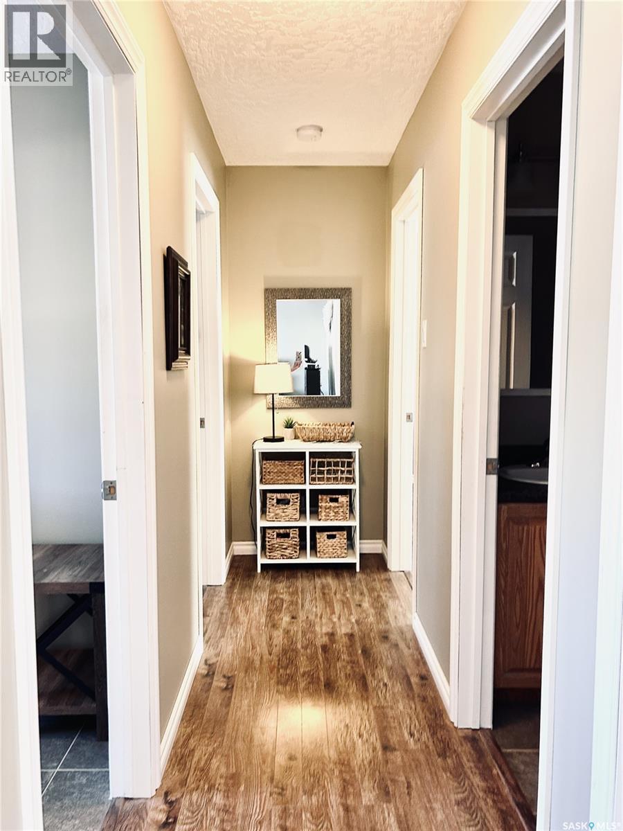 Welcome to this beautiful, meticulously kept 1,200 sq. ft. bungalow offering 4 bedrooms and 2.5 bathrooms in an unbeatable location. Just steps from the elementary school, within walking distance to downtown amenities, and only three blocks from the recreation centre, this home is ideal for families and active lifestyles. The open-concept kitchen, dining, and living area features vaulted ceilings, creating a bright and spacious atmosphere perfect for everyday living and entertaining. Outside, enjoy a mature, fully fenced yard complete with a cozy firepit area for outdoor gatherings. A 26' x 28' heated garage provides ample space for vehicles, storage, and projects. This exceptional property offers comfort, convenience, and pride of ownership throughout. (id:44393)