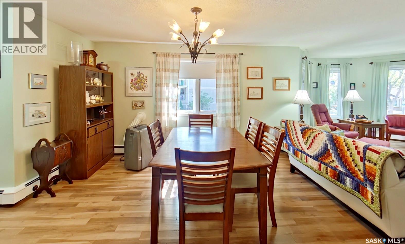 $516.18 MonthlyForm 917 in effect, all offers to be reviewed September 12th at 4pm. Come on in to this exceptional corner suite, offering heated underground parking, in-suite laundry, wheelchair accessibility, and a whole lot of square footage, all in a prime downtown location! Measuring in at nearly 1,300 square feet, this two bedroom, two bathroom flat is located on the southwest corner of the building and is flooded with natural light thanks to an abundance of large windows. The spacious layout provides roomy bedrooms, featuring a walk-in closet and half bathroom in the master suite. The open concept living and dining area is perfect for hosting dinners and gatherings with loved ones. Upgrades include flooring throughout most the home, drinking water filtration, kitchen countertops and newer dishwasher. All appliances are included as well as one portable AC unit. The common area of the building is equipped with an elevator (that arrives right across from the unit’s entrance) and offers a private storage room for each unit and a huge recreation room that includes a shuffleboard table, kitchenette, pool table, lounge area and ample space for arts and crafts and can be reserved by the residents for private functions at no cost. Water and heat are included in the condo fees. Seize this rare opportunity to enjoy the best of downtown living combined with the spacious comfort and warm community this home provides, all at an affordable price. Call for a private viewing. As per the Seller’s direction, all offers will be presented on 09/12/2025 4:00PM. (id:44393)