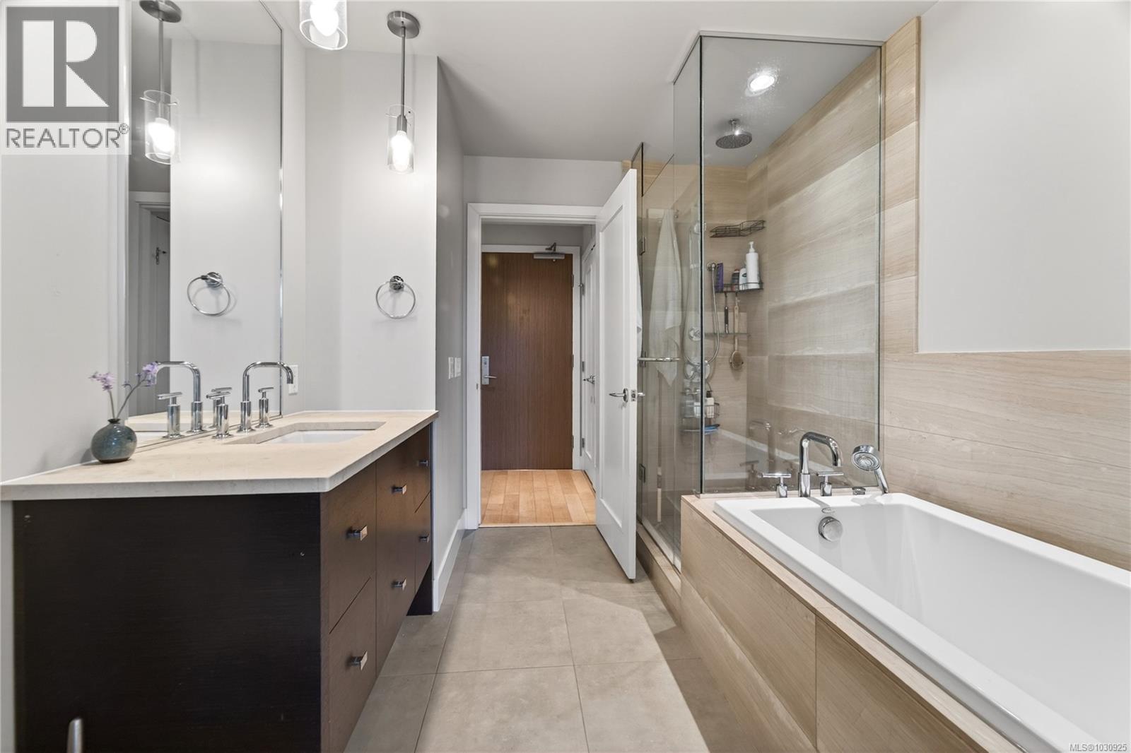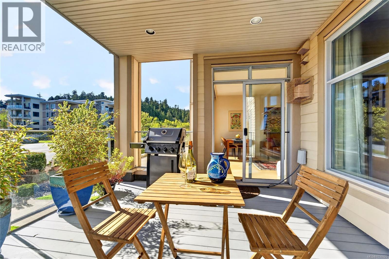 $463.01 Monthly*OPEN HOUSE: Sunday-04/19/2026 from 01:00 PM to 3:00 PM** OCEAN GLIMPSES, GEOTHERMAL & PET FRIENDLY. Embrace an effortless lifestyle in this executive residence steps from the ESQUIMALT LAGOON. This 1BD + DEN home features an OPEN-CONCEPT LAYOUT with 9FT CEILINGS, GAS FIREPLACE, and banks of LARGE WINDOWS. The GOURMET KITCHEN impresses with a LARGE ISLAND with WATERFALL GRANITE COUNTERS, a natural gas cooktop, and stainless appliances. Enjoy privacy with a SEPARATE DEN and a PRIMARY SUITE boasting a CUSTOM CLOSET ORGANIZER and CHEATER ENSUITE with SOAKER TUB and WALK-IN SHOWER. Relax on the 166 SQFT COVERED PATIO or explore the nearby BIRD SANCTUARY, beach food trucks, and ROYAL ROADS UNIVERSITY grounds. Amenities include GEOTHERMAL HEATING/COOLING, BIKE STORAGE, UNDERGROUND PARKING, STORAGE LOCKER, and EV CHARGING (STANDARD PLUG). PET FRIENDLY with no size restrictions (2 pets). BBQS ALLOWED. Near JUAN DE FUCA REC and ROYAL BAY. Your Westcoast lifestyle beckons! (id:44393)