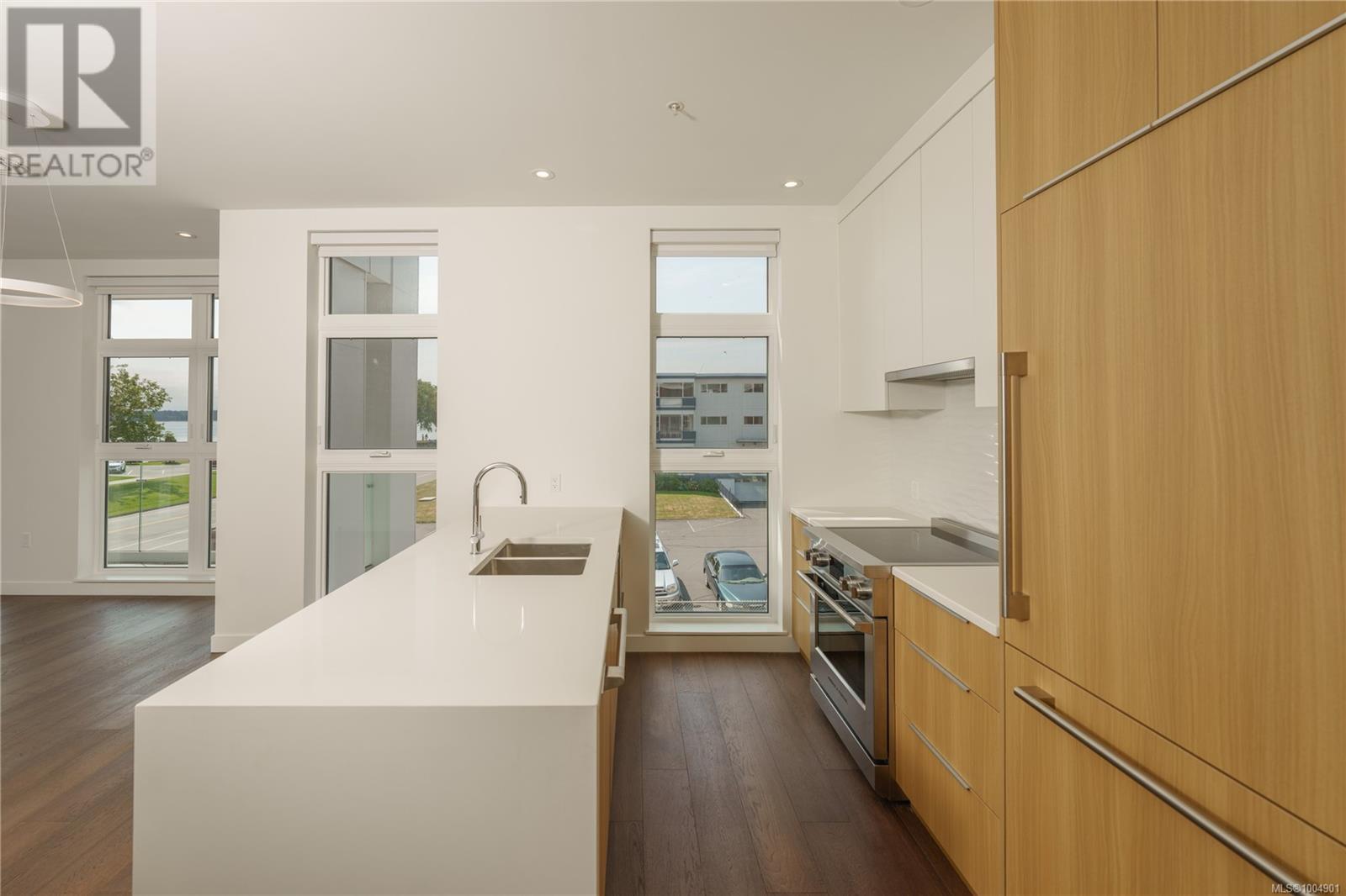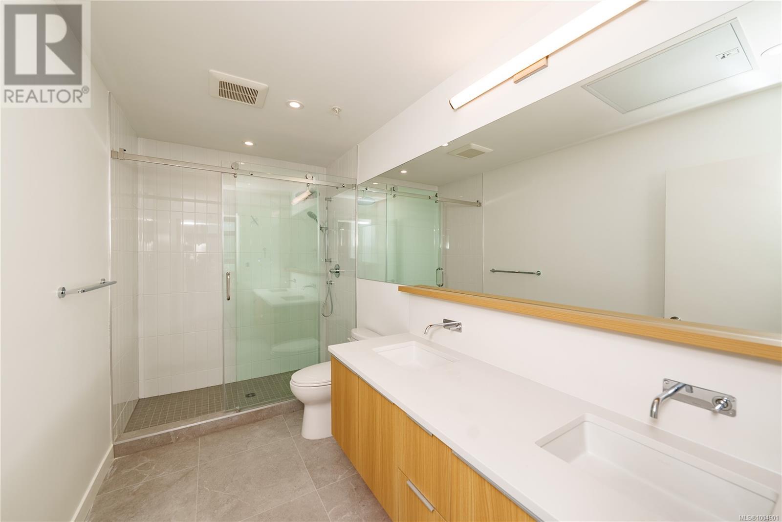 $351.11 MonthlyWelcome to Unit 204 at The Rise on Fifth, a stunning south-east-facing corner 2-bedroom home with beautiful ocean and mountain views. This thoughtfully designed residence offers an open-concept layout, allowing natural light to fill the space. The gourmet kitchen features quartz waterfall countertops and a built-in Fisher & Paykel appliance package, perfect for both everyday living and entertaining. Spa-inspired bathrooms include floating vanities, tiled walk-in showers, and a deep soaker tub. Additional amenities include energy-efficient heating and cooling, home automation, underground Klaus parking, storage lockers, bicycle storage, and a pet washing area. Relax on the rooftop patio with panoramic Haro Strait views or take a short stroll to the beach and Sidney’s vibrant downtown. Experience luxury and convenience in this exceptional home. (id:44393)