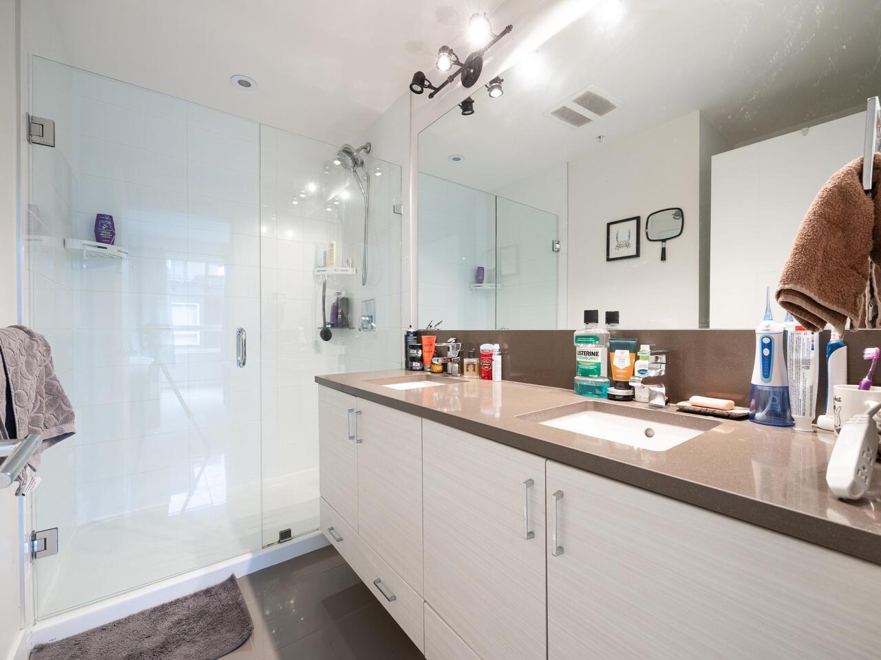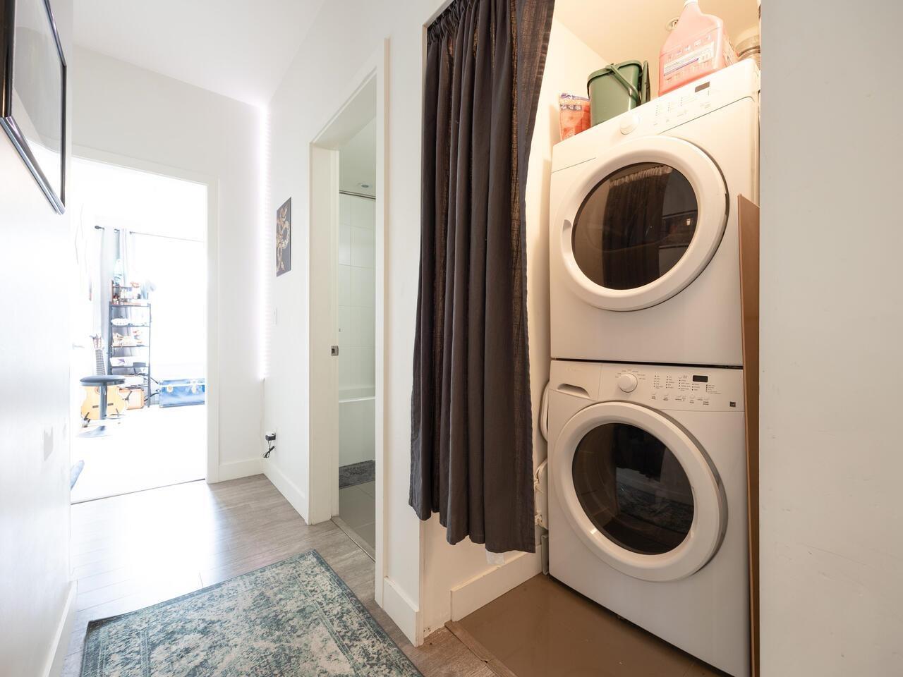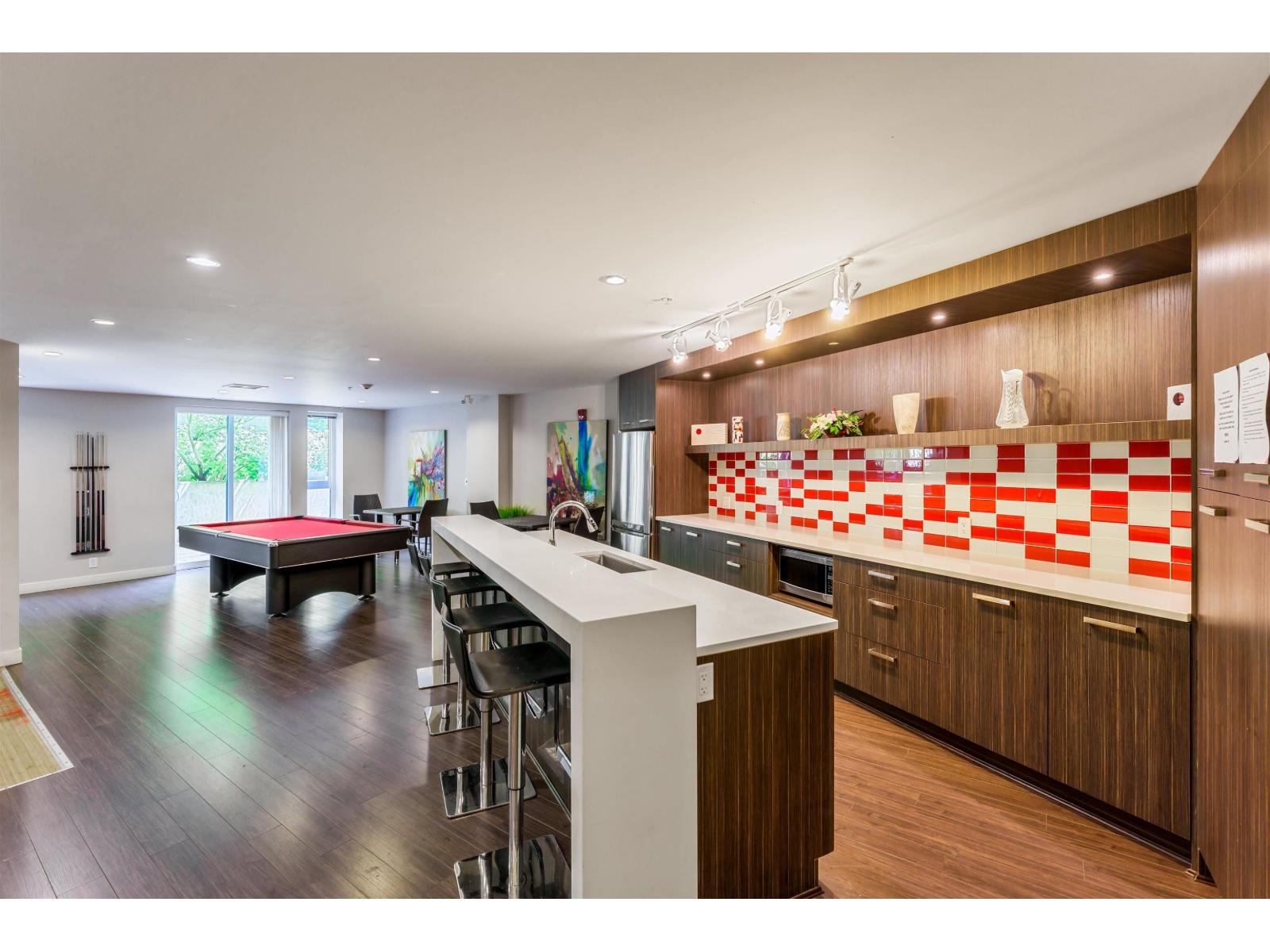 $516.71 MonthlyWelcome to Verve - a perfect blend of location and lifestyle! Just steps to King George SkyTrain, SFU Campus, Surrey Memorial Hospital, and Central City shopping, this 2 bed, 2 bath corner condo offers both convenience and comfort. Inside, enjoy a bright and spacious layout with upgraded vinyl flooring, a chef's kitchen with quartz countertops, stainless steel appliances, and a large breakfast bar. The primary bedroom features double sinks and an oversized shower, while second full bath and in-suite laundry add everyday ease. Relax on your quiet patio overlooking a treed setting, away from Fraser Hwy traffic. Building perks include a full gym, yoga room, social lounge, billiards, guest suite, storage, and tandem parking. (id:44393)