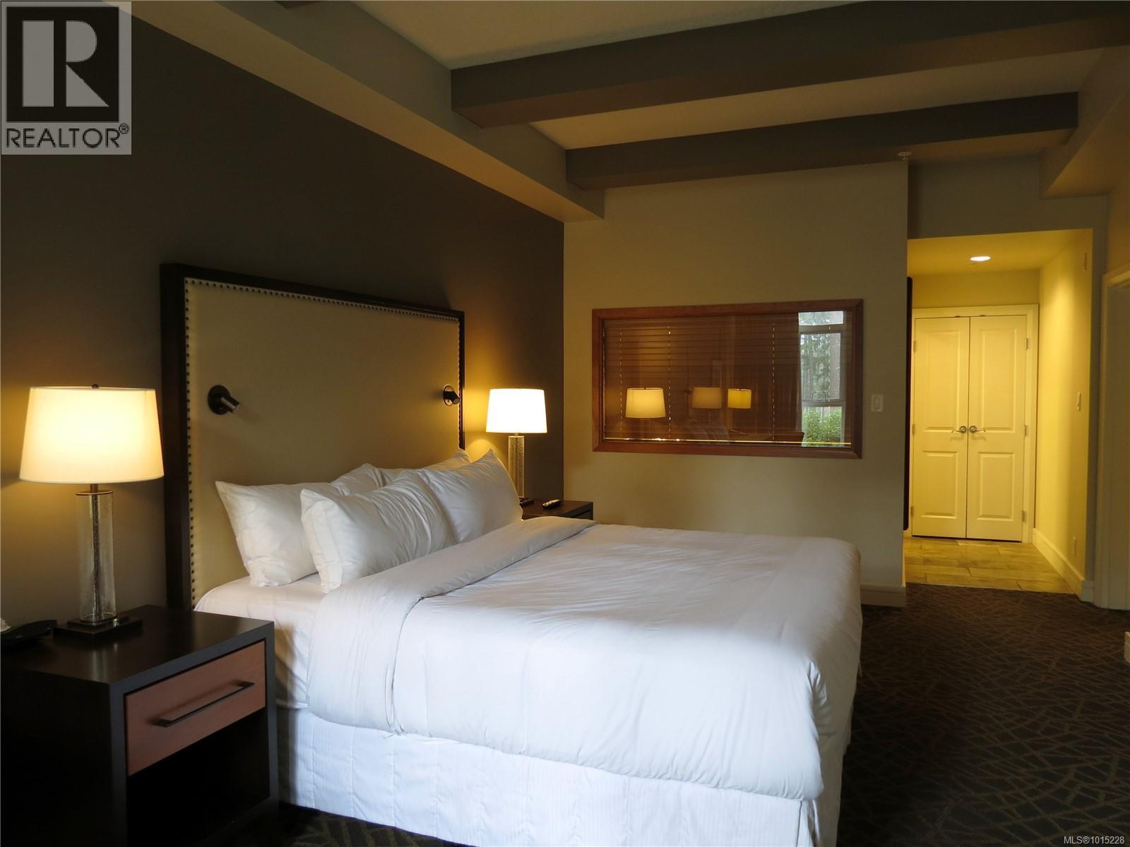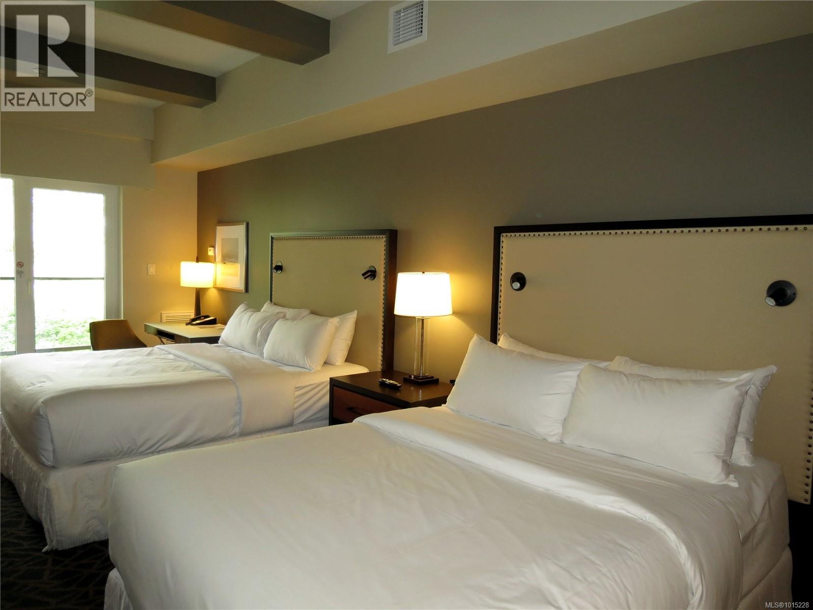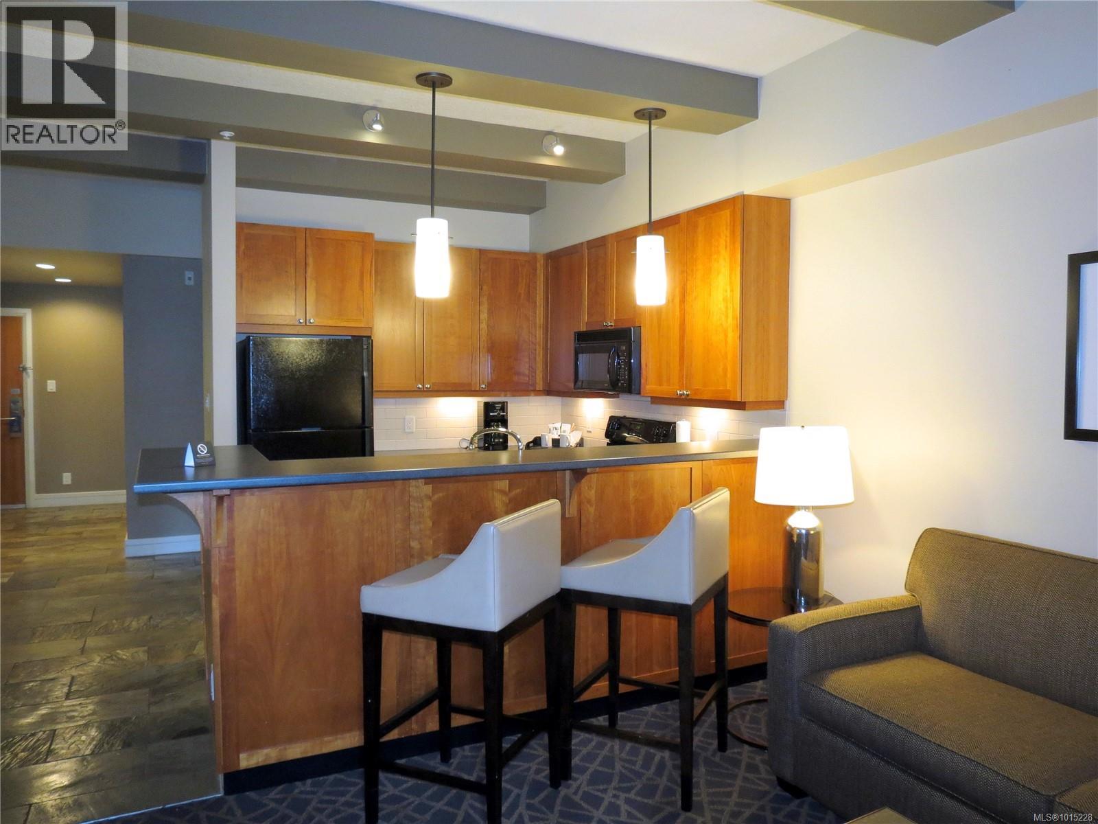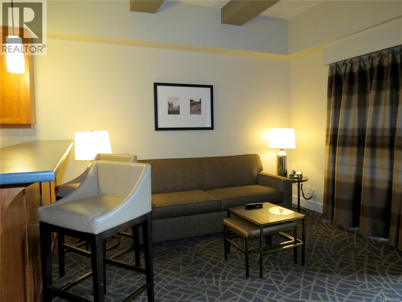 $210 MonthlyINVESTOR ALERT!! Turnkey ¼ share ownership opportunity in the premier Fairways Hotel located at the prestigious Bear Mountain Resort. Within walking distance of restaurant, spa, pool, gym, tennis, hiking trails and two world class Jack Nicklaus designed golf courses, it’s a great getaway for year-round enjoyment in a beautiful natural setting. Earn a revenue stream without being a landlord and stay up to 13 weeks a year in this professionally managed complex. It’s a great home base for day trips to discover Vancouver Island. This offering includes two adjoining suites; a one-bedroom king with full kitchen, two baths and private balcony PLUS a separate self-contained studio with two queen beds, a kitchenette, full bath and private balcony. You have the option to connect these suites which are located on the quiet side of the building overlooking the golf course. All suites are finished in a similar manner. Due to bookings, some photos shown are of a similar suite. This is a pet friendly hotel. (id:44393)