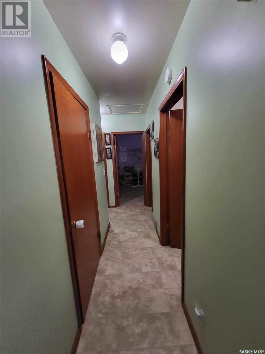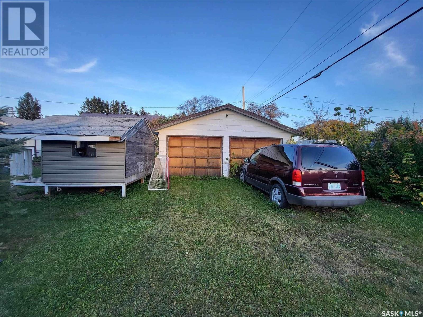 Welcome to 205 Oak Street in Porcupine Plain. Built on a very attractive corner lot, this 988 square foot house is a perfect starter or retirement type home. Two bedrooms and one bathroom upstairs. One bedroom and a 2 piece bathroom downstairs. Basement is partially finished. Walls are framed and ready for sheetrock. Very good concrete foundation. Attached to the house is a very large carport (26x38) and a large double detached garage (22x26) completes the property and gives lots of space for parking or storage. Call today to book a viewing! (id:44393)