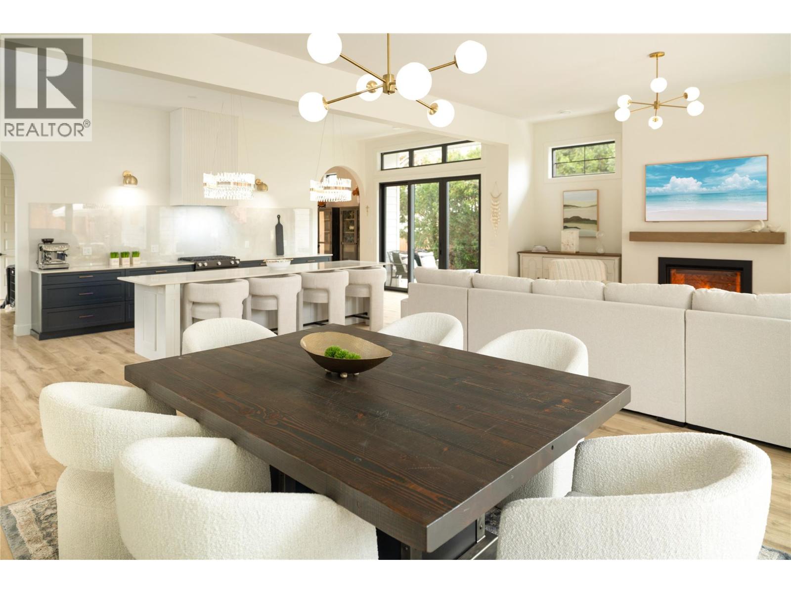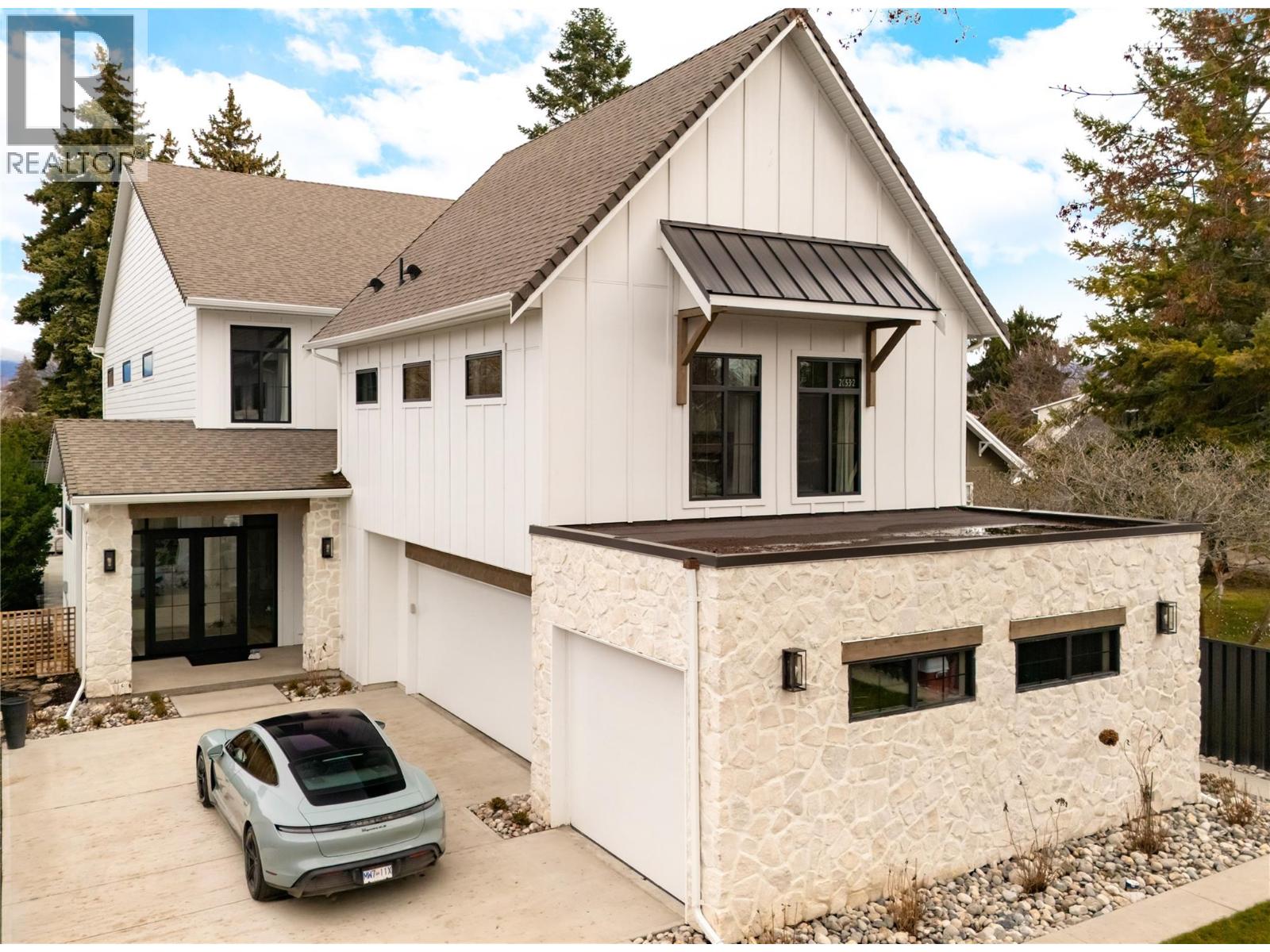A meticulously crafted, custom-built residence where timeless West Coast inspiration meets the relaxed elegance of the Okanagan—just steps from the beach and surrounded by mature greenery in one of the area’s most coveted walkable neighbourhoods. Influenced by classic Kitsilano architecture, the exterior blends natural stone and wood, creating enduring curb appeal. Inside, soaring 12-foot ceilings and luxurious wide-plank hardwood flooring establish a calm, architectural presence throughout. The main level unfolds into an impeccably designed open-concept living space, created for both everyday ease and elevated entertaining. A striking 11.5-foot island anchors the kitchen, complemented by premium appliances, Dekton countertops, and a generous walk-in pantry. Dining and living areas are thoughtfully centred around a custom fireplace, while softly rounded doorways and refined detailing add warmth and continuity. Glass doors extend the living space outdoors to a private backyard sanctuary featuring a heated, saltwater in-ground pool, expansive patio areas for gathering, and dedicated she shed and he shed spaces—ideal for work, wellness, or creative pursuits. Upstairs, a wide staircase with integrated lighting leads to a serene primary retreat designed for privacy and restoration. The ensuite is beautifully finished with quartz countertops, a sculptural soaker tub, dual vanities, a seamless glass shower, and heated flooring. Three additional bedrooms and two thoughtfully finished bathrooms complete the upper level. A fully self-contained, legal two-bedroom suite with private entrance, its own laundry, and a bright living space adds flexibility while maintaining separation and discretion. Just minutes from beaches, parks, shops, cafes, and the lake—this home offers a rare balance of refined living and daily convenience in one of the Okanagan’s most desirable settings. (id:44393)