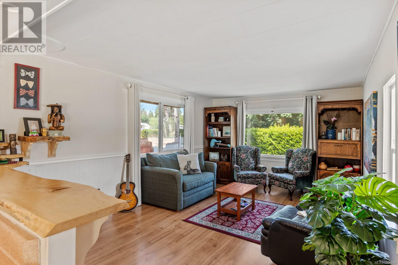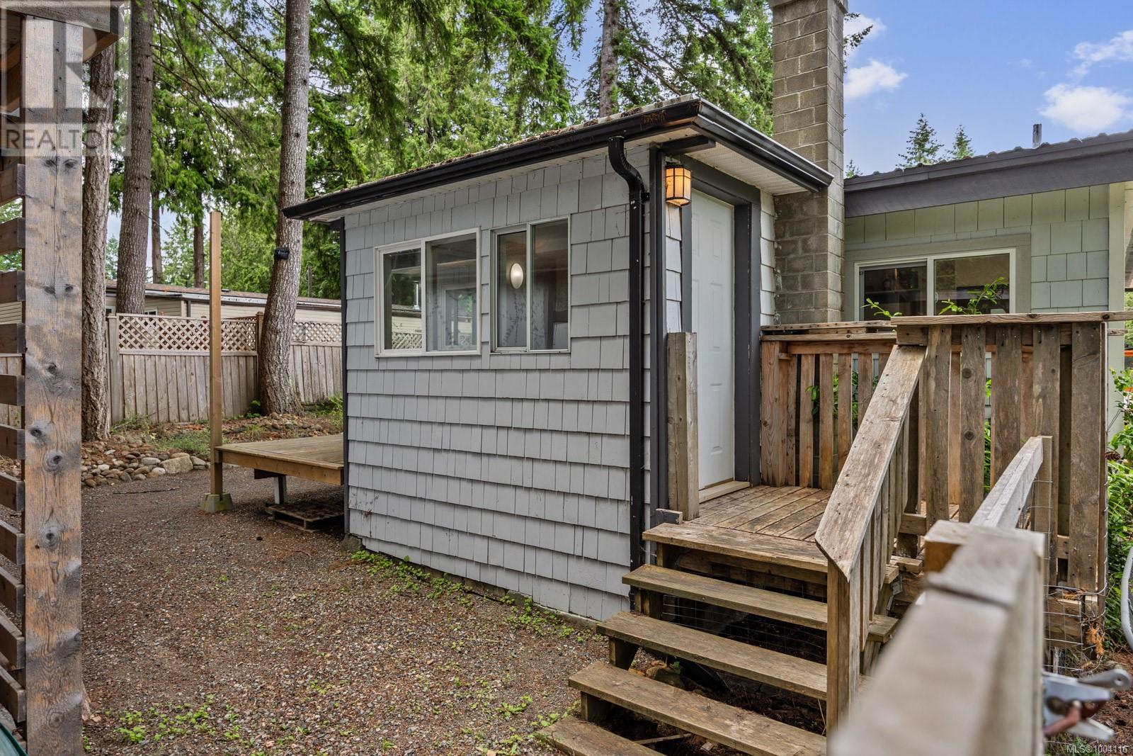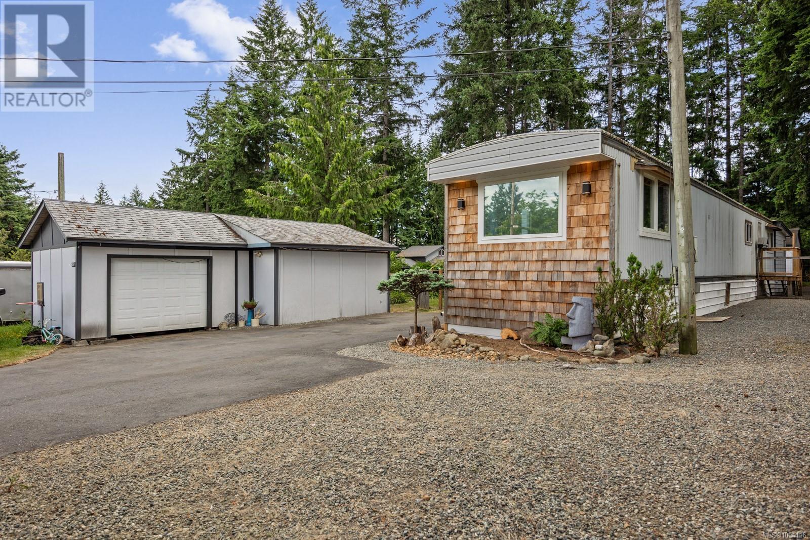 Tucked away on a spacious and private lot in the desirable Comox Peninsula, this beautifully maintained 3-bedroom, 2-bath manufactured home offers comfort, versatility, and room to breathe. Step inside to find a warm and inviting interior with a cozy wood stove, perfect for those crisp West Coast evenings. The open-concept living, dining and kitchen areas flow seamlessly to a large, sunny deck. The expansive backyard features a fire-pit and sitting area ideal for outdoor entertaining or quiet relaxation. This property boasts a 1 bed in-law suite for guests or extended family. Another impressive feature of the property is the detached shop and garage perfect for hobbies, storage, or additional workspace. Surrounded by nature and just minutes from Comox, beaches, and amenities, this home blends rural tranquility with convenient access. Many updates including new deck and most of the windows have been replaced. Don't miss your chance to own a slice of paradise in the Comox Peninsula (id:44393)