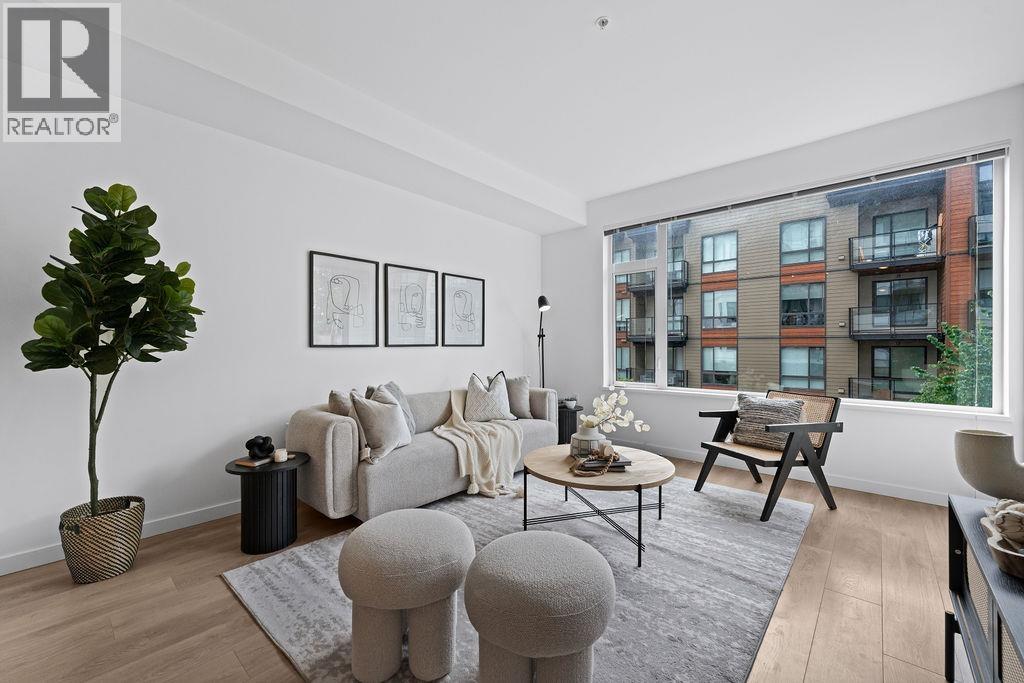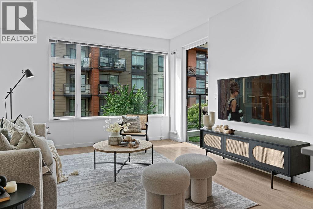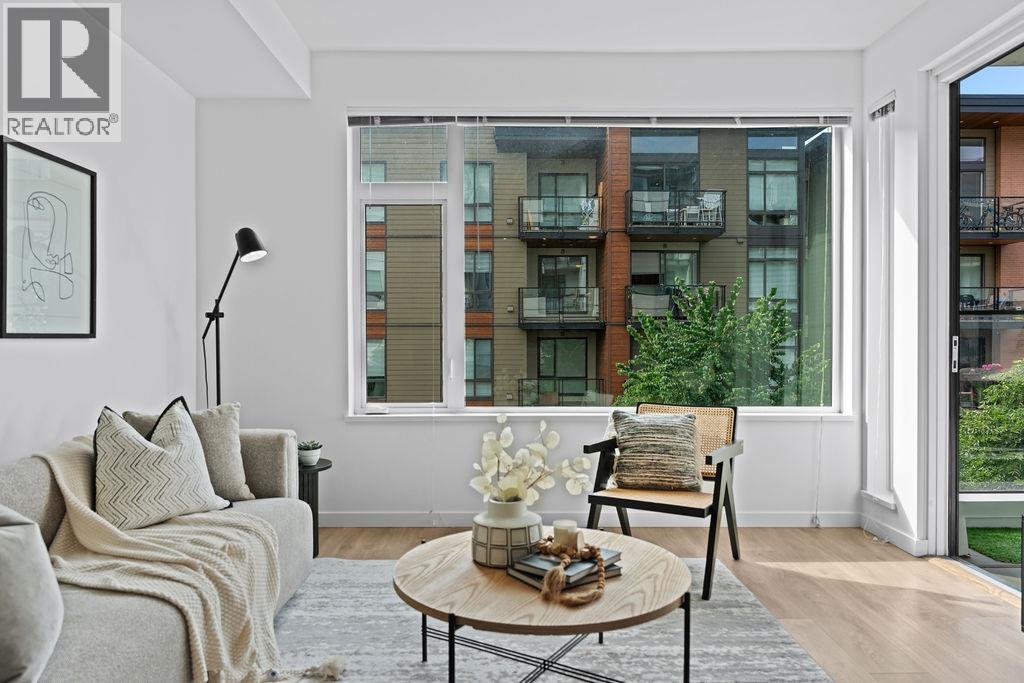 $517.67 MonthlyWelcome to Marine + Fell - a contemporary 2-bedroom, 2-bathroom condo with impressive nine-foot ceilings, perfectly positioned on the quiet, south-facing side of the building. Right outside your door, Mosquito Creek offers the perfect escape into nature, while shopping, restaurants, cafes, and breweries are just steps away for everyday convenience. Bright and well-designed, this home includes one parking stall, two storage lockers (one oversized), and comes with a rare bonus of two complimentary 1-year F45 memberships, located right beneath you! (id:44393)