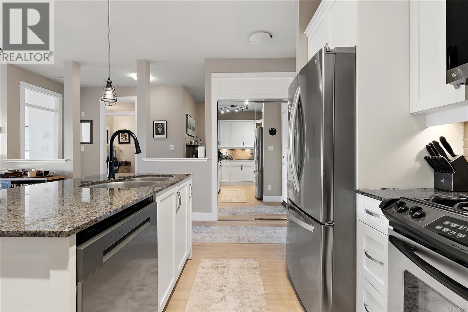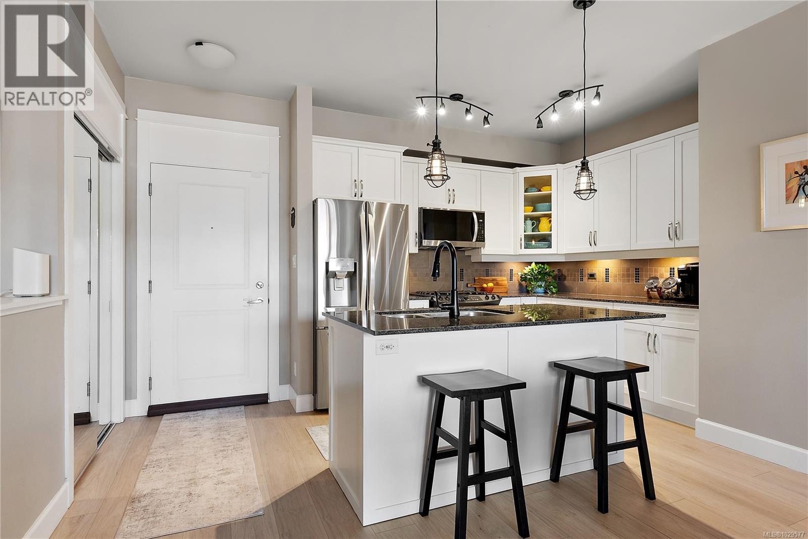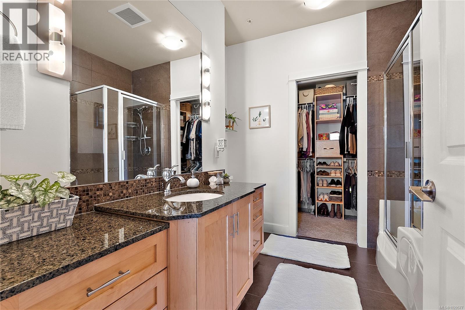 $512.06 MonthlyWelcome to Waterstone — a vibrant, community-focused development offering a modern, easygoing lifestyle. This elegant 2 bed, 2 bath + den condo features a thoughtfully designed living space with an ideal floor plan and soaring 9’ ceilings, plus new waterproof Lifeproof laminate flooring throughout. The kitchen is well-appointed with granite countertops and a gas range, with matching granite carried into both bathrooms for a cohesive feel. The spacious primary suite offers a spa-inspired ensuite with a separate tub and shower and a walk-in closet. Additional features include a natural gas BBQ hookup. Enjoy sunny west-facing exposure with peek-a-boo views of Glen Lake and the Sooke foothills from your private balcony. Ideally located within walking distance to amenities and transit, with access to a pool and fitness facility. Book your viewing today! (id:44393)