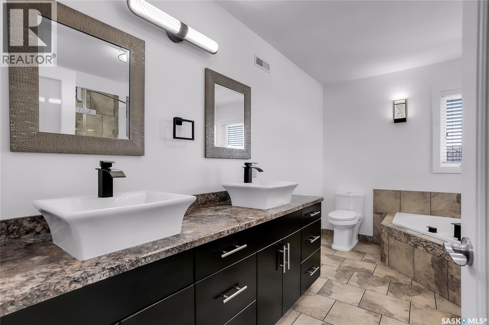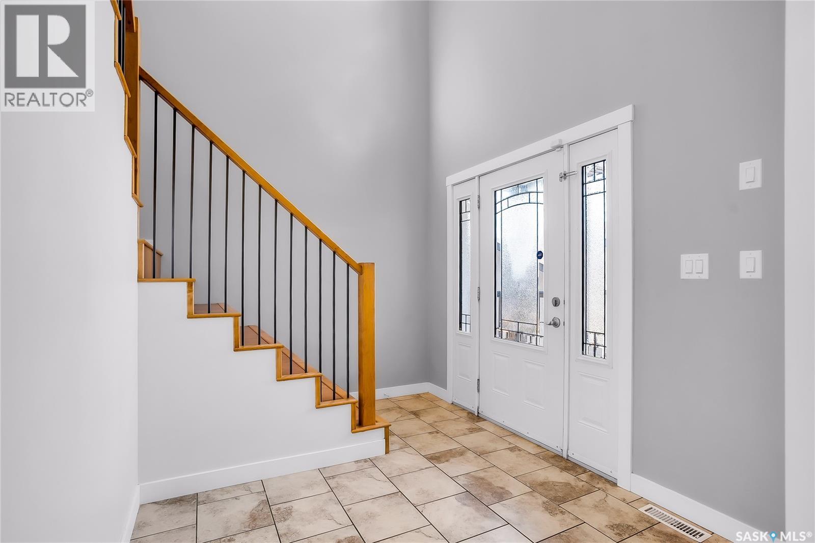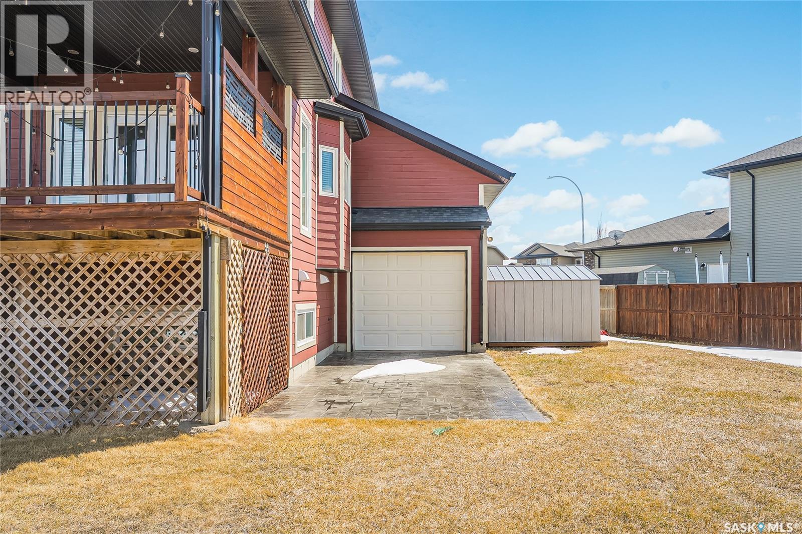 Some homes have a garage. 208 O’Meara Court has a statement piece with overhead doors. If you have cars, boats, toys, trailers, an RV, or just a deep emotional need to never fight for parking again, this Warman property is speaking your language. Sitting on a wedge-shaped lot in the sought-after Legends area, this home has a massive stamped concrete driveway with room for up to 8 vehicles, plus a triple attached garage with 14 foot ceilings. Dreaming about a lift or a golf sim? There is an 11x18 bump out with a drive thru door for even more added flexibility. Located in a fantastic cul-de-sac with great curb appeal, Hardie board siding and stone accents, this home has a timeless exterior and a layout designed for real life. Inside, the kitchen features dark stained maple cabinetry, stainless steel appliances and a custom island that will naturally become the gathering spot for friends, family. With 4 bedrooms and 4 bathrooms, there is plenty of room for everyone. The main floor includes convenient laundry, a handy powder room, a cozy natural gas fireplace for winter nights and A/C for those hot summer days. Out back, the finished yard is ready to enjoy with a gorgeous 12x28 covered deck and a round stamped concrete patio, perfect for an evening fire with friends and family. Upstairs offers 3 generous bedrooms, including two rooms connected by a Jack and Jill bathroom. The primary suite feels like a proper retreat with a walk-in closet and a luxurious 5 piece ensuite with dual sinks, a glass shower enclosure and a jetted corner soaker tub when you need a little me time. The basement adds even more flexibility with a secondary kitchen and side entrance, while also being pre-wired to convert back into the ultimate home theatre space. The basement ceiling and bedroom walls are insulated for noise reduction too. Big yard, big garage, big driveway, big possibilities. This one is built for people who need space and are not interested in apologizing for it. As per the Seller’s direction, all offers will be presented on 05/04/2026 3:00PM. (id:44393)