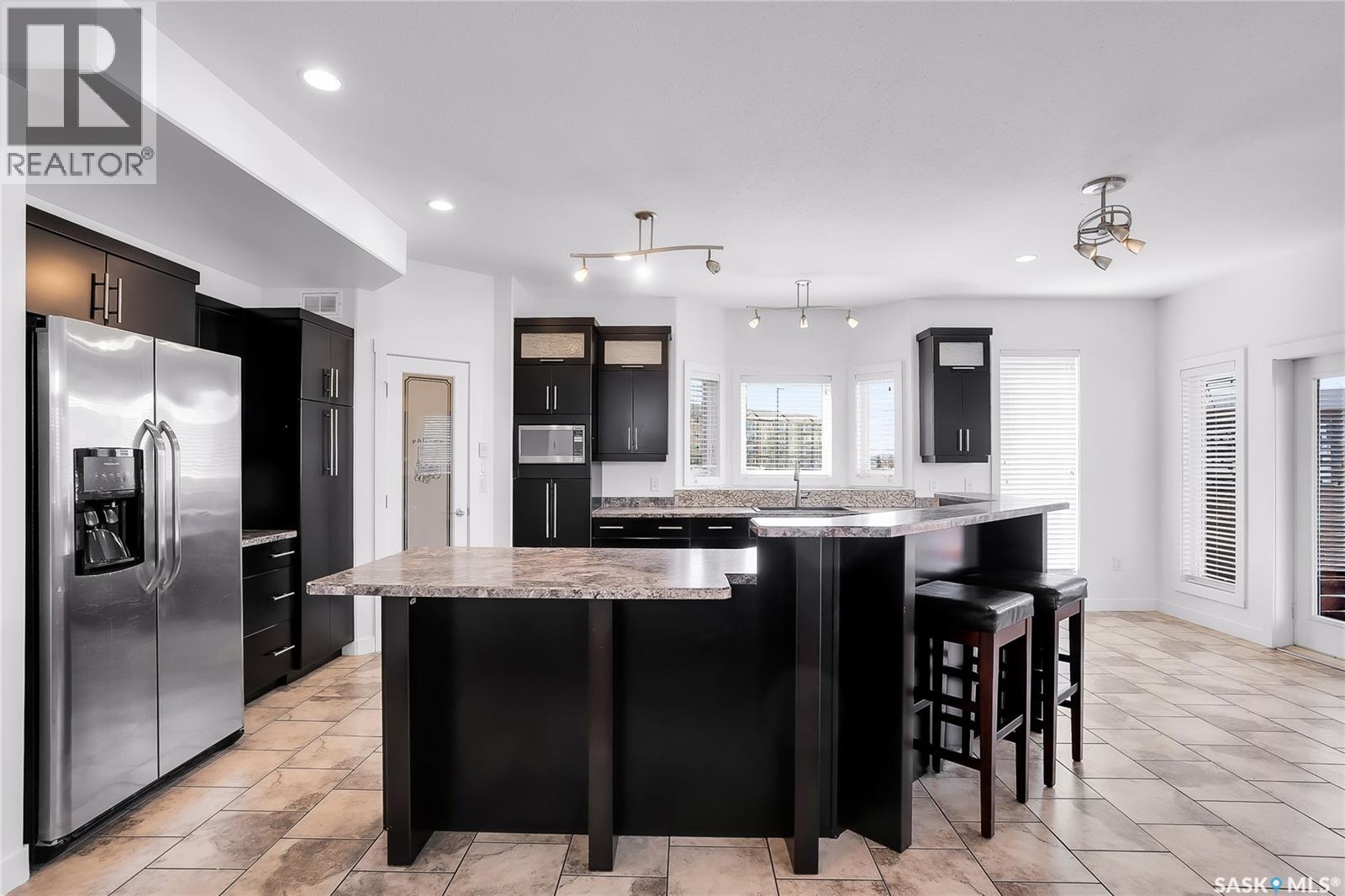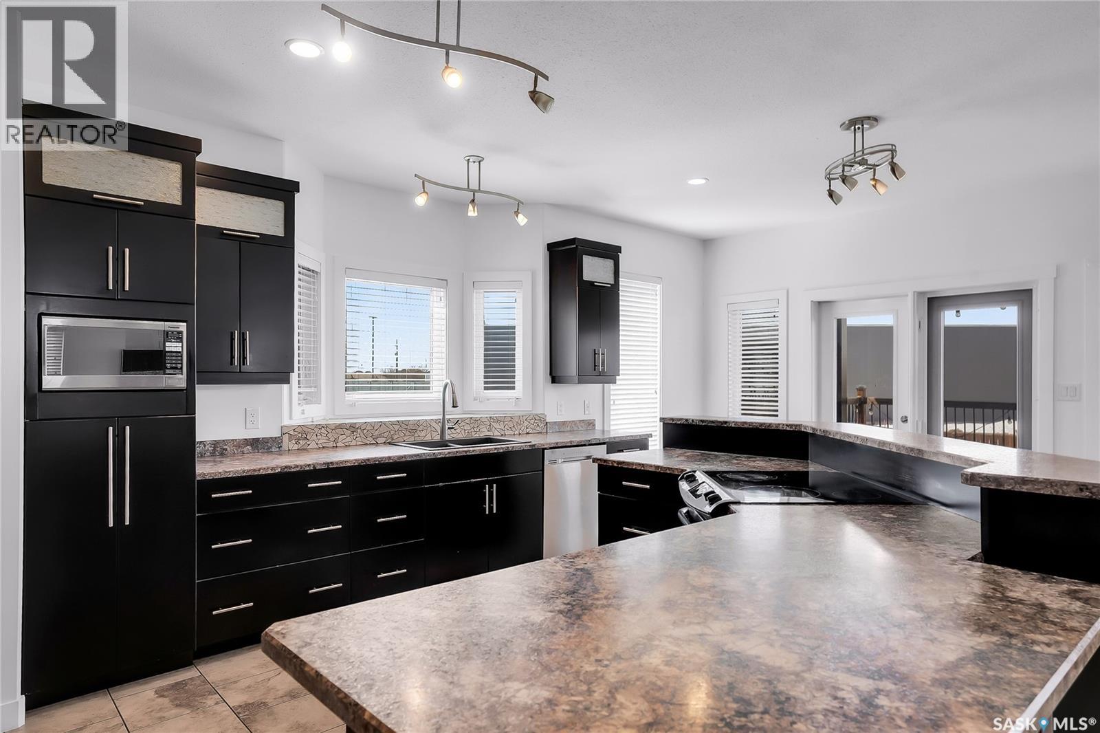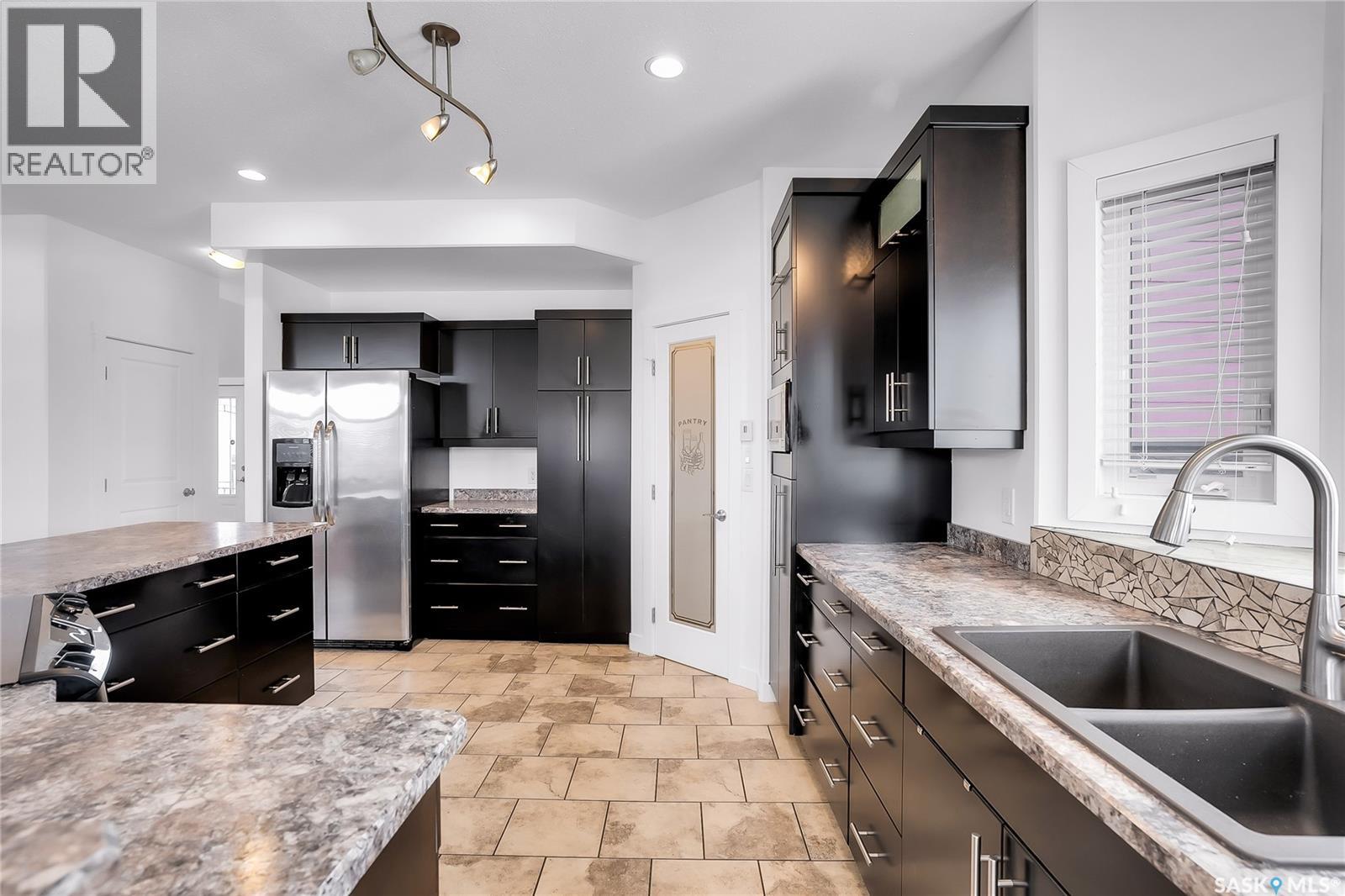 Some homes have a garage. 208 O’Meara Court has a statement piece with overhead doors. If you have cars, boats, toys, trailers, an RV, or just a deep emotional need to never fight for parking again, this Warman property is speaking your language. Sitting on a wedge-shaped lot in the sought-after Legends area, this home has a massive stamped concrete driveway with room for up to 8 vehicles, plus a triple attached garage with 14 foot ceilings. Dreaming about a lift or a golf sim? There is an 11x18 bump out with a drive thru door for even more added flexibility. Located in a fantastic cul-de-sac with great curb appeal, Hardie board siding and stone accents, this home has a timeless exterior and a layout designed for real life. Inside, the kitchen features dark stained maple cabinetry, stainless steel appliances and a custom island that will naturally become the gathering spot for friends, family. With 4 bedrooms and 4 bathrooms, there is plenty of room for everyone. The main floor includes convenient laundry, a handy powder room, a cozy natural gas fireplace for winter nights and A/C for those hot summer days. Out back, the finished yard is ready to enjoy with a gorgeous 12x28 covered deck and a round stamped concrete patio, perfect for an evening fire with friends and family. Upstairs offers 3 generous bedrooms, including two rooms connected by a Jack and Jill bathroom. The primary suite feels like a proper retreat with a walk-in closet and a luxurious 5 piece ensuite with dual sinks, a glass shower enclosure and a jetted corner soaker tub when you need a little me time. The basement adds even more flexibility with a secondary kitchen and side entrance, while also being pre-wired to convert back into the ultimate home theatre space. The basement ceiling and bedroom walls are insulated for noise reduction too. Big yard, big garage, big driveway, big possibilities. This one is built for people who need space and are not interested in apologizing for it. As per the Seller’s direction, all offers will be presented on 05/04/2026 3:00PM. (id:44393)