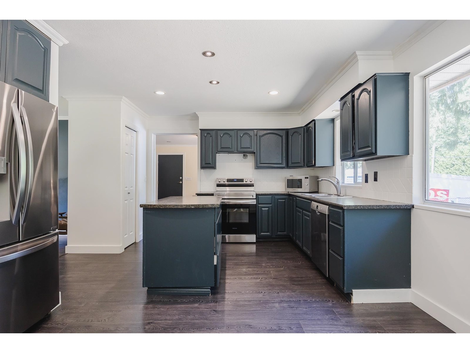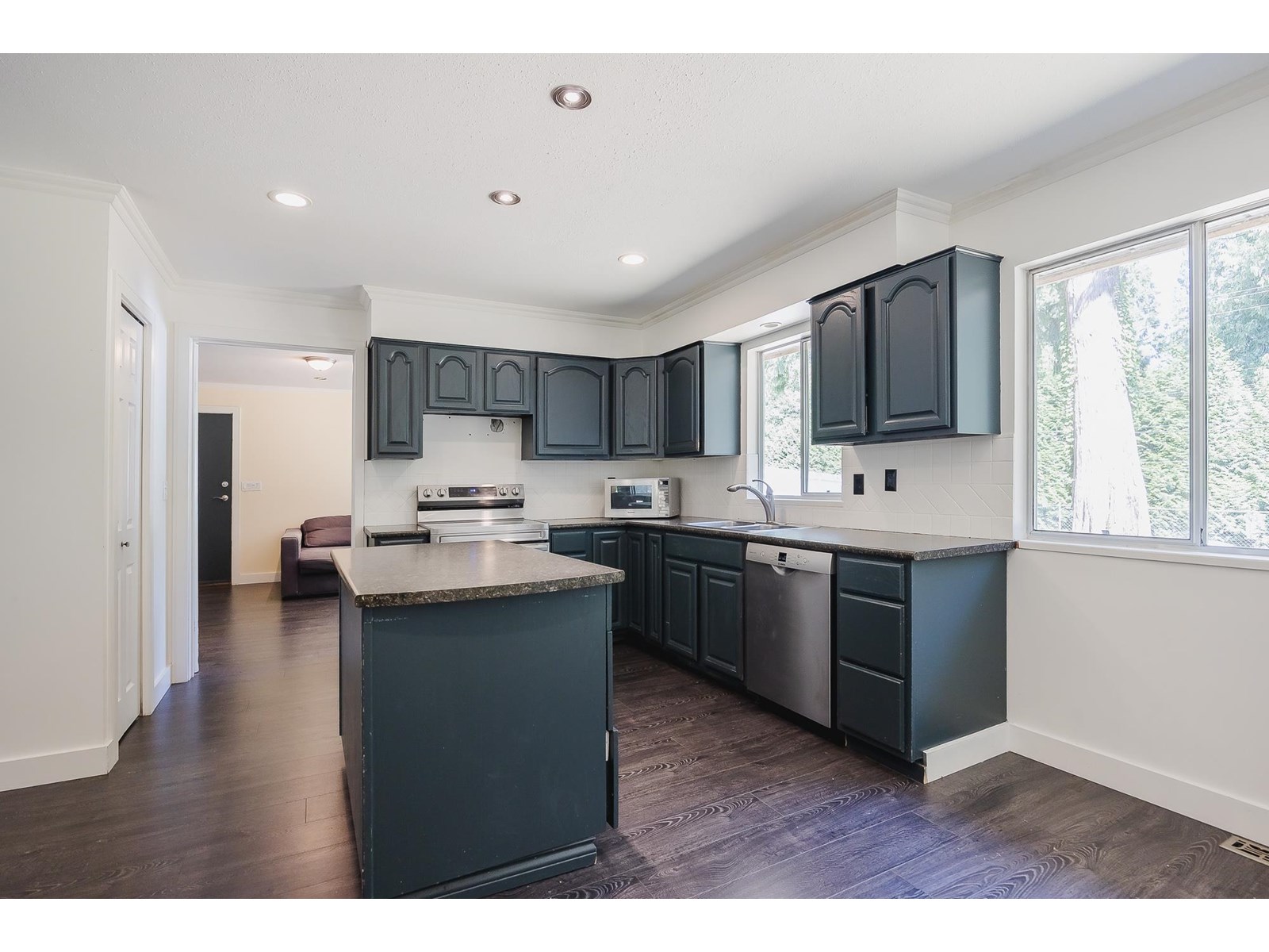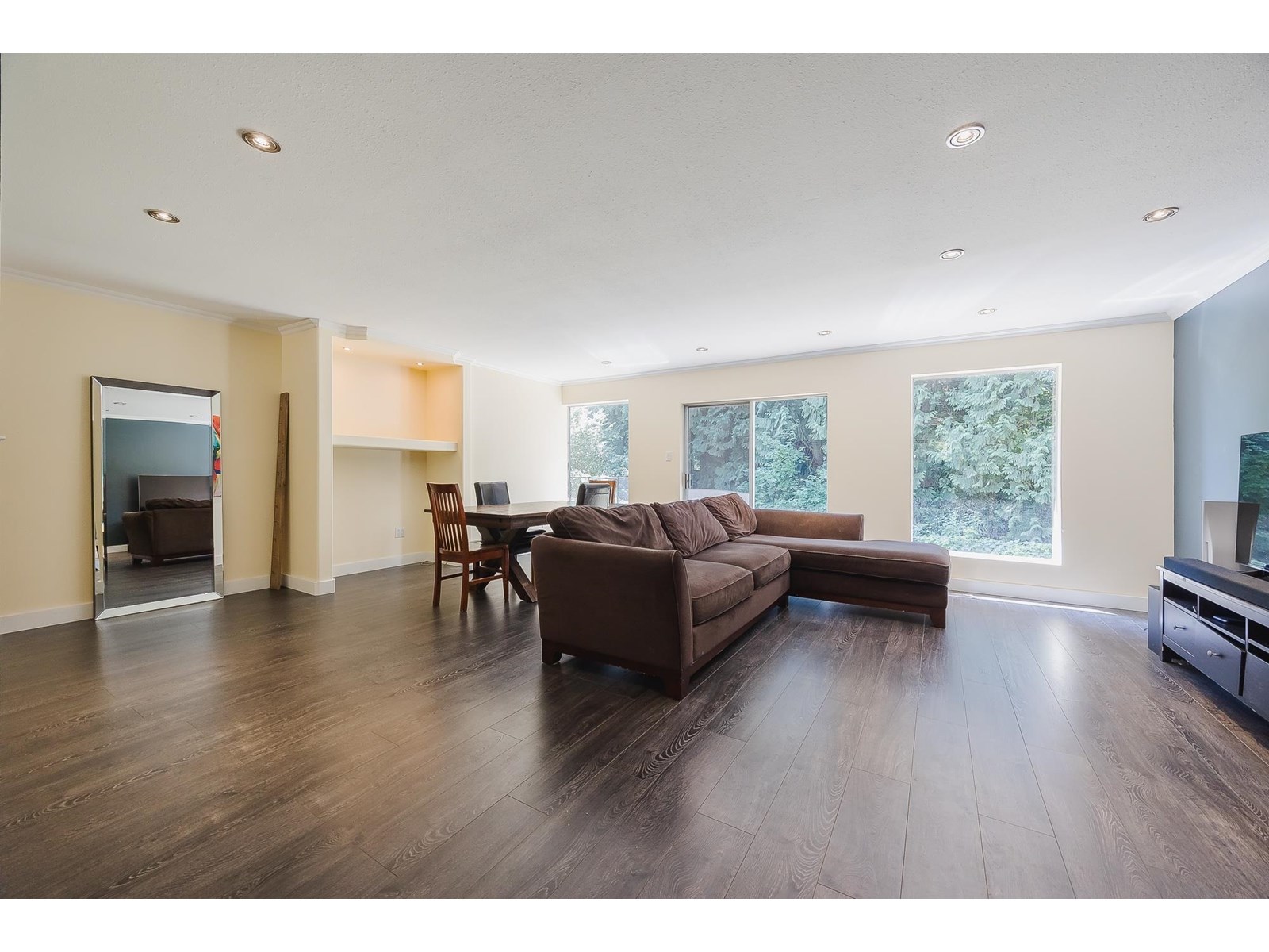 BEGINNER OR INVESTMENT PROPERTY. Situated adjacent to a lush greenbelt, this spacious 1,500+ sq.ft. rancher on 7858ft lot features durable laminate flooring throughout. Floor-to-ceiling windows offer stunning views of the south-facing backyard, which is perfect for relaxation or entertaining. The home includes generous living and dining areas with a slider door leading to a large private back yard with space for a hot tub-and a patio ideal for summer gatherings. A separate family room provides extra space for a pool table or media center. The property offers a double garage plus plenty of parking, including space for an RV. Ideal location for a home-based business. Conveniently situated near schools,shopping,recreation centers,golf courses,transit,Park & Ride, and the Golden Ears Bridge. (id:44393)