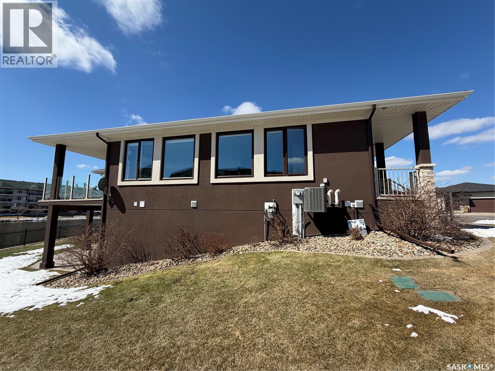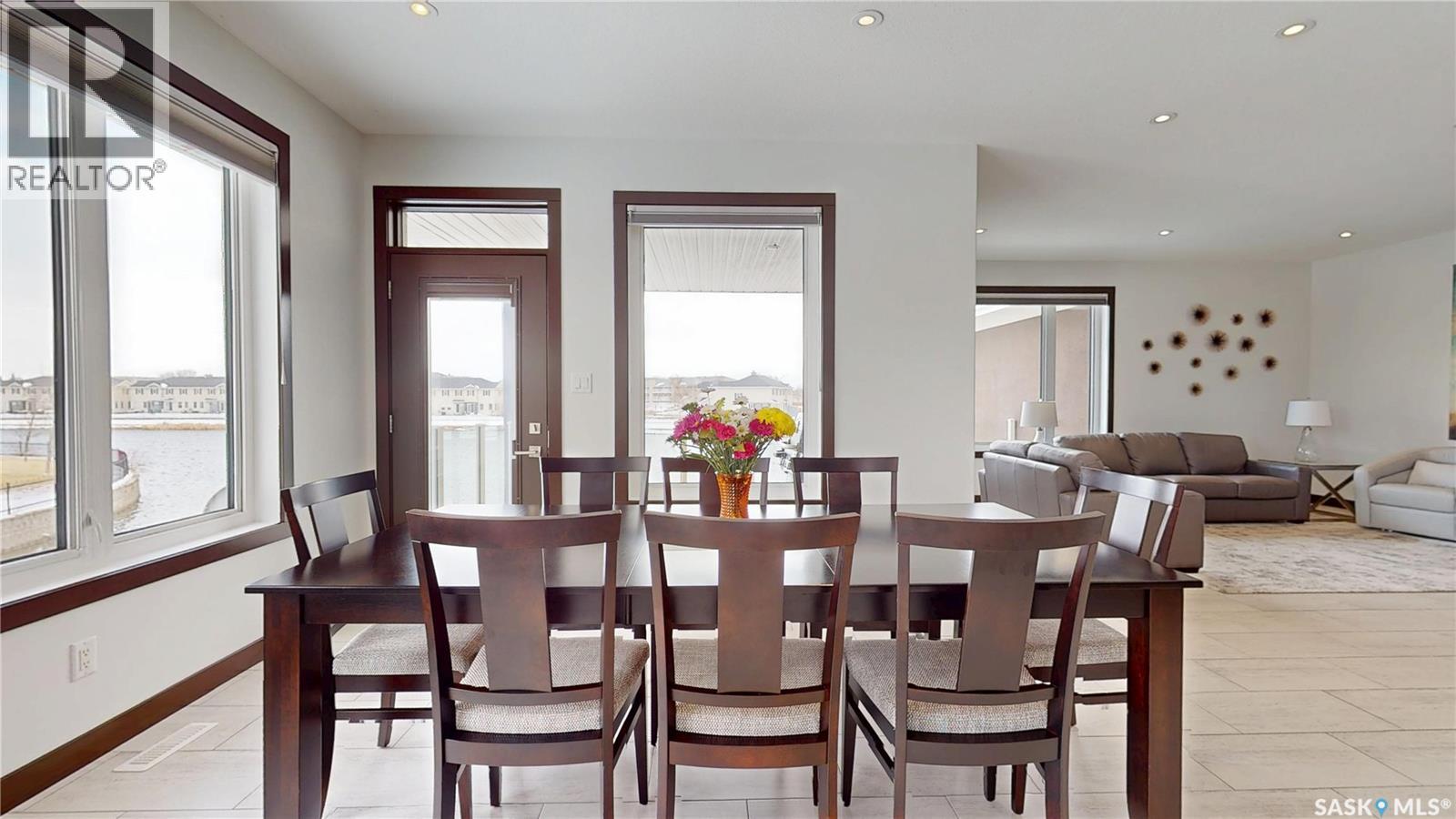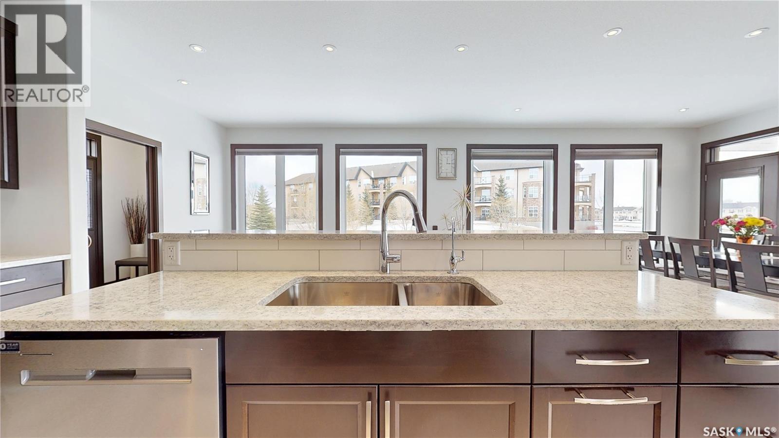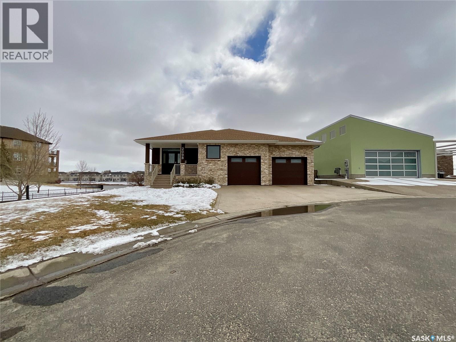 $108 Monthly** Please visit 2098riverbendview.ca for full listing experience ** Welcome to this extraordinary custom-built walkout bungalow — where luxury lakeside living meets the convenience of the city, nestled in the heart of Riverbend in Regina. Offering approx. 3,200 sq. ft. of finished living space, this like-new home features 4 bedrooms, 3 bathrooms, and an impressive 135 feet of south-facing lakefront with stunning views. Start your mornings with coffee on the deck as the sun rises over the water, with ducks and geese creating a peaceful, ever-changing backdrop. Spend summer afternoons kayaking or paddleboarding steps from your backyard, and unwind in the evenings as the light fades across the lake — all while being minutes from east end amenities, schools, and shopping. This is true lake living without leaving the city. The main floor is beautifully appointed with 9 ft ceilings, timeless tile flooring, quartz countertops, and exceptional attention to detail throughout. The chef’s kitchen is both elegant and functional, complete with a butler’s pantry and dedicated coffee station. The spacious primary suite offers a luxurious ensuite with double sinks and premium finishes. Built to an exceptional standard, this home includes 68 piles, spray foam insulated basement walls, R60 attic insulation, and R27 walls for efficiency and peace of mind. 5-inch concrete in both the basement and garage, along with in-floor heat in the fully finished walkout basement and triple attached garage ensure year-round comfort. Car enthusiasts and hobbyists will love the triple car garage, featuring 8-foot overhead doors, a two-stage drain pit, hot and cold water outlets, and full PVC paneling. With ample height and space, there’s room to add a lift or create the ultimate golf simulator. Properties like this rarely come to market. Experience the lifestyle at 2098 Riverbend View. Original plans are available. (id:44393)