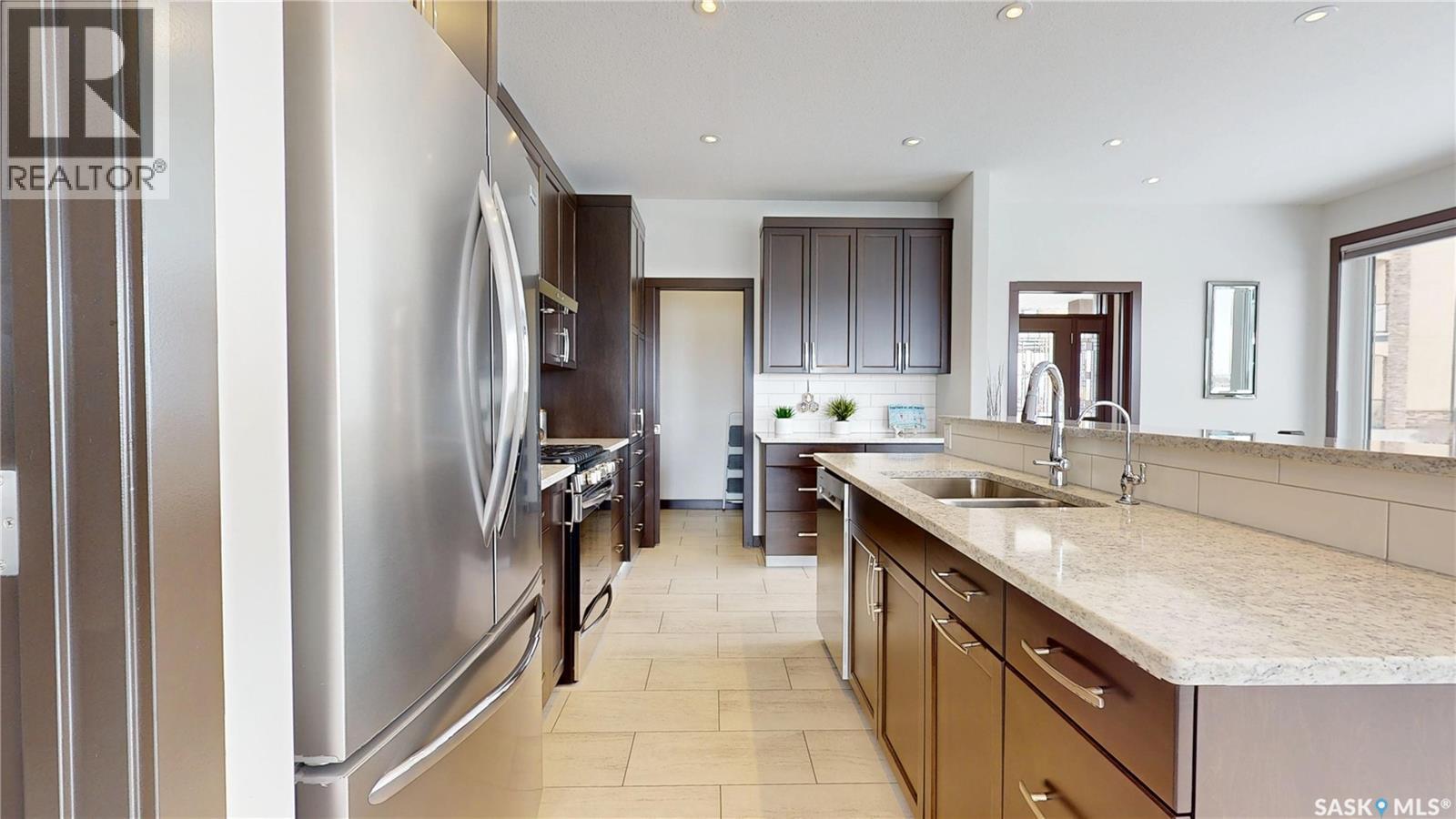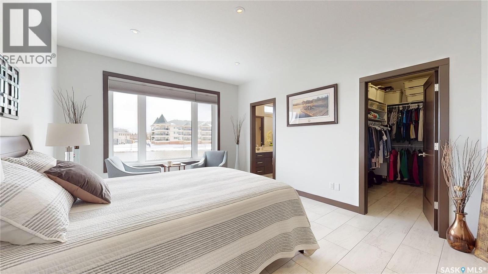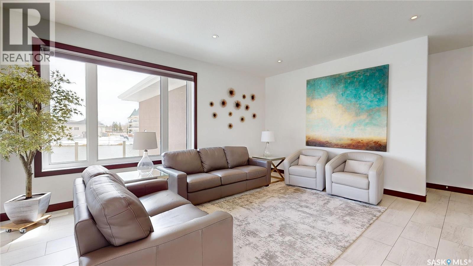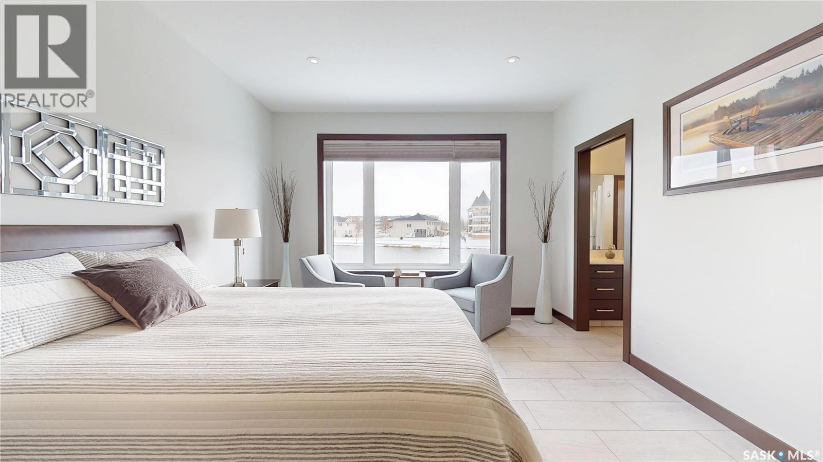 $108 Monthly** Please visit 2098riverbendview.ca for full listing experience ** Welcome to this extraordinary custom-built walkout bungalow — where luxury lakeside living meets the convenience of the city, nestled in the heart of Riverbend in Regina. Offering approx. 3,200 sq. ft. of finished living space, this like-new home features 4 bedrooms, 3 bathrooms, and an impressive 135 feet of south-facing lakefront with stunning views. Start your mornings with coffee on the deck as the sun rises over the water, with ducks and geese creating a peaceful, ever-changing backdrop. Spend summer afternoons kayaking or paddleboarding steps from your backyard, and unwind in the evenings as the light fades across the lake — all while being minutes from east end amenities, schools, and shopping. This is true lake living without leaving the city. The main floor is beautifully appointed with 9 ft ceilings, timeless tile flooring, quartz countertops, and exceptional attention to detail throughout. The chef’s kitchen is both elegant and functional, complete with a butler’s pantry and dedicated coffee station. The spacious primary suite offers a luxurious ensuite with double sinks and premium finishes. Built to an exceptional standard, this home includes 68 piles, spray foam insulated basement walls, R60 attic insulation, and R27 walls for efficiency and peace of mind. 5-inch concrete in both the basement and garage, along with in-floor heat in the fully finished walkout basement and triple attached garage ensure year-round comfort. Car enthusiasts and hobbyists will love the triple car garage, featuring 8-foot overhead doors, a two-stage drain pit, hot and cold water outlets, and full PVC paneling. With ample height and space, there’s room to add a lift or create the ultimate golf simulator. Properties like this rarely come to market. Experience the lifestyle at 2098 Riverbend View. Original plans are available. (id:44393)