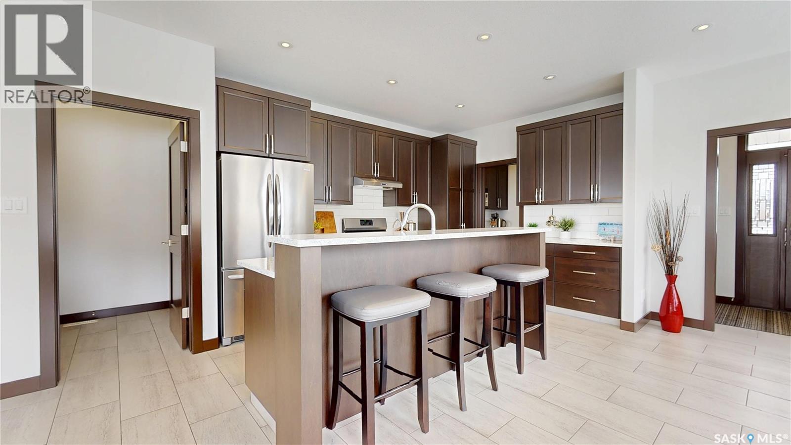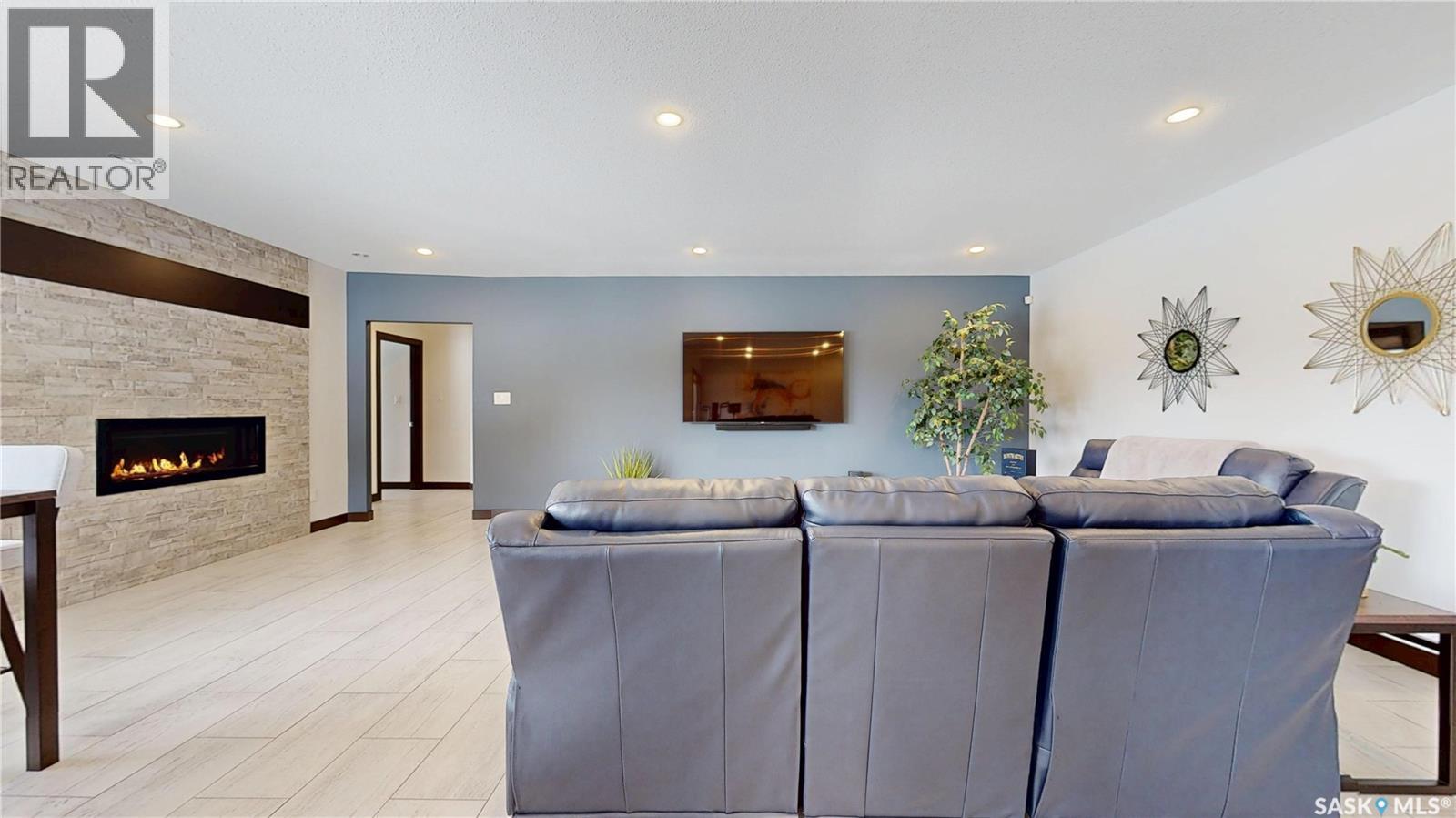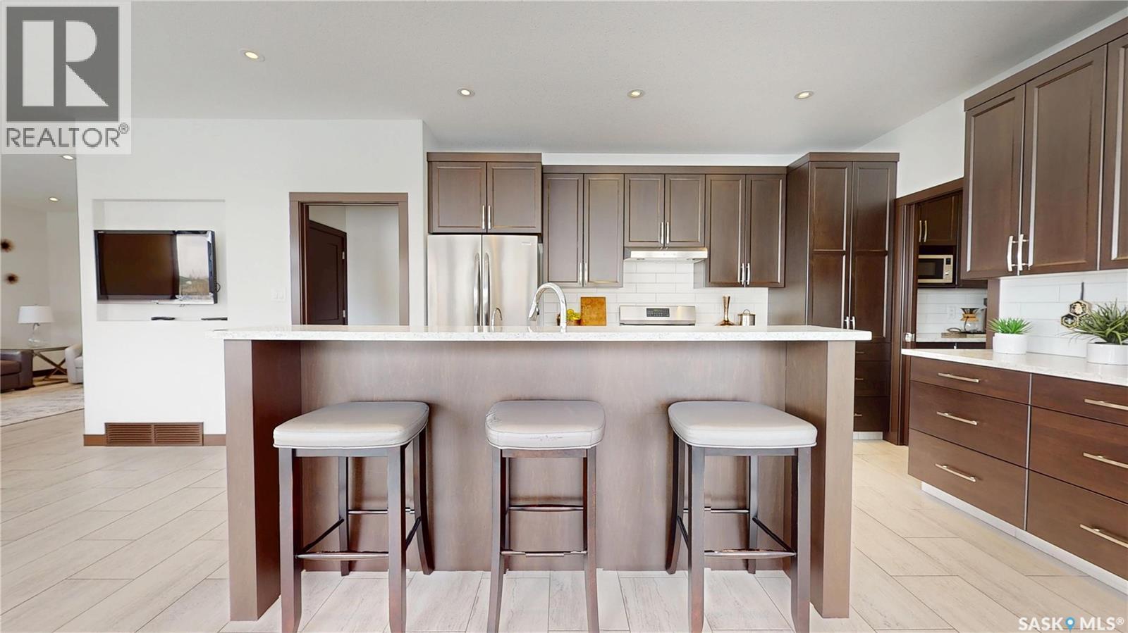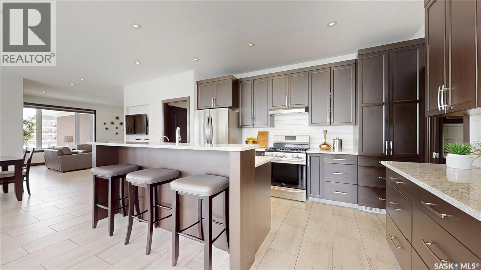 $108 Monthly** Please visit 2098riverbendview.ca for full listing experience ** Welcome to this extraordinary custom-built walkout bungalow — where luxury lakeside living meets the convenience of the city, nestled in the heart of Riverbend in Regina. Offering approx. 3,200 sq. ft. of finished living space, this like-new home features 4 bedrooms, 3 bathrooms, and an impressive 135 feet of south-facing lakefront with stunning views. Start your mornings with coffee on the deck as the sun rises over the water, with ducks and geese creating a peaceful, ever-changing backdrop. Spend summer afternoons kayaking or paddleboarding steps from your backyard, and unwind in the evenings as the light fades across the lake — all while being minutes from east end amenities, schools, and shopping. This is true lake living without leaving the city. The main floor is beautifully appointed with 9 ft ceilings, timeless tile flooring, quartz countertops, and exceptional attention to detail throughout. The chef’s kitchen is both elegant and functional, complete with a butler’s pantry and dedicated coffee station. The spacious primary suite offers a luxurious ensuite with double sinks and premium finishes. Built to an exceptional standard, this home includes 68 piles, spray foam insulated basement walls, R60 attic insulation, and R27 walls for efficiency and peace of mind. 5-inch concrete in both the basement and garage, along with in-floor heat in the fully finished walkout basement and triple attached garage ensure year-round comfort. Car enthusiasts and hobbyists will love the triple car garage, featuring 8-foot overhead doors, a two-stage drain pit, hot and cold water outlets, and full PVC paneling. With ample height and space, there’s room to add a lift or create the ultimate golf simulator. Properties like this rarely come to market. Experience the lifestyle at 2098 Riverbend View. Original plans are available. (id:44393)