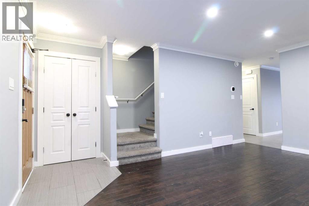 $354 MonthlyThis Sask-side 2-storey, 3 bed and 2 bath, townhouse condo is available for short notice showings and quick possession. Located in the east end of Lloydminster, this corner unit is situated just steps from a coffee shop and convenience store, and its close to the Cenovus Hub sports centre. In addition to a great location, this home offers a family friendly layout. The main floor features a spacious living room, a functional kitchen and eating area with access to the backyard, plus a convenient two-piece powder room. Upstairs, you’ll find 3 generous bedrooms and a full 4-piece bathroom. The laundry is conveniently located upstairs near all the bedrooms, an ideal spot for a busy family. Hardwood and tile flooring features on the main level and the cozy carpeting creates a comfortable atmosphere upstairs. The basement is undeveloped and ready for your personal touch, whether you envision a family room or simply extra storage. (Seller has framed in a bathroom in the basement. A new shower, toilet and sink come with the property).There are two assigned parking stalls in front of the unit. The $354.00/monthly condo fee covers exterior building maintenance, ground and parking lot maintenance, garbage and recycling removal, lawn care, snow removal, reserve fund contribution and professional management. (id:44393)