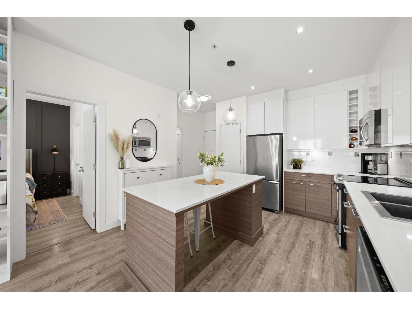 $301.49 MonthlyWelcome to The Ridge at Bose Farms-here countryside charm meets elevated,turnkey living. This bright and beautifully maintained east-facing 1 bed,1 bath home offers an open concept meticulously maintained floorplan ft. 9"" ceilings, wide plank floors,fresh paint,custom built-ins, and elegant wall detailing throughout. The spacious primary bedroom is a true retreat with a striking feature wall and large walk-in closet with walk through 5 pc bathroom. The open-concept layout flows into a stylish kitchen with white shaker uppers, rich wood-tone lowers, quartz counters, and stainless appliances. Enjoy your covered patio year round, peaceful outlook, and resort-style amenities including gym, theatre, gardens, and guest suites. Pets and rentals allowed. 1 parking, 1 storage. Close to everything! Open House Saturday/Sunday 2-4! (id:44393)