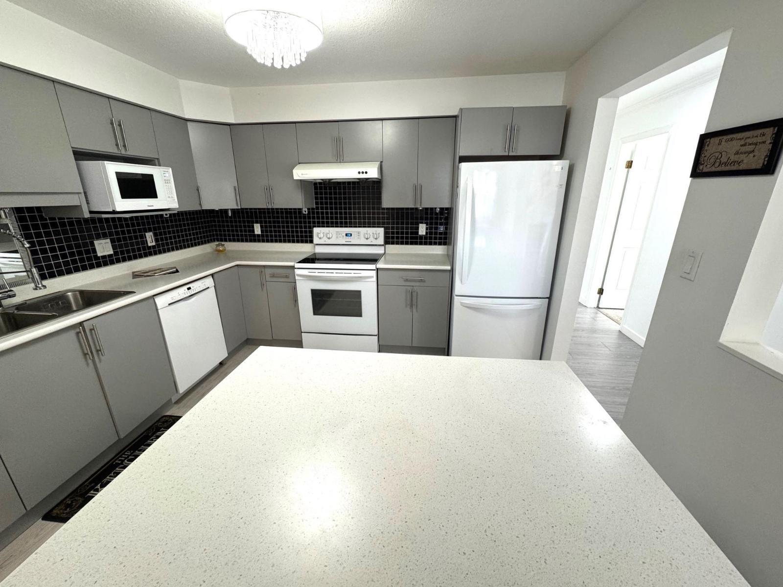 $442.03 MonthlyTiffany Park, come check out this charming renovated, move in ready corner unit! This stunning 1217 sq. ft. 2 bed, 2 bath home has a great layout with generous sized rooms and tons of storage space. Tastefully updated featuring a new gourmet kitchen with island, new appliances, new flooring, new light fixtures, updated bathrooms. Being a corner unit you get lots of additional windows which provide great natural light . Situated on the quiet side of the building. This 55+ adult oriented complex is centrally located, walking distance to shopping, restaurants, parks, recreation & a short walk to Mill Lake. 1 underground parking stall included, pets are not allowed. Bonus: Heat, hot water, gas & electricity are included in the Strata fee! (id:44393)