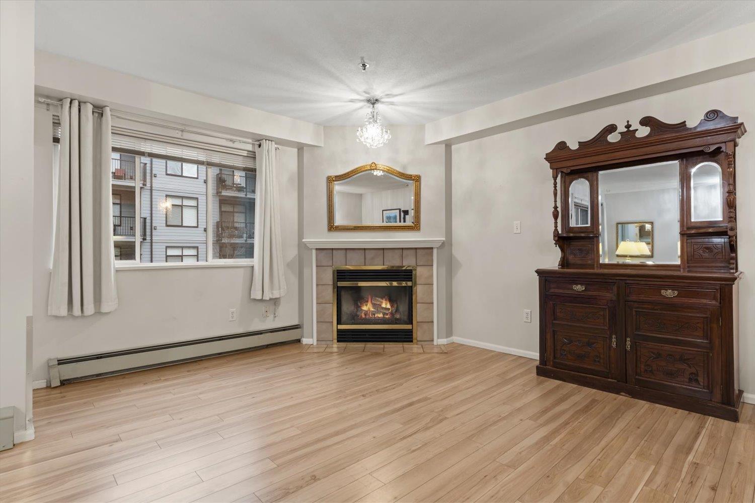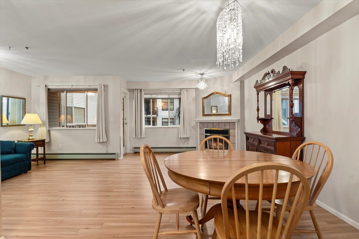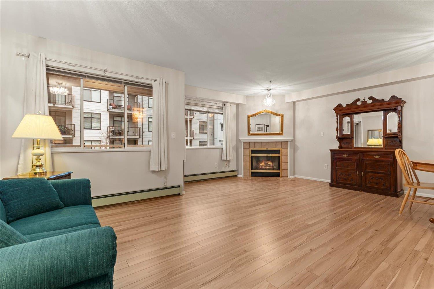 Rosewood Gardens is conveniently located within WALKING DISTANCE to transit, Leisure, Shops, Restaurants & the Hospital. This SPACIOUS 2 bed/2 bath unit, one of the LARGEST floor plans in the building w/over 1300 ft², offers EXCELLENT VALUE! While it could benefit from a bit of TLC, it is priced accordingly, allowing buyers to customize & add their personal touch! Large kitchen w/tons of cupboards & a nook area. Dining & Living rm feature a cozy fireplace. Oversized primary bed w/WI closet & ensuite. Other features incl. laundry rm & private balcony. The well maintained building has seen major updates. Strata fees INCLUDE: Heat (radiant hot water) natural gas, garbage, water & snow rem. Besides peace of mind, this 55+ community offers a common rm w/pool table, guest suite & much more! (id:44393)