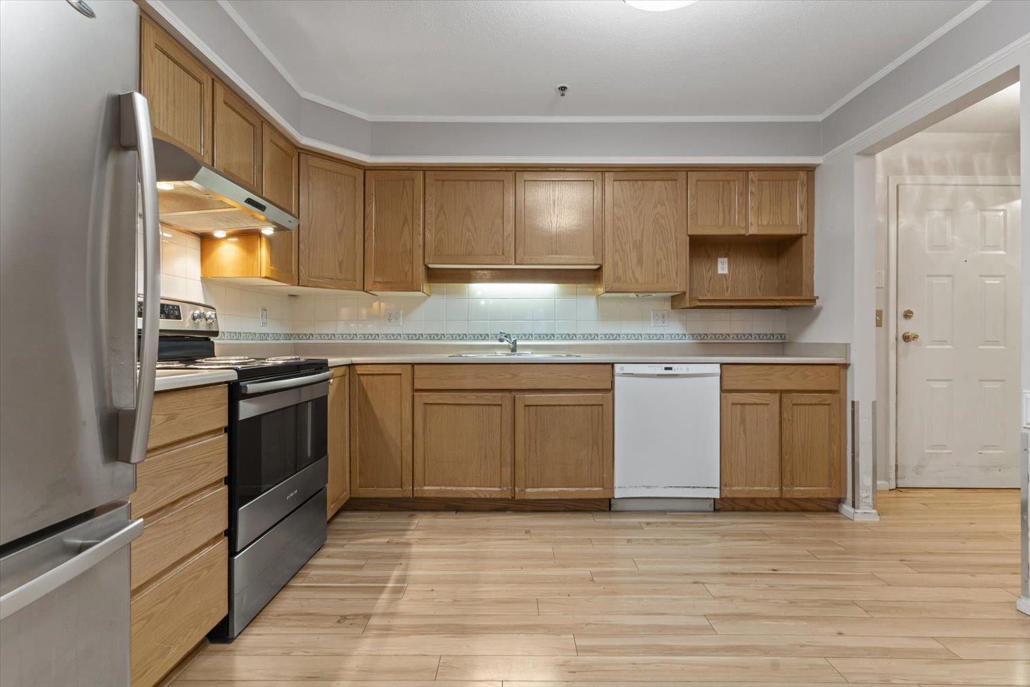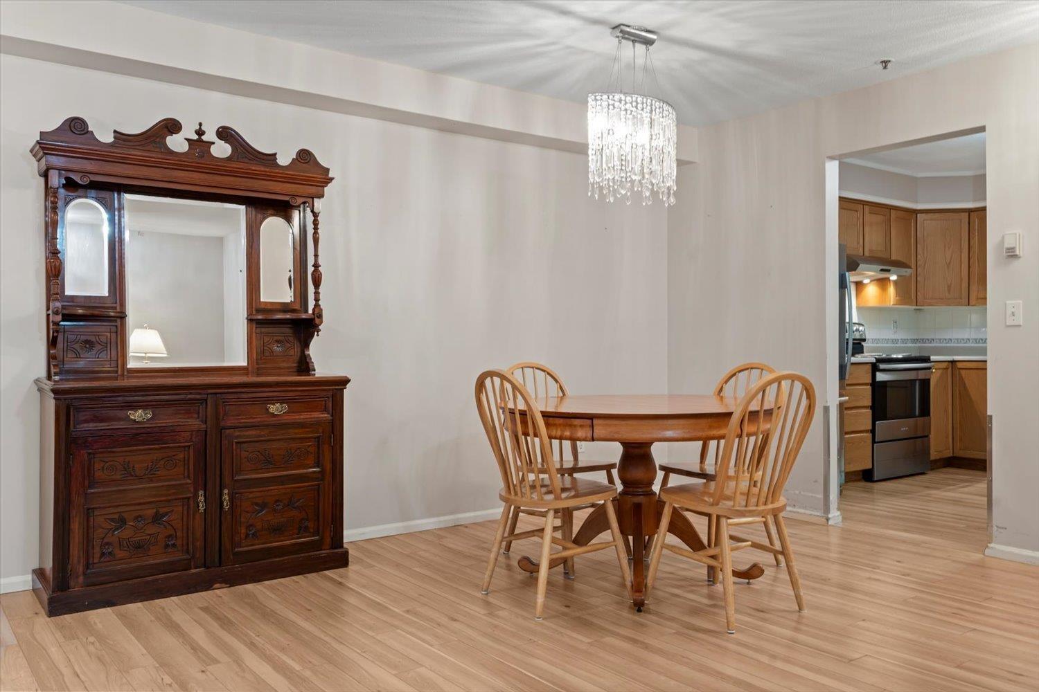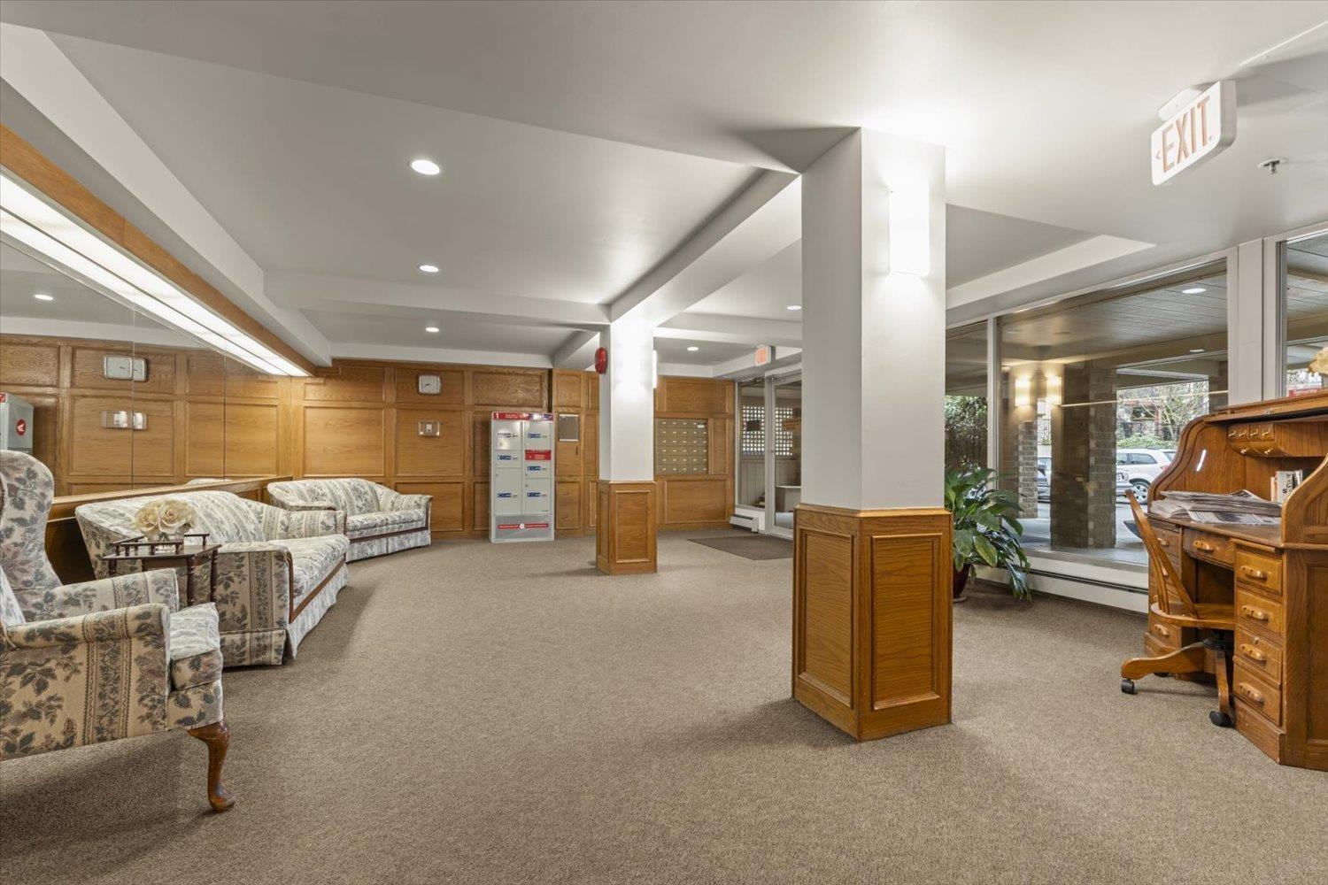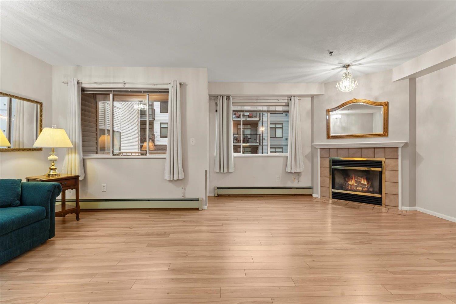 Rosewood Gardens is conveniently located within WALKING DISTANCE to transit, Leisure, Shops, Restaurants & the Hospital. This SPACIOUS 2 bed/2 bath unit, one of the LARGEST floor plans in the building w/over 1300 ft², offers EXCELLENT VALUE! While it could benefit from a bit of TLC, it is priced accordingly, allowing buyers to customize & add their personal touch! Large kitchen w/tons of cupboards & a nook area. Dining & Living rm feature a cozy fireplace. Oversized primary bed w/WI closet & ensuite. Other features incl. laundry rm & private balcony. The well maintained building has seen major updates. Strata fees INCLUDE: Heat (radiant hot water) natural gas, garbage, water & snow rem. Besides peace of mind, this 55+ community offers a common rm w/pool table, guest suite & much more! (id:44393)