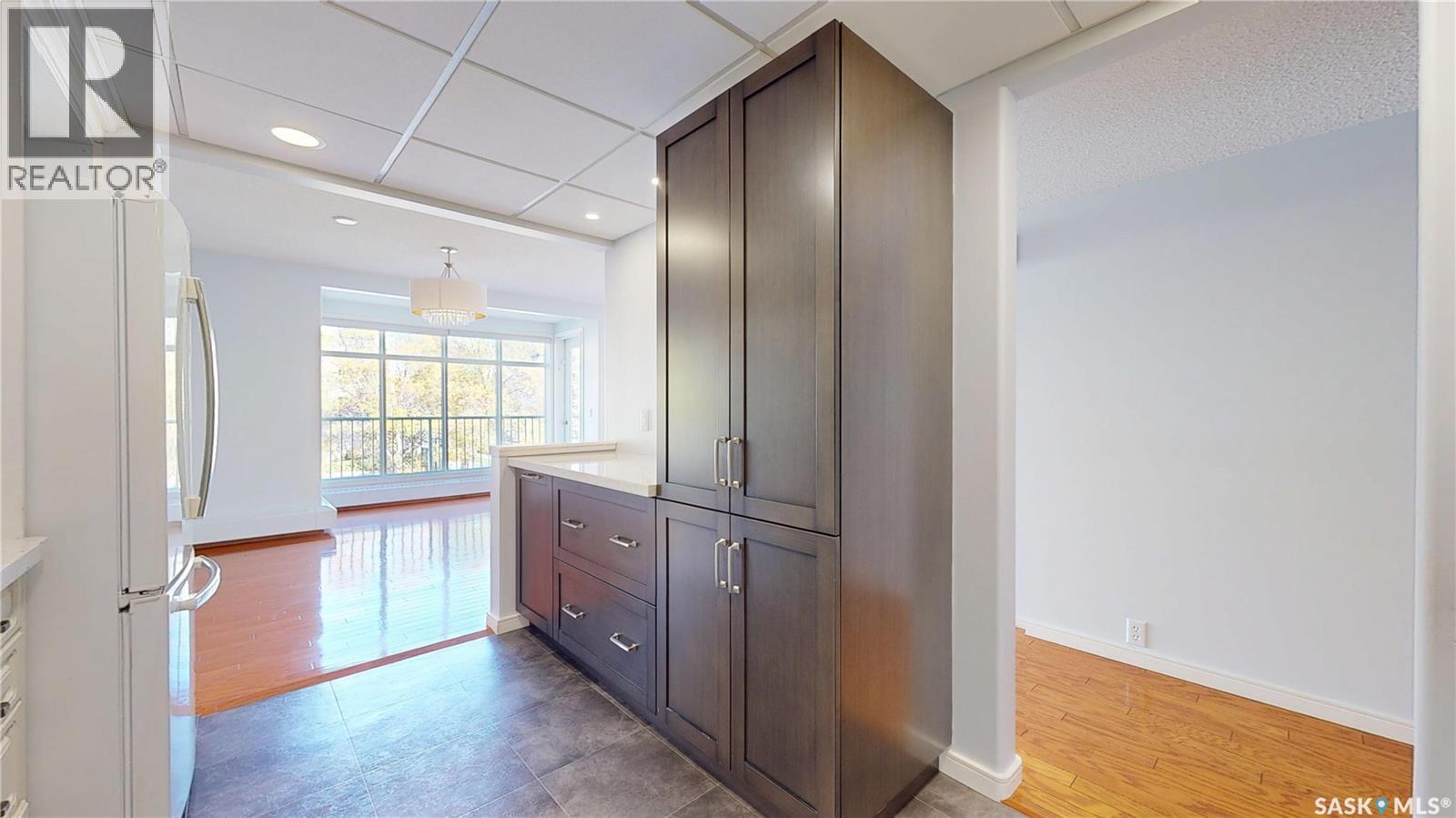 $641.08 MonthlyExperience the perfect blend of location and lifestyle in this sun-filled corner condo at prestigious College Gardens. Set directly across from Wascana Park, this concrete-core residence provides exceptional privacy, soundproofing, and peace of mind, with convenient access to downtown, the University of Regina, the airport and the natural beauty of Regina’s most cherished park. This desirable corner unit features a wrap-around deck with north and east exposures—ideal for enjoying morning light. Inside, a spacious foyer welcomes you into a beautifully updated kitchen showcasing crisp white cabinetry, quartz countertops, a built-in oven, smooth cooktop, double sink, and coordinating white appliances. The open-concept living and dining areas are bright and inviting, framed by expansive windows that fill the home with natural light. The primary suite offers a private three-piece ensuite and a generous walk-in closet, while the second bedroom is conveniently located across from the four-piece main bathroom. Just off the dining area, a versatile room serves perfectly as a home office, craft space, or additional guest room—offering flexibility to suit your lifestyle. The in-suite laundry room, with storage, adds everyday practicality. Completing this exceptional home is plenty of visitor parking on the north side of the building and a heated underground parking space with a large private storage room—ideal for a small workspace or extra storage needs. With its solid construction, prime location, and timeless design, this impressive condo offers the rare opportunity to live in comfort and style just steps from Wascana Park. Enjoy the convenience of nearby downtown amenities, scenic walking paths, and all from the peaceful setting of College Gardens. A rare opportunity not to be missed—book your private showing today. As per the Seller’s direction, all offers will be presented on 10/13/2025 4:00PM. (id:44393)