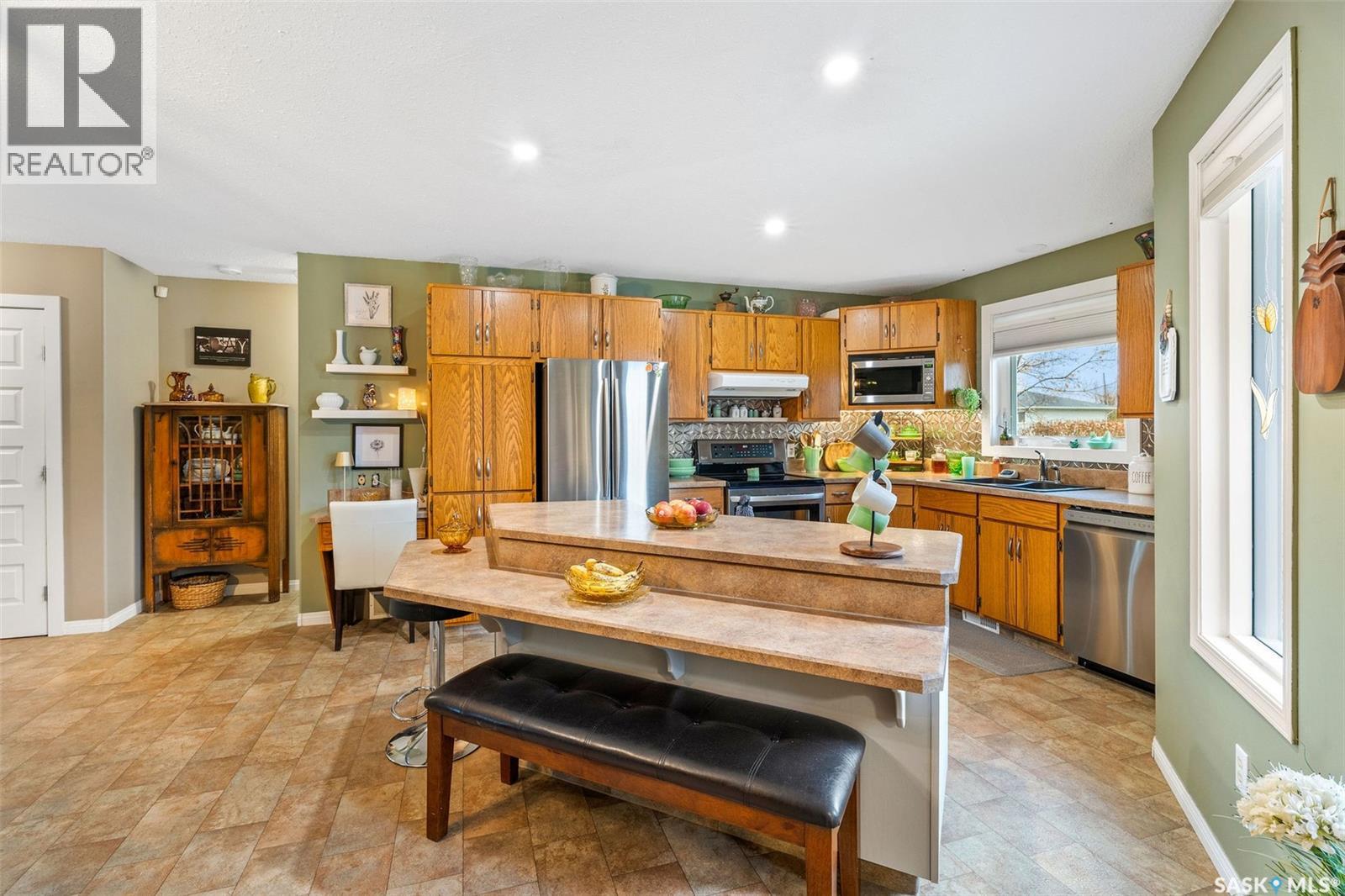 213 1st Street, Beatty is spacious, well maintained and loved. As you enter the home, you are greeted with a large foyer that opens to the kitchen (complete with island), dining and sunken living room. The main floor also boasts a laundry room, 4 bedrooms, bathroom with soaker tub and a three piece ensuite. The basement has ample storage, large recreation room, den, three piece bathroom and bedroom. There is no shortage of room in this one! The furnace and central air were replaced in 2025 and almost all main floor windows have been replaced on past few years. This home site on three lots, has garden space, firepit and gorgeous deck. If the house didn't impress you enough, the 24x30 heated shop certainly will! Addition to home completed in 1986. Located only minutes from Melfort, this property provides peace and quiet with all necessary services just down the highway! (id:44393)