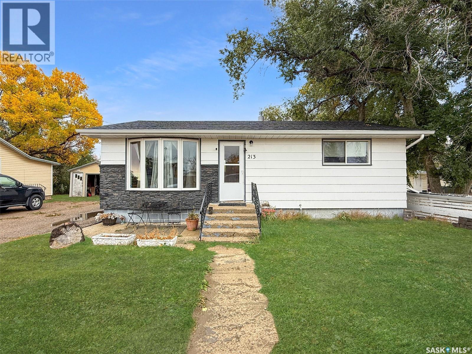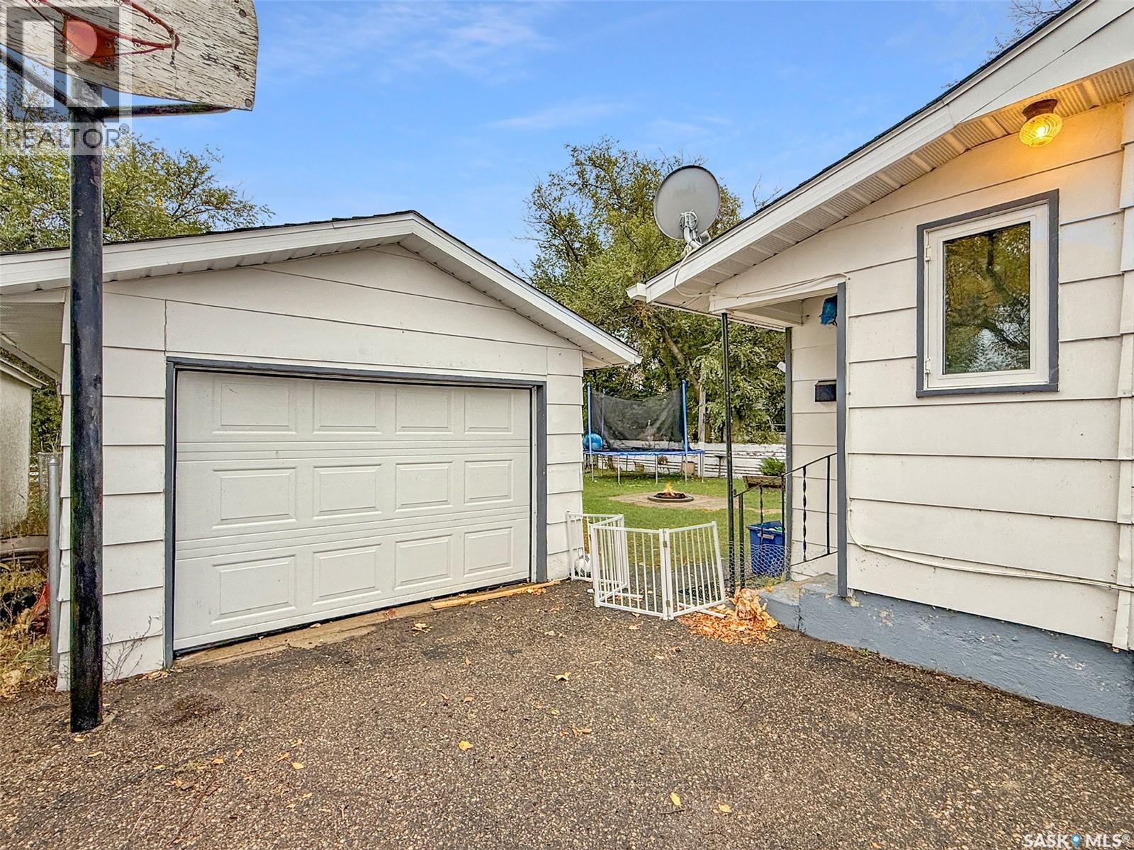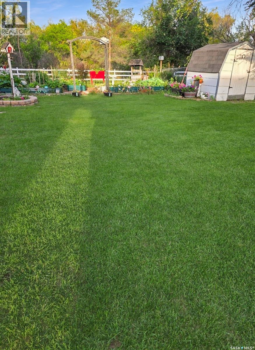 Discover your ideal, move-in-ready home nestled in the charming community of Herbert SK. Situated in a peaceful corner of this quaint town, the property boasts a serene, oversized backyard that borders lush green space, offering a picturesque setting. This meticulously maintained bungalow welcomes you with a bright and airy front living room, complemented by a spacious boot room. The kitchen is designed for both style and functionality, featuring white cabinetry, an eat-in dining area, and ample counter space that overlooks the beautiful backyard. The main floor includes two well-appointed bedrooms and a contemporary four-piece bathroom. Additionally, the back entrance includes a heated boot room with electric heat, providing seamless access to the garage and backyard. The fully functional basement offers a large family room with laminate flooring, a third bedroom, a two-piece bathroom, a generous storage room, and an updated utility room situated along side the laundry facilities with more storage options. Recent upgrades include an energy-efficient furnace installed in 2024, an updated water heater in 2022, a 100 amp service panel, and a brand-new sewer and water line extending to the street. The main floor is adorned with modern paint colors and flooring, PVC windows, and a bright and inviting atmosphere. The expansive yard features a single car garage, a covered pergola, raised garden planters, a shed, a built-in fire pit area, a patio at the rear, and a long asphalt driveway to accommodate all your needs. Located in Herbert, a sought-after small town, offering access to K-12 schooling, medical care, grocery stores, pharmacies, restaurants, a pool, a rink, and much more. This cozy home is truly ready for you to move in and enjoy. Seize the opportunity to experience this remarkable property today. (id:44393)