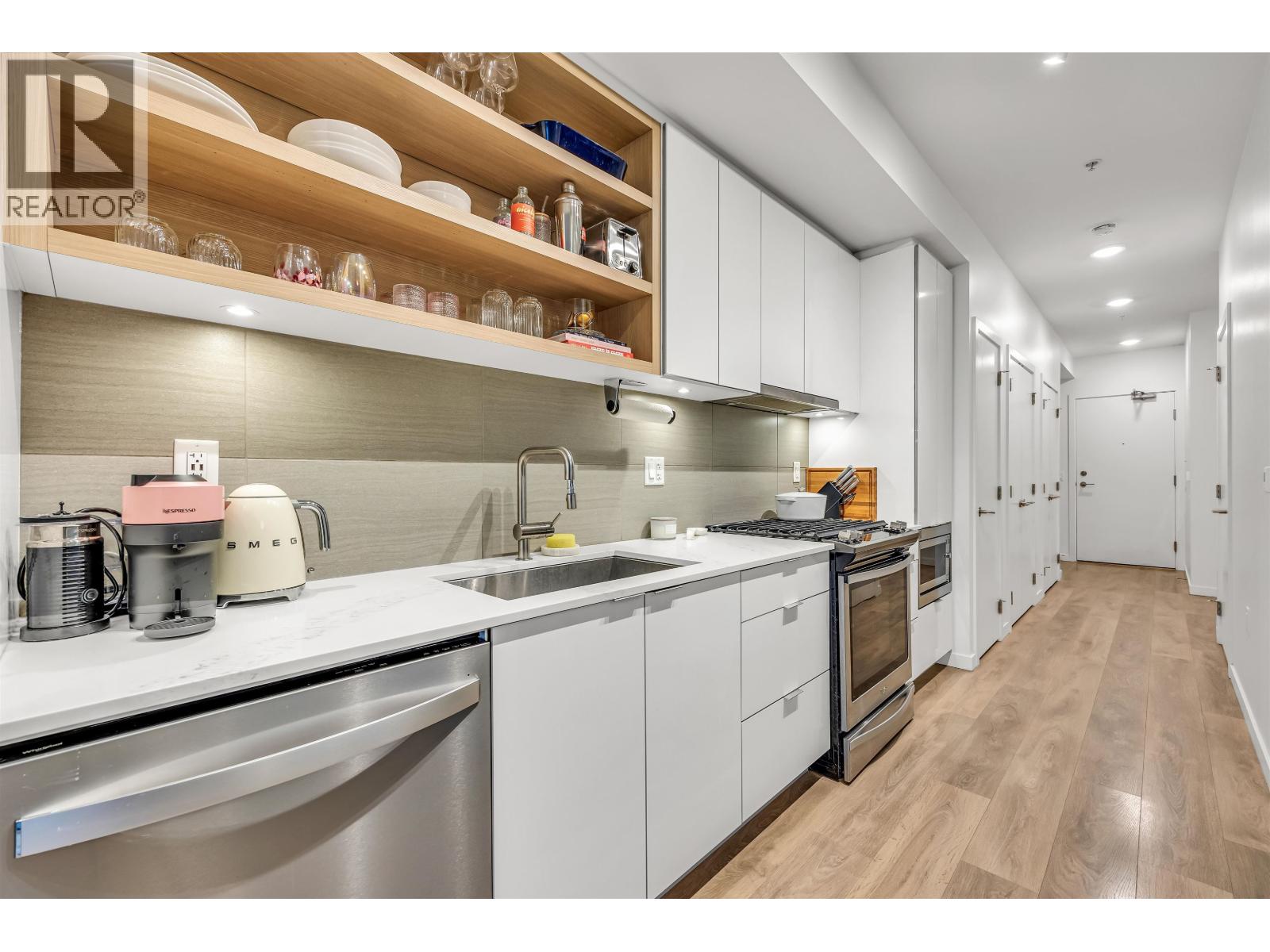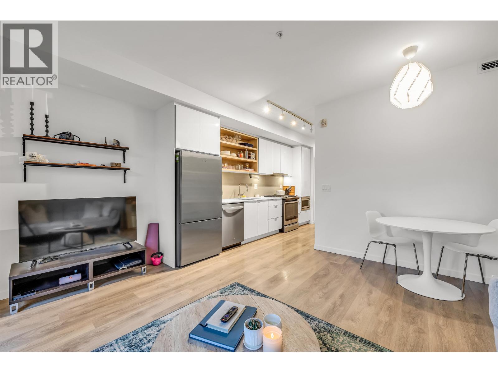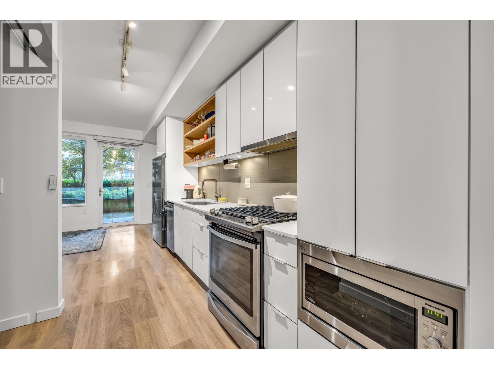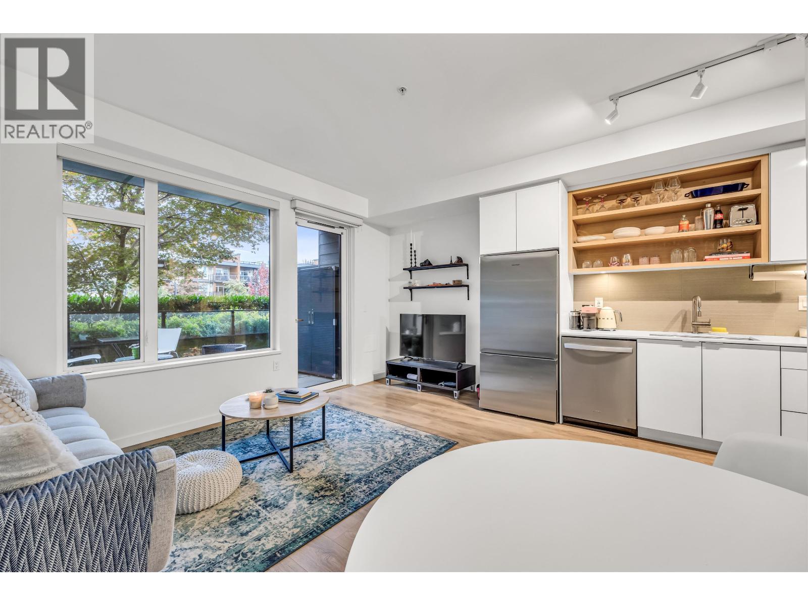 - 1-bedroom, 1-bathroom apartment in Marine+Fell building - Available Nov 1 - North-facing with mountain view - High ceilings, open-concept kitchen with quartz countertops - Stainless steel appliances, dishwasher, gas stove - Washer and dryer in unit - Unfurnished except - storage locker - Secure parking spot - Small pets accepted with approval and deposit - Radiant heated floors - Electric blinds with remote control - Huge patio with lockable storage shed - Accessible unit with wider doors - Amenity room for gatherings - Bike room and storage unit - Close to restaurants, cafes, parks, shopping, transit, bike trails - Rent includes gas and water, tenant pays electricity and Internet - Strata move-in fee paid by tenant - Option to install 240V EV charge (id:44393)