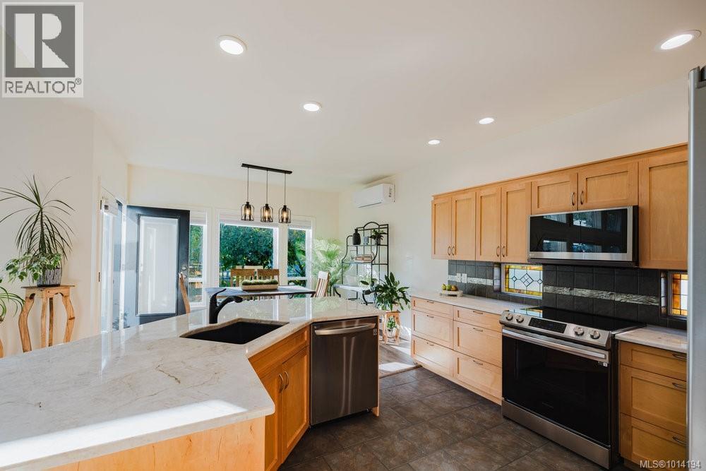 Open House: Sunday 2-4pm Cozy, charming and beautifully maintained, this 3 bed, 3 bath home offers 2,100sqft of comfortable living on a quiet no-through street in a welcoming family neighbourhood.The sunny west-facing backyard features mature, lush landscaping and a private 274 sqft patio—ideal for relaxing and BBQs. The open-concept layout includes vaulted ceilings, large windows, a gas fireplace, a main floor bedroom with full bath, laundry and kitchen closet pantry. Upstairs are two spacious bedrooms and two more bathrooms. Updates include appliances, granite countertops, hot water on demand, heat pump, blinds, fresh paint inside and out, artificial turf, and more. Enjoy a triple driveway, double garage with storage and EV charger, and full crawlspace for additional storage. Steps to parks, minutes to schools, shopping and amenities with Bear Mountain Resort - golf, spa, dining, tennis and fitness just a quick drive or walk up the mountain. A warm, welcoming home ready for new memories to be made! (id:44393)