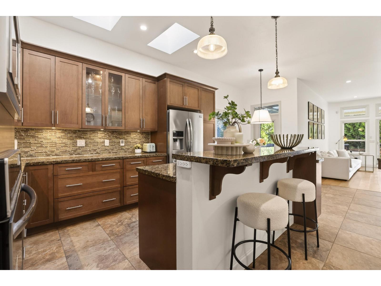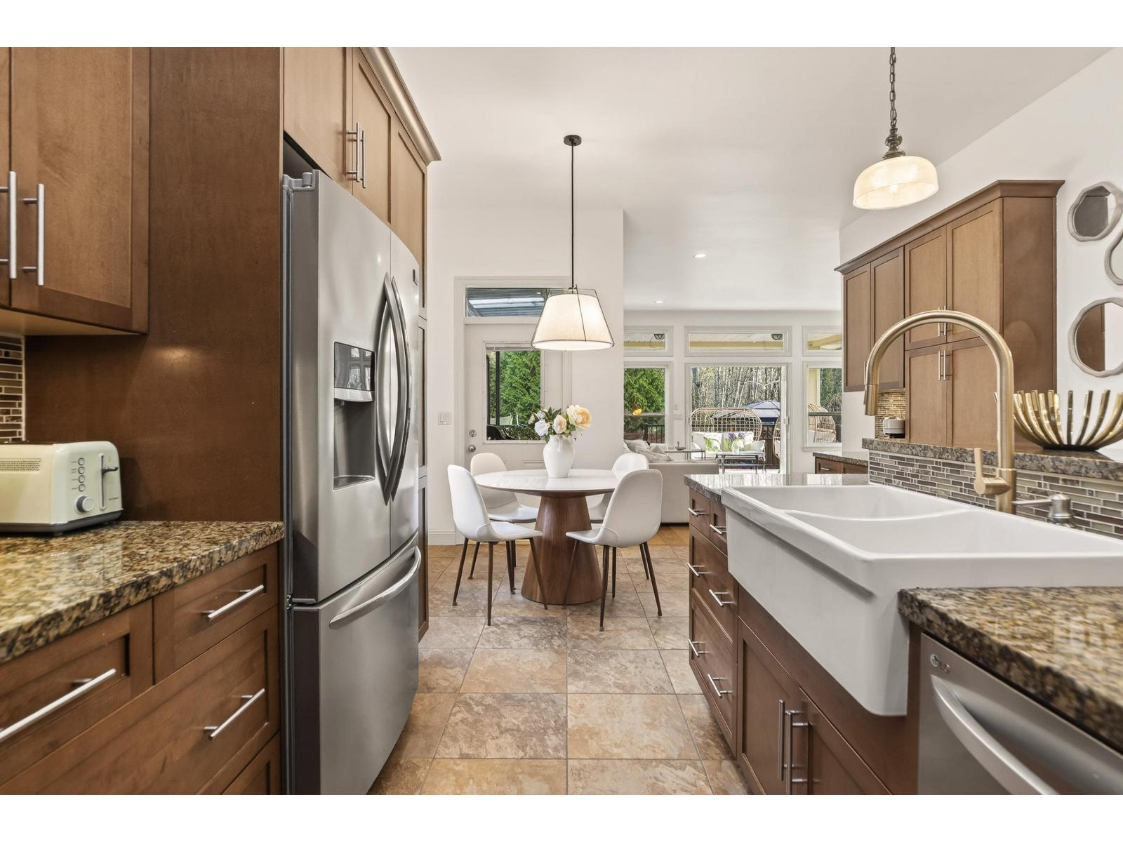 Tucked into a quiet cul-de-sac in sought-after Walnut Grove, this is the kind of home you dream about-spacious, elegant, and surrounded by privacy. Offering over 5,200 sq ft with 6 bdrms+5 bath, it's designed for real life and real entertaining. Enjoy 10 ft ceilings, a bright open main floor with office, formal living and dining, and a chef-inspired kitchen featuring heated floors. French doors lead to a covered wrap-around deck with gas hook-up, and down to a massive patio. Upstairs features 4 bedrooms, including a stunning primary retreat with vaulted ceiling, private balcony, and a spa-like ensuite with steam shower + soaker tub. 2 bedrooms suite in the basement. Upgrades include new furnace (2025), tankless hot water (2021), engineered hardwood floor (2023), and newer appliances. (id:44393)