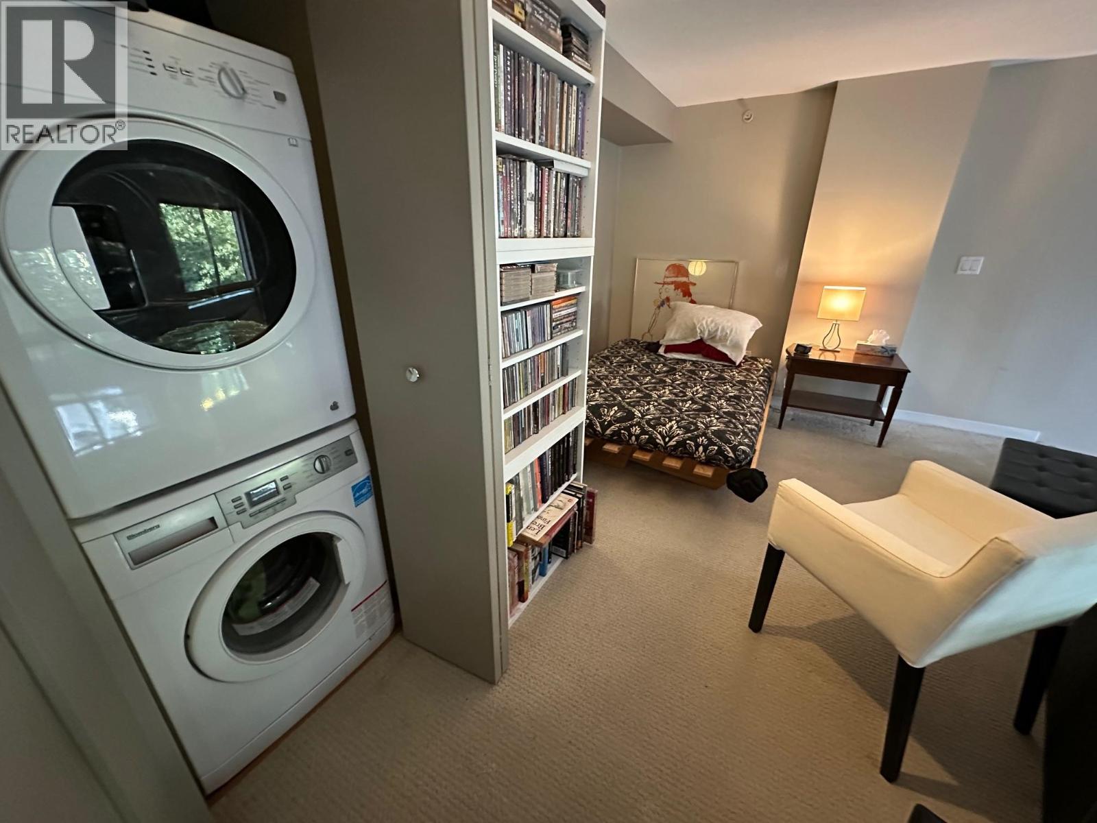 $566.61 MonthlyOne of a kind SE-facing loft at THE SPOT. Ultra wide 661 square ft floorplan has treed views overlooking front glass entrance canopy. It's private+ urban at the same time. And yes, it really is the only unit with this floorplan in the building. Open plan for flexible furniture arranging. There's over 23 ft of width to work with plus a soaring high ceiling and oversize windows! Gas stove. Upstairs: walk-in closet, laundry + bdrm. Near elevators for easy access. Just down the hall from recreation center featuring gym, party room+ work station area. Lots of outdoor hangouts too: BBQ area with picnic tables surrounded by gardens on 2nd floor. Two roof decks on the 5th floor. And panoramic views from the roof deck above the penthouse units. Pet friendly complex (no restrictions on number or breed or size). Short-term rentals also OK. This is the ultimate walk to everything location. Strata rents storage lockers ($25/mo - $50/mo for largest size) and parking stalls (150/mo -waitlist) and motorcycle parking ($50/mo). (id:44393)
